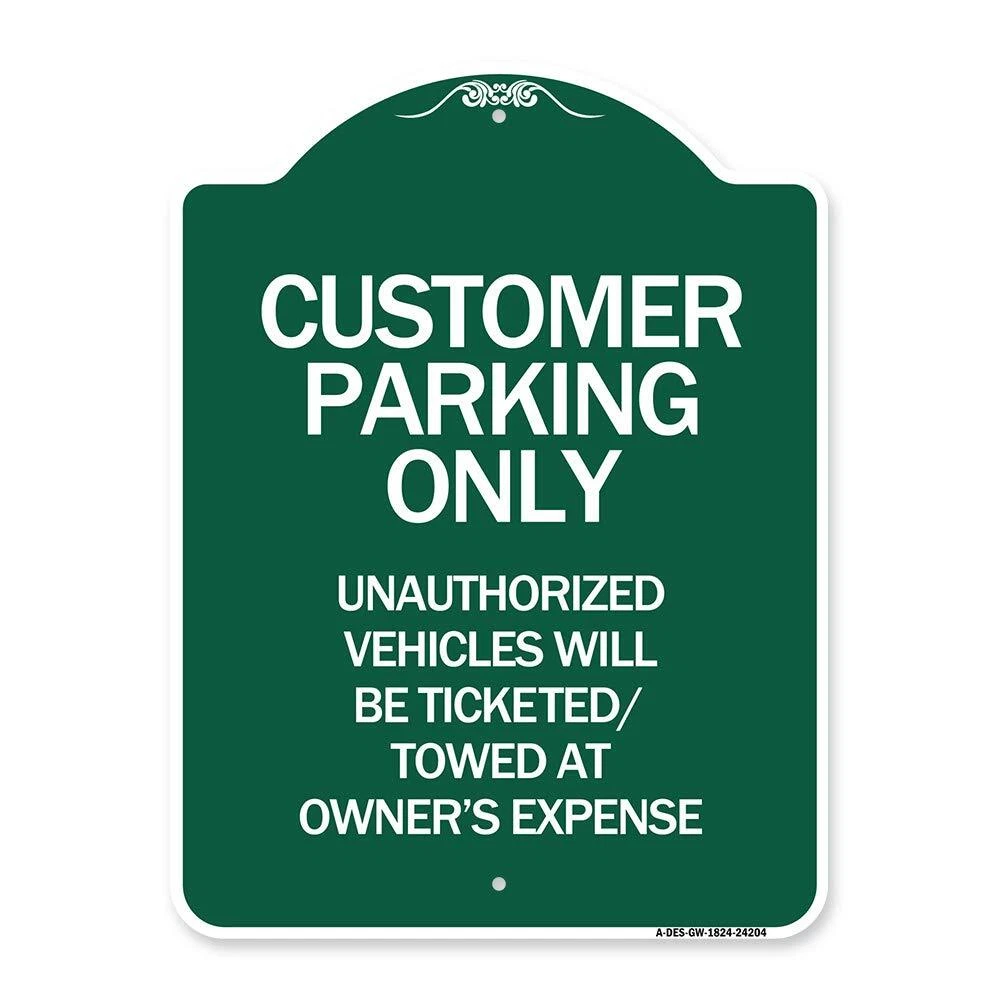 Color: Customer Parking Only, Unauthorized Vehi EAN: 0785590011444 Type: Does not apply Brand: SignMission gtin13: 0785590011444 ISBN: 0785590011444 UPC: 785590011444 Weight: 3.0 Pounds Size: 18" x 24" Designer Aluminum Sign Package Dimensions LxWxH: 24.02x17.99x0.98 Inches