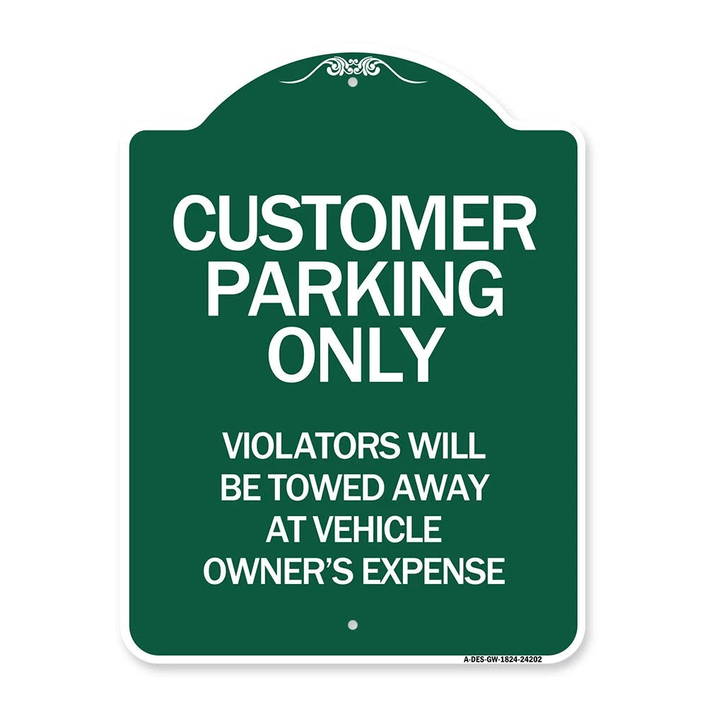 Color: Customer Parking Only, Violators Will Be Brand: SignMission Type: Does not apply Size: 18" x 24" Designer Aluminum Sign EAN: 0785590011451 gtin13: 0785590011451 Weight: 3.0 Pounds UPC: 785590011451 ISBN: 0785590011451 Package Dimensions LxWxH: 24.02x17.99x0.98 Inches