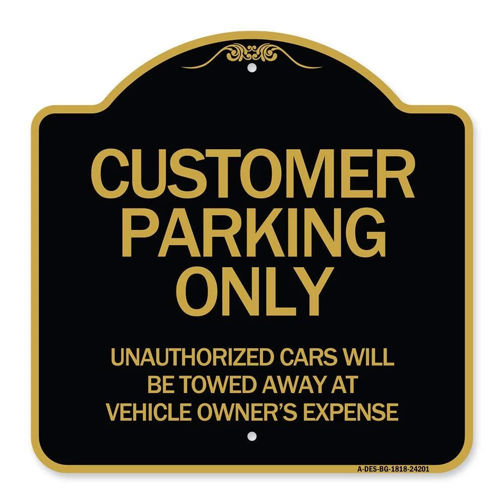 Designer Series Sign - Customer Parking Unauthorized Cars Will Be Towed Away ...