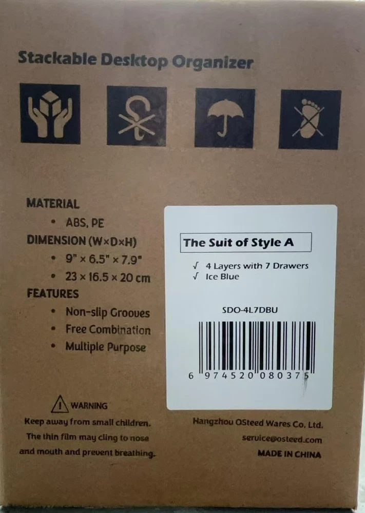 Store New Arrivals Add to Favorite View Feedback Contact Desk Craft Organizer and Storage with 7 Flat Drawers, Stackable Plastic Desktop Accessories & Workspace Organizer for Office Stationary, Makeup Skincare, Sanitation Supplies, Blue Description Item model number SDO-4L7DBU Item Package Quantity 1 Batteries Required? No Finish Polished Mounting Type Tabletop Assembly Required No Part Number SDO-4L7DBU Color 4 Flat Layers & 7 Drawers, Blue Included Components 4 Layers & 7 Drawers Material Acrylonitrile Butadiene Styrene Item Weight 2.87 pounds Shape Rectangular Batteries Included? No Frame Material Plastic Usage Makeup Supplies,Toiletries,Cosmetics,Bathroom Number of Drawers 7 Special Features Personalized Combination, Stackable, Transparent Drawers, Waterproof Size 4 Flat Layers & 7 Drawers Product Dimensions 6.5"D x 9"W x 7.9"H Manufacturer Wares Convenient Organizer: These Stackable desk organizers with multiple drawers of different sizes can be freely placed in arbitrary order, satisfy your individuation storage. The drawers are transparent, easy to identify different items to access. 4 Layers & 7 Drawers: This desktop organizer have 4 layers with 7 drawers of different sizes, the overall L x W x H dimension is: 9.1" x 6.5" x 7.9". They can store many sundries scattered on the table, suitable for bath preparations, household sundries, makeup supplies, stationeries, etc. Bathroom Supplies: These boxes are waterproof and are ideal for use in the bathroom to keep the combs, soaps, toothpaste and other toiletries in order. Safe and Reliable: These drawers are fixed with slots, stacked up and down together, will not loose and slip. The materials are ABS and PE, which are non-toxic, smooth and hand friendly. Personalized Combination: We have 2 height sizes of combination layers, as well as 3 types of color choice, you can freely combine different layers according to your favorite form, color or height to meet the requirements of multiple scenarios. Product Description SPECIFICATIONS Material: ABS + PE DIM (W×D×H): 9" × 6.5" × 7.9" Packaging: Film sealed, Carton Features: Non-slip Grooves Free Combination Water Proof OSteed Stackable Desktop Organizer with Diverse Drawers The Suit of Style A 4 Layers & 7 Drawers Ice Blue Freely placed in arbitrary order, satisfy your requirements about sufficient and individual storage space. Perfect storage for bath preparations, household sundries, makeup supplies, stationeries, etc. Multiple Purpose: Bathroom Cosmetics Living room Stationery The right gift for your relationship Looking for a gift for that special someone? This pack of Stackable Desktop Drawers is an ideal gift for family and friends. Help improve thair living and work experience. ABOUT US We offer the best prices around on high quality products. Our E-store includes media such as books, movies, music and games while offering electronics, toys, sporting apparel, clothing, tools, general home, garden items and more. SHIPPING We are always working hard to ensure your package arrives as soon as possible. Please understand that some factors like weather, high postal traffic, and the performance of shipping companies are outside of our control. We offer free shipping to the lower 48 states and ship within 2 business days of payment, usually sooner. We do not accept P.O. Boxes. Please provide a physical address. For shipping outside of the continental USA, we only use eBay's Global Shipping Program.The item is shipped to KY and then sent to the rest of the world. International customers are responsible for all duties and taxes. Continue to check out in order to calculate costs for shipping the item to your country. Messages regarding eBay's Global Shipping Program MUST be directed at eBay EXCLUSIVELY. RETURNS We offer a 30-Day Return Policy on items which you are not completely satisfied with. You have the option for a full-refund or an exchange of the item. No returns are available on items shipped outside of the USA. PAYMENT We accept PayPal. CONTACT US This page content is yet to come Please ad us to your favorite seller and visit again later Thank You CUSTOMER SATISFACTION We try our very best to make sure every customer is completely satisfied. If there's a problem, message us! We're happy to help. WE ACCEPT Copyright © 2021 AutoDS. | All Rights Reserved