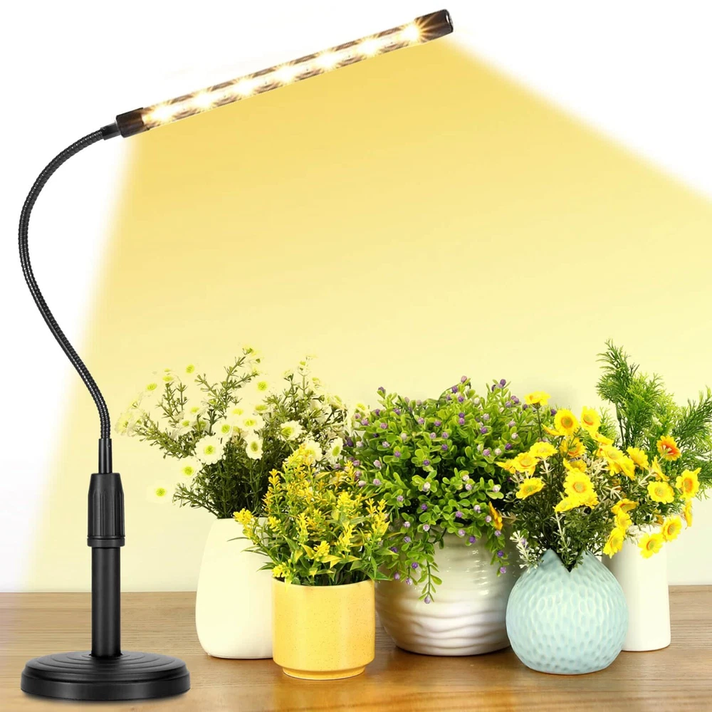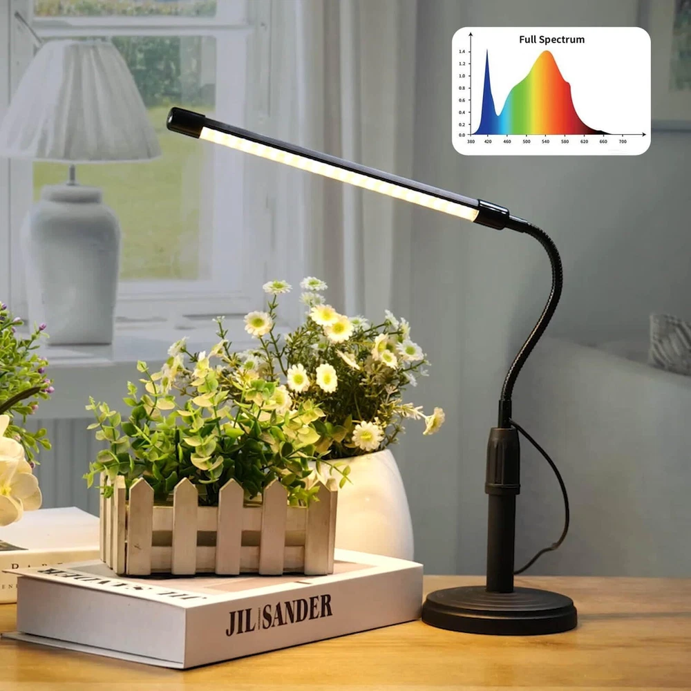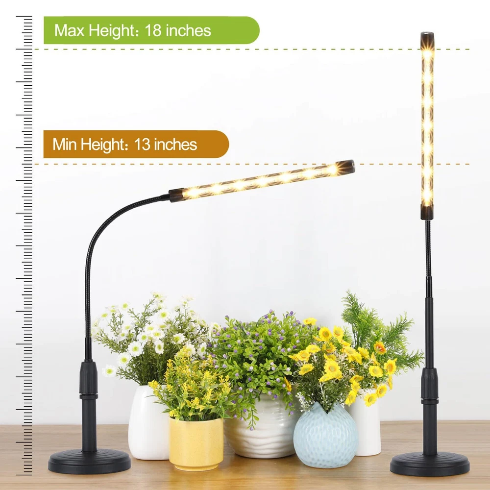 3500K Sunlight Full Spectrum- The grow light , just like natural daylight, professionally designed for flowers, herbs, peppermint, succulents, seed starting, or any type of locations (hanging, trellis, floor, potted, bonsai plants). SAVE YOUR DARK INDOOR PLANTS with IT ! 3500K Sunlight Full Spectrum - The Desk grow light just like natural daylight, professionally designed for flowers, herbs, peppermint, succulents, seed starting, or any type of locations (hanging, trellis, floor, potted, bonsai plants). SAVE YOUR DARK INDOOR PLANTS with IT ! Home Garden Lighting - The grow lights for indoor plants kit is tuned to the specific needs of plants to maximize photosynthesis, the best gift for gardeners and planting enthusiast. It's color rendering index up to 96%, can also be used as work/reading lamp. High Efficiency LED Lamp - Ours plant plant light with 5 levels dimming, free to choose the most suitable brightness for your plant growth. Save electricity while also ensuring the light needs of plant growth. This led grow light can be set up to turn off after 2H/ 4H/ 8 H ,TAKE CARE OF YOUR PLANTS EVERY DAY 360° Gooseneck & Easy to Use - This artificial light with flexible thickened goosenecks can easily rotate to adjust the angle between the lamp and plants. Height Adjustable Min 13-Max 18 Inch ,60 inch USB cable makes it easy to use at home/office ect . Unique Practical Design: The plant light with a tape base .The plant light for indoor plants small, no extra space is needed, perfect solution for office desk, plant shelf , living room, dark corner in house, doesn’t take up valuable space, they just fit in with decor.