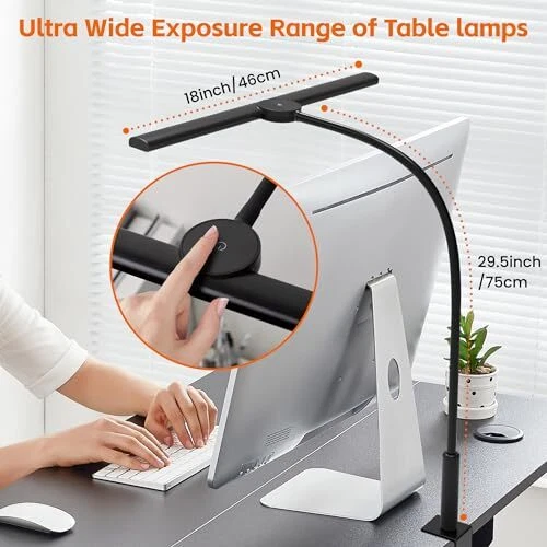 30 Days Return Policy Fast Delivery Trusted seller Desk Light, Stepless Dimming Desk Lamp with Clamp Eye Caring Desk Lamp with Adjustable Gooseneck Remote Control Office Lamps for Home Office Working Drewing Sewing 18W (Black) Product Description Stepless Dimming Desk Lamp: sturdy desk lamp with clamp can enjoy the ultimate lighting experience with our infinite dimming range, desk lamps for home office allowing you to adjust brightness from 10% to 100%, desk light offers a wide color temperature range from 3000K to 6000K. Different lights meet the needs of different scenes, desk lamp apply for working, studying, drawing, sewing and everything what you want to do. Ultra Wide Lighting Desk Light: Desk light has 18 inches of extra wide desk light bar, which is the maximum work height is about 29.5 inches, desk lamps unique design can cover the 71 inch wide desk. The adjustable metal clip design allows the desk lamp to be easily clipped 2.2 inches to the edge of the desktop, not only easy to install, but also save your desk space, which can bring you have a wonderful environment to reading. 360° Adjustable and Eye Protection: The desk lights for home office is designed with 360° gooseneck, which can turn the office light to any angle to provide the most relaxing environment for you. desk lamp with clamp is equipped with high color rendering index( CRI≥95 ), uniform brightness, no glare, soft light protect your eyes. Remote Control and Memory Function: Our desk lamp is equipped with a remote control, desk lamp allowing you to choose the most suitable mode faster and portable. you can also adjust the brightness by using the desk lamp touch screen function. The desk lamp also have two special functions, such as memory function and timing function. The memory funtion can keep the desk light in the last used mode. What you Will Get: 1x Excellent desk lamp, 1x metal clamp, 1x remote control, 1x 18W power adapter(12V/2A, include), 1x user manual. desk lamp with clamp is a excellent gift for your friends. If you have any question about led desk lamp, please kindly to contact us, we will solve it without 24 hours. Shipping Returns Payment Shipping Shipping is FREE to all addresses other than APO/PO boxes in the lower 48 states. All our stock ships from US-based warehouses. Shipped via USPS or UPS (depending on location and package weight) Unless stated otherwise, all orders will ship within 24-72 hours of your payment being processed. Check our feedback to see the great reviews of FAST shipping we offer. Returns As our valued customer, we will do our best to make sure the product you receive arrives to you on time and as expected. If you are not satisfied with your purchase, please contact us within 30 days of receiving your order to process a return. Payment We currently accept payment via eBay managed payments only. Once payment is cleared, we will dispatch your shipment within 1-3 business days. Please refer to the "Shipping" tab for more information regarding shipping speed to your destination.