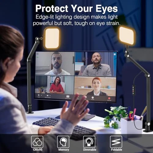 Return Policy Fast Delivery Trusted seller Desk Video Conference Light for Zoom Meeting, Webcam Light with C-Clamp, 360° Rotate & Adjust Arm, Desk Zoom Light for Home Office, Laptop Video Calls, Live Streaming, Video Recording Podcast Product Description 【Side-Emitting Technology】: video conference lighting advanced Edge-lit LED technology, provides a balanced, shadow-free illumination that eliminates harsh glare, unflattering shadows and eye protection. The full-screen desk webcam light designed to enhance your computer light specifically for video conferencing, Zoom calls, streaming videos, and online classes, and make your content look professional. 【3 Light Modes & 10 Brightness Levels】: The zoom lighting for computer with 3 light modes (cold, natural, and warm), color temperature range from 3300K to 5600K, 10 adjustable brightness levels, spanning a soft 10% to a radiant 100%, In addition, it has a CRI of >95+, casting an enchanting hue on every scene. It also has a memory function, when you turn off the lights using the controller will retain your light settings, turn it on again without readjustment. 【Flexible Cantilever Design】: desk light for video calls equipped with a flexible swing arm with 6 adjustable points, aluminum alloy material stand folds and adjusts from 11 inches to 27.58 inches, head swivels back and forth, left and right, up and down for 360° illumination, allowing you to place the desk video light at as many angles as you want. With a lighting range of up to 43 inches, you can illuminate your entire work area, an essential companion for home office and live streaming. 【Space Saving & Stable】: video conference lighting kits featuring an innovative I-beam structure, rotatable and foldable, comes with a metal C-clamp to attach it to your desk(Clamp Maximum Size: 2.36 inches), t are silicone non-slip pads on 2 sides inside the clamp to prevent the clamp from damaging the table surface. This streaming light with stand maximises space and keeps your desk organised and tidy, making it ideal for both home and office use. 【USB Power Supply & Keeping Desk Tidy】: The cantilever desktop lamp simply plugs into your computer or other USB-A port powered device for efficient lighting. Newly upgraded cable management slot, you can neatly fix the power cord on the folding bracket to prevent cable entanglement and always keep your desktop tidy, helping you to be better and more productive. 【Packing List & 24/7 Customer Service】: Desk Video Conference Lighting X 1, Folding Stands X 1, C-clamp X 1, Hexagonal Wrench X 1, we provide 24/7 after-sales service work for you, if you have any questions about our products, please contact us, we will do our best to solve all problems for you. Shipping Returns Payment Shipping Shipping is FREE to all addresses other than APO/PO boxes in the lower 48 states. All our stock ships from US-based warehouses. Shipped via USPS or UPS (depending on location and package weight) Unless stated otherwise, all orders will ship within 24-72 hours of your payment being processed. Check our feedback to see the great reviews of FAST shipping we offer. Returns Seller does not accept returns Payment We currently accept payment via eBay managed payments only. Once payment is cleared, we will dispatch your shipment within 1-3 business days. Please refer to the "Shipping" tab for more information regarding shipping speed to your destination.