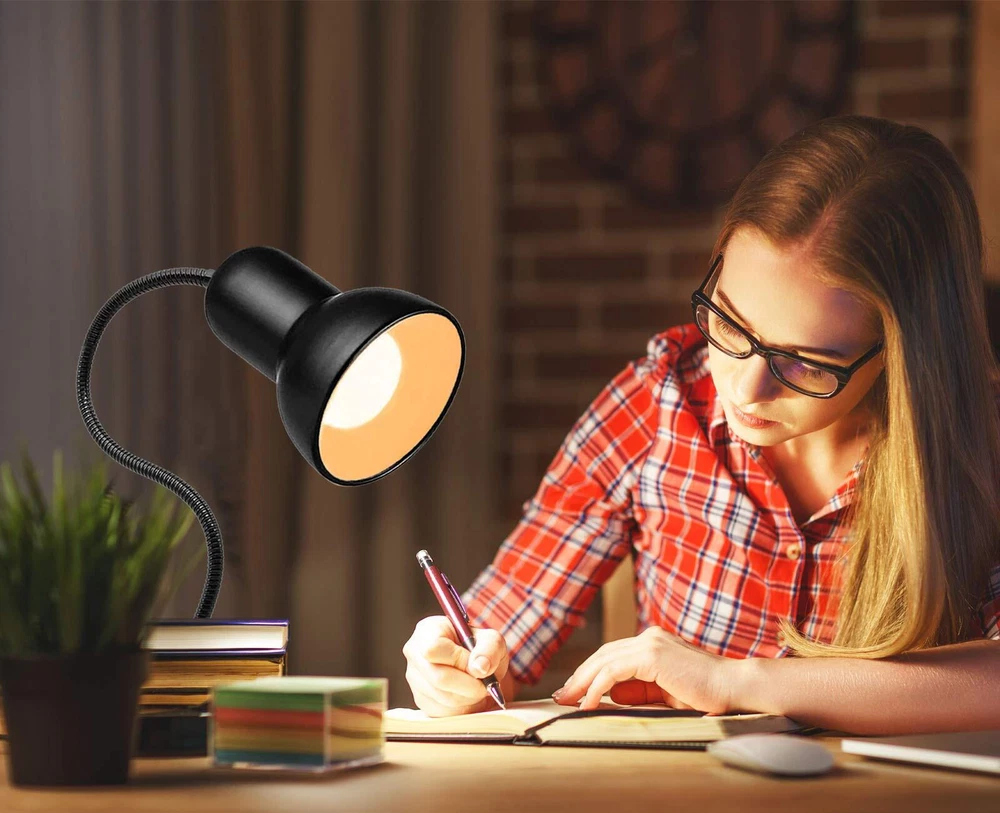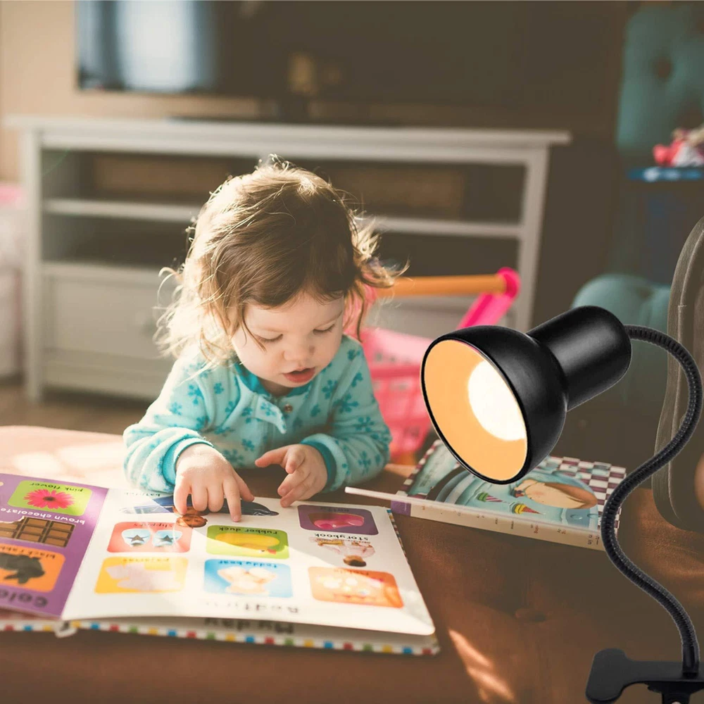 Reading Lights for Books in Bed, Clamp Lamp for Bed Clip On Reading Light Features:Book Light for Reading in Bed at Night: The reading lamp is a comfortable light that can bring you a warm and comfortable feeling. Excellent lighting quality: Desk Lamp with Clamp Base and Adjustable Gooseneck, The 15-inch 360 flexible gooseneck light allows you to easily bend and set the ideal lighting direction and viewing angleThe reading lamp is made of high-quality Metal, with good heat dissipation and distortion resistance, uniform brightness, no flicker, no glare, and eye protection.It is very suitable for reading, painting, work, and study.The lighted clip is easy to clip on the workbench, desk, headboard or other objects.The sturdy clip with foam pad protects the surface of the furniture from scratches, and the base can be stably placed on your table. On/Off Switch Material: Metal + Ceramic lamp BaseCable: 68.9 Inch GooseNeck: 15 Inch Maximum width of clamp: 2 Inch More than 50000 Hours working life can be consistently applied to your daily life and work. Adopt eco-friendly aluminum heat-dissipating lampshade, low power consumption, no heat,and it consumes 80% less power than traditional lights.E26/E27 light source (Do not contain light bulb, It is recommended to use a mini light bulb). Energy Efficiency: 110V working voltage, More than 50000 Hours working,Adopt eco-friendly heat-dissipating lampshade, low power consumption,and it consumes 80% less power than traditional lights. It is recommended to use LED bulbs of no more than 25W(bulb not include,Please buy separately) 360 Degree Flexible Gooseneck: 12 inches universal black gooseneck metal tube, 360° rotating Minimalistic design, Durable flexible gooseneck allows you to adjust your clip light with ease and to direct the light wherever you want. The table lamp will show you the best perspective Eye-Caring: Not-ghosting and not-flickering light, the book light won't make eyes fatigued even staying in the light for a long time. Designed to help those who read and work hours a day to protect eyesight and reduce eye strain. Study and work clip lamp: The clip on reading lamp is easy to clip on your desk, bed headboard or other objects. It can stand stably on your table. Good for home, office, school, hotel, For computer or writing desk, bed side table, For homework, study, book reading, reading lights for books in bed.Great Gift for kids bookworms. : : We are always committed to providing high quality and best service status. If you have any questions about the light fixtures, please tell us know and we will reslove it.