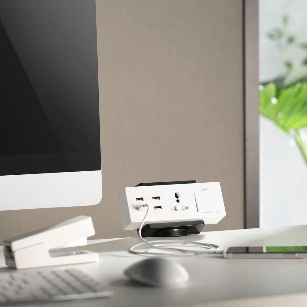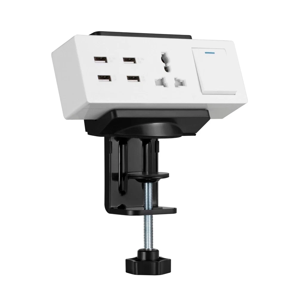 Most of us have a huge amount of items at our workspace that need power constantly or regularly, but often there aren't enough outlets to cater to this technology demand! With our 3 plug under desk power bar, you're not only getting three extra outlets - but you're also getting USB ports and an option to keep it with under-desk mounting. Power all your various home office items and accessories with ease, while keeping your adjustable desk organized! A screw mount is used to mount it to your desk, ensuring it won't move or become loose. The cord length also extends to 71" if your nearest outlet isn't at hand! This power bar is also flame retardant for added safety. With its 15-year , we a durable under desk power bar with usb ports that will serve you well! Our Power Bar Clamp comes with protective silicone and foam pads on the desk clamp to allow for a safe, fast, and simple installation on desktops, tables, or other flat surfaces. The integrated cable management located on the back side of our Power Bar Clamp helps to keep your home office organized and clutter free! The adjustable design of our Power Bar Clamp allows for compatibility with tabletops (0.4" - 2.0") and power bars (1.57" - 2.36") of various sizes. The heavy-duty clamp base of our Power Bar Clamp ensures your power bar is securely stored in its place as your standing desk raises and lowers. Made of high-quality steel and ABS material, we a durable Power Bar Clamp that is backed by our 15-year to serve you well over the years!