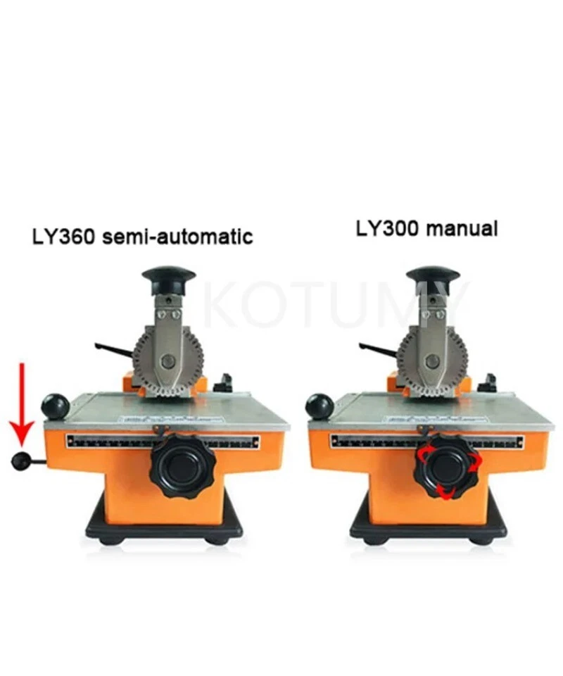 Product parameters: 【 Name 】 : Semi-automatic marking machine 【 Model 】 YL-360 【 Plate Material 】 High quality mold steel 【 Printing depth 】 0.1-0.3MM 【 Print content 】 Letters, numbers, symbols 【 Power supply or not 】 No 【 Optional font 】 2, 2.5, 3, 4, 5, and 6 sizes 【 Printing speed 】 : 2-5/10 seconds 【 Quantity 】 7.5kg 【 Marking range 】 200 * 135MM 【 Packing size 】 : 30*35*38 MM 【 Overall dimensions 】 280 * 220 * 260MM 【 Package weight 】 : 9KG Penetration range: Marking of sheet materials such as aluminum, copper, stainless steel pots, and material barriers Typical application: All kinds of aluminum, copper, stainless steel, plastic nameplates on machinery, electromechanics, water pumps, valves, automobiles and motorcycles, and electrical appliances. Working principle: The alloy steel turntable after high frequency quenching heat treatment is under the action of external force (hand pressure or rubber hammer), and letters or numbers with a certain depth (0.1~0.3mm deep) are engraved on the metal sign; The heat-treated steel dial can be rotated to the required letters or numbers, and the font can be easily replaced; the marking position and line spacing are steplessly adjusted by a special mechanical mechanism; the character spacing depends on manual adjustment; different character heights can be realized by changing the dial; Signs of various shapes smaller than 200x 135mm can be clamped and engraved. Character wheel material: chrome steel 12CrMo Character wheel hardness: >60 degrees Character wheel thickness: 6 mm, (No. 6 font 7