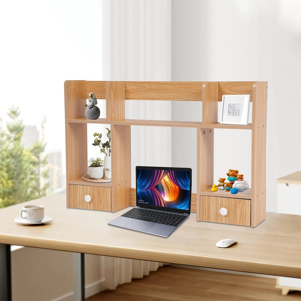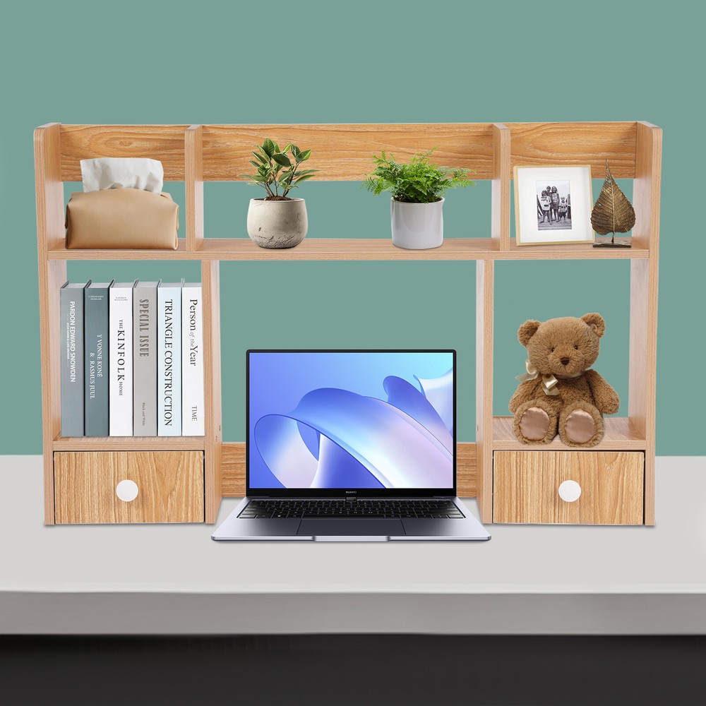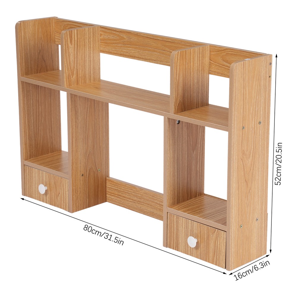Specification Material: MDF, Particle Board Color: Rubberwood Color Process: Polishing, Sanding Style: Modern Assembly Required: Yes Mounting Type: Tabletop Shape: Rectangular Height of Computer Display Area: 32cm/12.6in Partition Thickness: 16mm/0.63in Total Load Capacity: About 7.5kg/16.53lbs Product Size: 80*16*52cm/31.5*6.3*20.5in Package Size: 80*20*9cm/31.5*7.87*3.54in Gross Weight: 5kg/11.02lbs Net Weight: 4.5kg/9.92lbs Package Included 1* Desktop Storage Rack 1* Chinese Assembly Diagram Other Accessories for Assembly Desktop Storage Organizer Display Shelf Rack with 2 Drawers Desk Bookshelf Dorm Description Desktop storage space is often limited, so if you're still struggling with this, please take a look at our desktop storage rack, which is an efficient organizing solution designed for desktops. It combines a rational space layout with a simple design style, aiming to provide your desktop with an organizing tool that is both beautiful and practical. Whether it's a desk, desk, or vanity, it's easy to handle. Key Features Made to Last: Made of high-quality MDF and particle board with polishing and sanding processes, it is impact-resistant and has a sturdy structure and smooth surface that is not easy to deform, ensuring long-term aesthetics and practicality. Storage Assistant: The product adopts reasonable double-tier three compartments and two drawers structure design, which can effectively help you categorize and store books, files, computers, cell phones, ornaments, green plants, etc., providing you with a clean and tidy desktop environment. Carefully Designed: This product is designed with a computer display area of 12.6 inches in height, making it easy for you to place your computer on the desk for your office working needs. Strong Load-bearing Capacity: The thickened partition (16mm), stable rectangular structure, and strong screw fixation give the product a strong load-bearing capacity (about 16.53 lbs), which can easily carry the weight of books, stationery, and so on. Thoughtful Design: The product is designed with three sides of raised enclosures, which can effectively prevent your items from falling. Easy Assembly: A simple structure and complete accessories allow you to finish the installation quickly and use it in a short time. Effortless Cleaning: It has a smooth surface and an open structure, so you only need to wipe the dust with a towel (not included). Ideal Gift: With good performance and a modern appearance, it can be used as an ideal housewarming gift for parents, friends, and lovers so that they can also enjoy a more convenient life. Good Customer Service: We aim to provide quality products and services. If you have problems, please feel free to contact us. We will reply and solve the problem for you as soon as possible. Details Drawer Handles: They provide convenience for you to pull out the drawer and get your items. Rounded Corners: The delicate edge treatment reduces bumping injuries and ensures the safety of your use. Application You can put this product in your kitchen, bathroom, workshop, or office to organize stationery, desk files, mail, tools, and more. Specification Material: MDF, Particle Board Color: Rubberwood Color Process: Polishing, Sanding Style: Modern Assembly Required: Yes Mounting Type: Tabletop Shape: Rectangular Height of Computer Display Area: 32cm/12.6in Partition Thickness: 16mm/0.63in Total Load Capacity: About 7.5kg/16.53lbs Product Size: 80*16*52cm/31.5*6.3*20.5in Package Size: 80*20*9cm/31.5*7.87*3.54in Gross Weight: 5kg/11.02lbs Net Weight: 4.5kg/9.92lbs Package Included 1* Desktop Storage Rack 1* Chinese Assembly Diagram Other Accessories for Assembly Notes Please note that this product does not include items such as books and documents. Please allow the slight color difference caused by the shooting light and 1-3cm error due to manual measurement, and make sure you do not mind before ordering. Payment Delivery details Terms of sales About us Contact us Payment We accept ebay payment 。 Fees such as import duties, taxes are not included in the item price or shipping costs. These charges are the buyer's responsibility. Delivery details Shipping: 2-9 working days to: USA Terms of sales We maintain high standards of excellence and strive for hundred percent customer satisfaction. Feedback is very important to us. We hope that you contact us immediately before you give neutral or negative feedback, so that we can address your concerns. It is impossible to address issues if we do not know about them! About us Your satis faction is our ultimate goal. We work hard to earn your trust and future business. Our certified technicians have tested each item before shipping. The unit comes with 1 year limited warranty on all manufacturing defects. a) If you receive a defective item, you may return it or ask for a discount. Please contact us within 14 days after you receive the package. b) What you returned must be intact and in its original packaging as re? u. Customer is responsible for shipping costs of the returned item. c) We will cover the cost of shipping back t with the shipping rate indicated in the registration page. We will send you a new unit or refund the full payment you paid. Thank you. Contact us Business Hour Business Hour: Monday To Friday: 8:30 AM to 5:00 PM (Beijing China time) Due to time zones, our reply to your questions may not be immediately. But within above working time, we will reply your email within 24 hours. If it's non-workdays, please kindly be patient and wait till Monday. Please contact us with ebay message. Please feel free to contact us if you have any questions. Monday To Friday: 8:30 AM to 5:00 PM (Beijing China time) Due to time zones, our reply to your questions may not be immediately. But within above working time, we will reply your email within 24 hours. If it's non-workdays, please kindly be patient and wait till Monday. Please contact us with ebay message. Please feel free to contact us if you ha