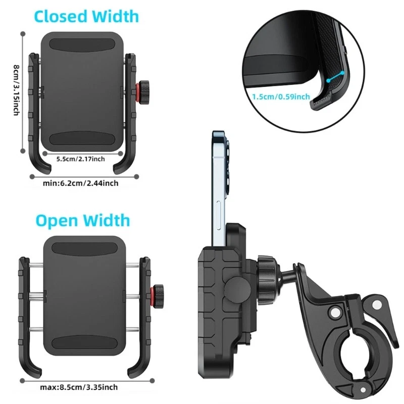 Detachable Phone Clamp Adjustable Phone Grip Rotatable Motorbike Phone Stand Features: stability on the go with Bike Phone Holder's innovative secure lock mechanism, ensuring device stays in place during ride. This detachable and rotatable mount is crafted from offering a versatile fit for 5-7.2 cellphone. Designings for outdoor enthusiasts, this phone holder is for cyclists, motorbike riders, and adventure seek look to navigate or track their journey hands frees. Whether you're cruising city streets or exploring trails, this bike phone mount adapts to various handlebars ranging from 16.5+33mm in diameter, enhancing your ridings Simplify your ride and stay connection with this Bike Phone Holder, essential accessory that blends functionality with ease of use for every modern day explore. Specifications: Clip: about 8x6.2cm Package Includes: 1xPhone Mount note: Please allow 1 to 3cm error due to manual measurement, please make sure you not mind before your bid, Due to the differences between different monitors, the picture may not reflect the actual colorful of the item.