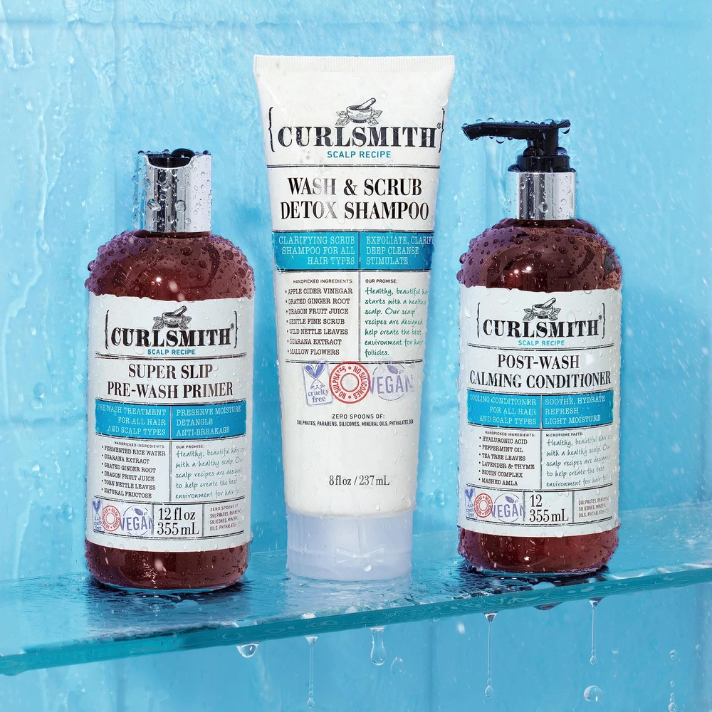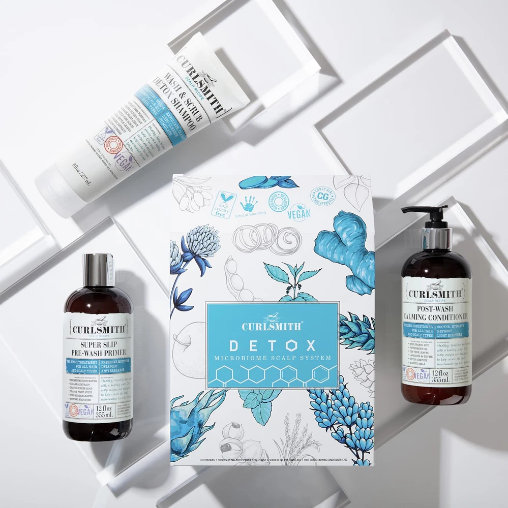 PROTECT AND DETOX - Our Detox Kit is a 3-step wash day powerhouse that helps control and regulate the scalp’s protective barrier, the Microbiome. Contains Primer (12 fl oz), Wash & Scrub (8 fl oz) and Calming Conditioner (12 fl oz). Perfect for any hair type that needs a good in-depth clarifying! HOW THE HAPPENS - Pre-Biotics are nutritive compounds that feed the 'good bacteria' on the scalp and fortify the skin's microbiome. -Biotics are 'good bacteria', micro organisms that strengthen skin's natural barrier and control the microbiome. Finally post-biotics are the beneficial extracts produced by 'good bacteria'. They are key to regulating the skin's microbiome. WHAT MAKES US DIFFERENT - Inspired by generations of homemade hair remedies, blends fresh curl-loving foods with kitchen cupboard staples and rare natural ingredients to make premium products that really work. Healthy ingredients, professional results, no compromise. NO NASTIES - All our products have zero spoons of Sulphates, Silicones, Mineral Oils and Phtalates. Plus they're Curly Girl Friendly, they’re 100% Vegan and Cruelty Free. REAL RESULTS - We believe the proof is in the pudding and it looks like our customers believe that too: "New holy grail" "Never using anything else!!!" "believer!"