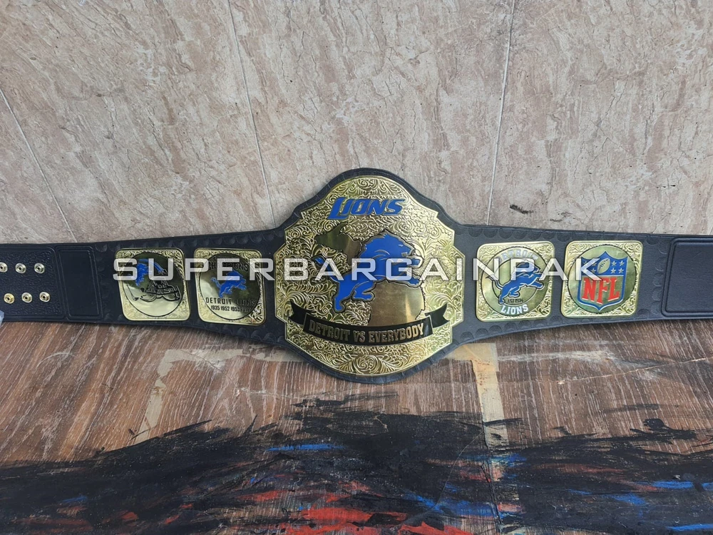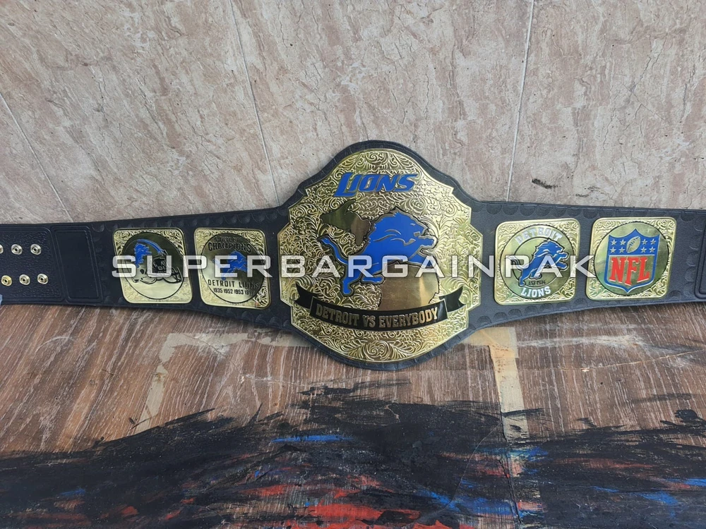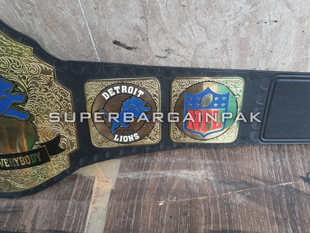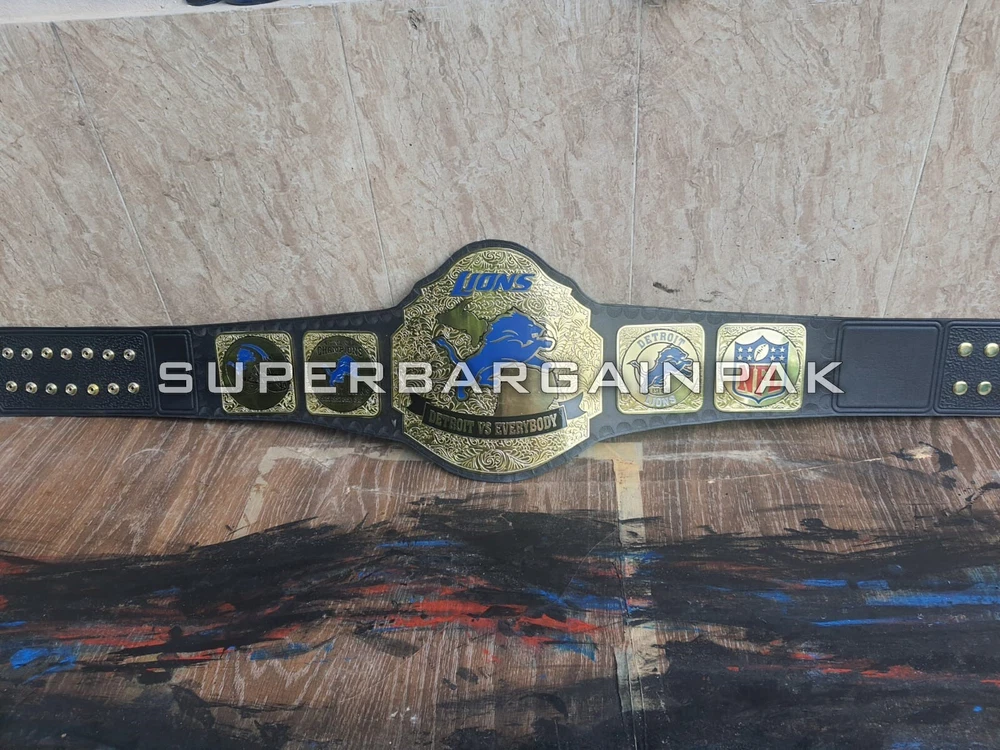 Welcome to our shop ------------------------------------------- We are specialist in manufacturing handmade products:: Our wide range of products include: >>>>Championship Belts WWE | WWF | AEW | UFC | WBC | WCW Product Description ** Detroit Lions Championship Belt 2mm Brass *** Plate Metal: Brass (Zinc available on request with additional cost) Strap: 100% Leather Largest Waist Size: Fits upto 46'' Belt Length: ~50" Weight: 4.17 lbs | 1.81 Kg Plate Thickness: 2mm (4mm Version available on demand with additional cost) ::The belt is well crafted and manufactured to meet the quality demands of fans:: Get your hands on this marvelous piece now! Note: If you need further details kindly inbox us, we will try to be as responsive as possible. ------------------------------------------- Return Policy: Generally we don't have much complains on our products and we make sure to 100% satisfy our clients. We send the product in well Bubble Wrapped packaging so there is highly unlike chance of getting damaged item. In case there is a damage, we will try to give partial refund or you can ask for full refund within 30 days after returning the belt to origin. NOTE: 1. If you have placed the order by mistake or you have purchased a wrong item then we are not going to refund that. 2. Buyer will pay the shipping fee of returning the belt. ------------------------------------------- Happy Shopping! :)