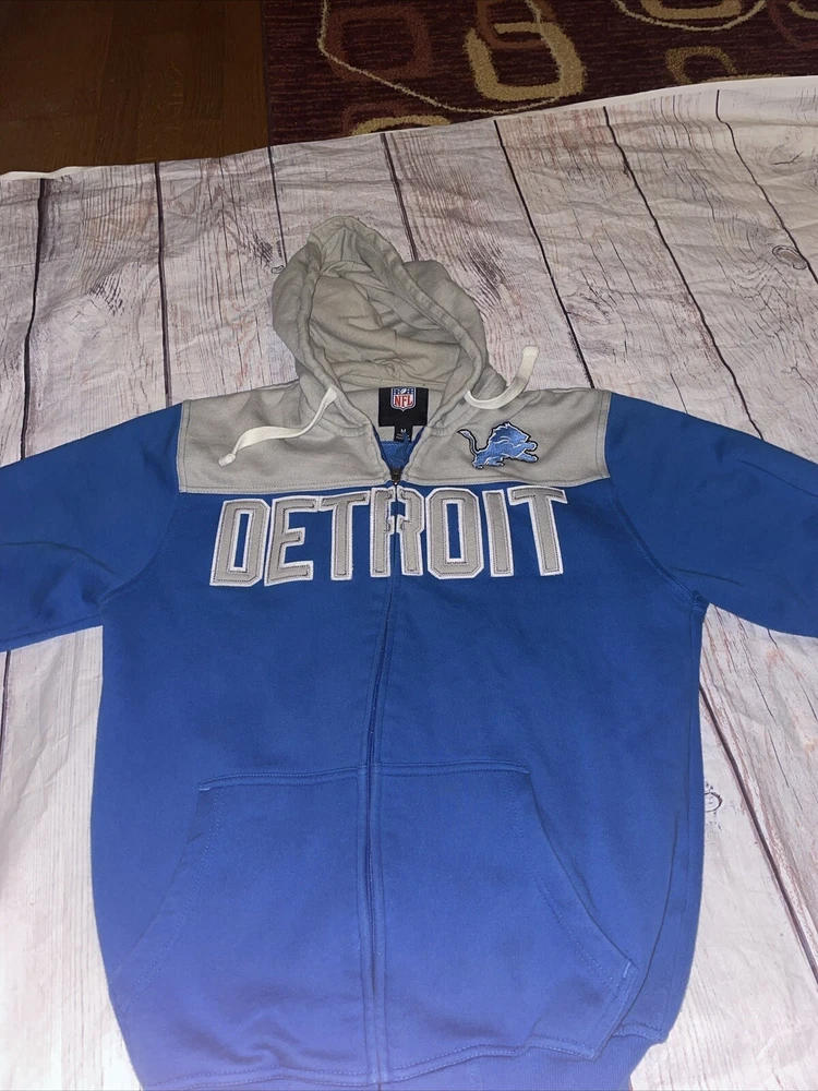 Sport:FootballLeague:National Football League (NFL)Gender:MenBrand:Team ApparalOfficially Licensed:YesColor:BlueCountry/Region of Manufacture:PakistanSize:MProduct:SweatshirtTeam:Detroit Lions
