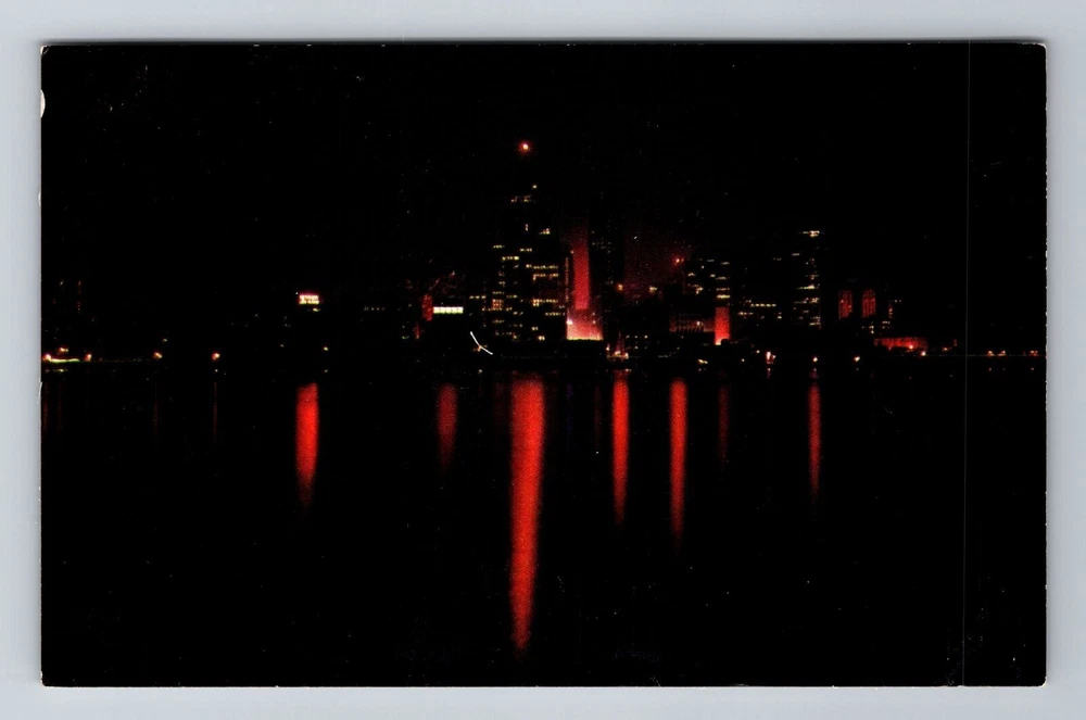 Detroit MI-Michigan, Night View Of The Skyline, Antique, Vintage Postcard