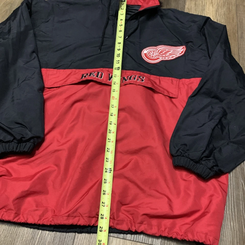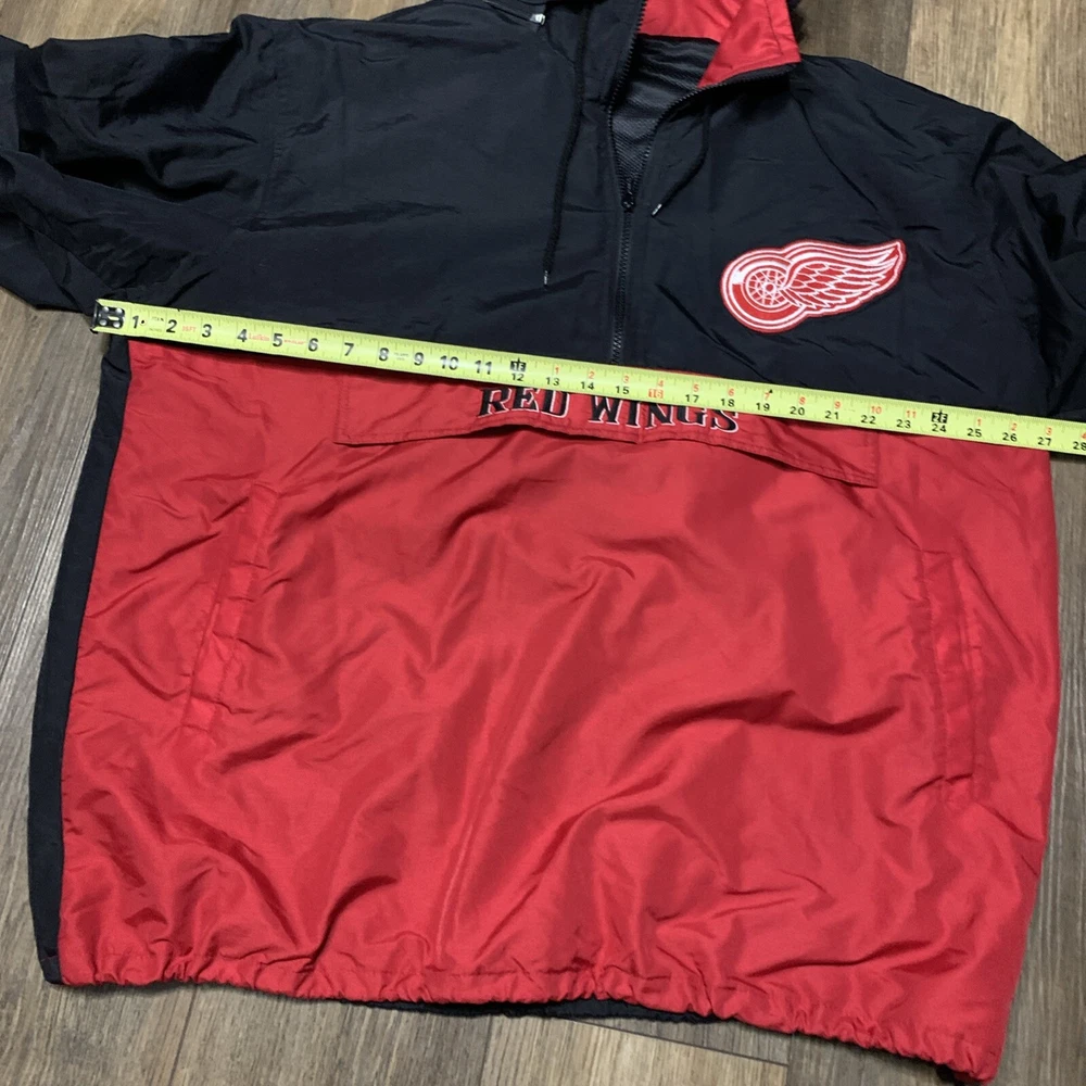 Show off your love for the Detroit Red Wings with this 1/4 Zip Hooded Pullover Jacket. This jacket is perfect for any fan of the National Hockey League (NHL) and features the iconic team colors of red and black in a stylish colorblock design. The jacket is made for men and comes in one size, making it a great gift for any fan of the Detroit Red Wings. Not only is this jacket stylish and comfortable, but it also features the Detroit Red Wings logo prominently on the front, making it a great addition to any fan's collection. Whether you're heading to the rink or just showing off your team spirit, this jacket is perfect for any occasion.