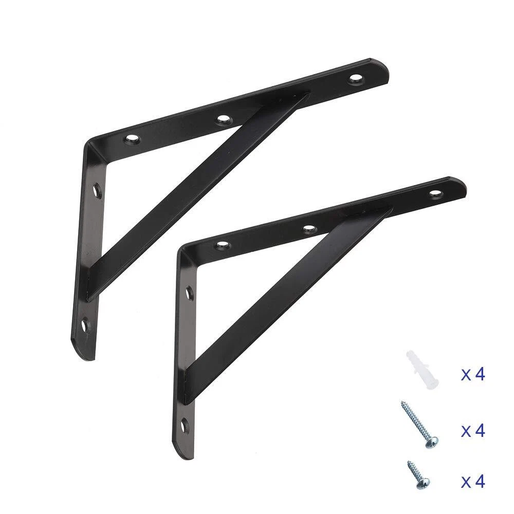 Product Description This black shelf bracket is perfect for display bookshelf, bookracks, storage shelf ,exhibition stand ,etc. Made of heavy duty cast iron, with premium matte black powder coat finished, adds a touch of industrial and rustic taste to your home Coming with screws and anchors, easy to install. Shelf Brackets Dimension-8*6 inch (200*150 mm); Thickness-3mm; Width-25mm Package included: 2 x Angle Brackets,4 x long screws, 4 x short screws and 4 x anchors, NO WOOD BOARD INCLUDED WIDE APPLICATION---This black shelf bracket is perfect for display bookshelf, bookracks, storage shelf ,exhibition stand ,etc. STURDY & RUSTIC--- Made of heavy duty cast iron, with premium matte white powder coat finished, adds a touch of industrial and rustic taste to your home EASY INSTALLATION --- Coming with screws and anchors, easy to install. MEASUREMENT--- Shelf Brackets Dimension-8*6 inch (200*150 mm); Thickness-3mm; Width-25mm PACKAGE INCLUDED –-- 2 x Angle Brackets,4 x long screws, 4 x short screws and 4 x anchors, NO WOOD BOARD INCLUDED