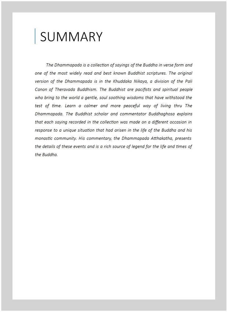 Dhammapada, Paperback by Muller, F. Max, ISBN 1500360155, ISBN-13 9781500360153, Like New Used, Free shipping in the US The Dhammapada is a collection of sayings of the Buddha in verse form and one of the most widely read and best known Buddhist scriptures. The original version of the Dhammapada is in the Khuddaka Nikaya, a division of the Pali Canon of Theravada Buddhism. The Buddhist are pacifists and spiritual people who bring to the world a gentle, soul soothing wisdoms that have withstood the test of time. Learn a calmer and more peaceful way of living thru The Dhammapada. The Buddhist scholar and commentator Buddhaghosa explains that each saying recorded in the collection was made on a different occasion in response to a unique situation that had arisen in the life of the Buddha and his monastic community. His commentary, the Dhammapada Atthakatha, presents the details of these events and is a rich source of legend for the life and times of the Buddha.