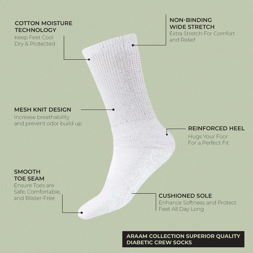 Diabetic Crew Socks For Men 12 Pairs Loose Fit Wide Top Seamless Cotton Women