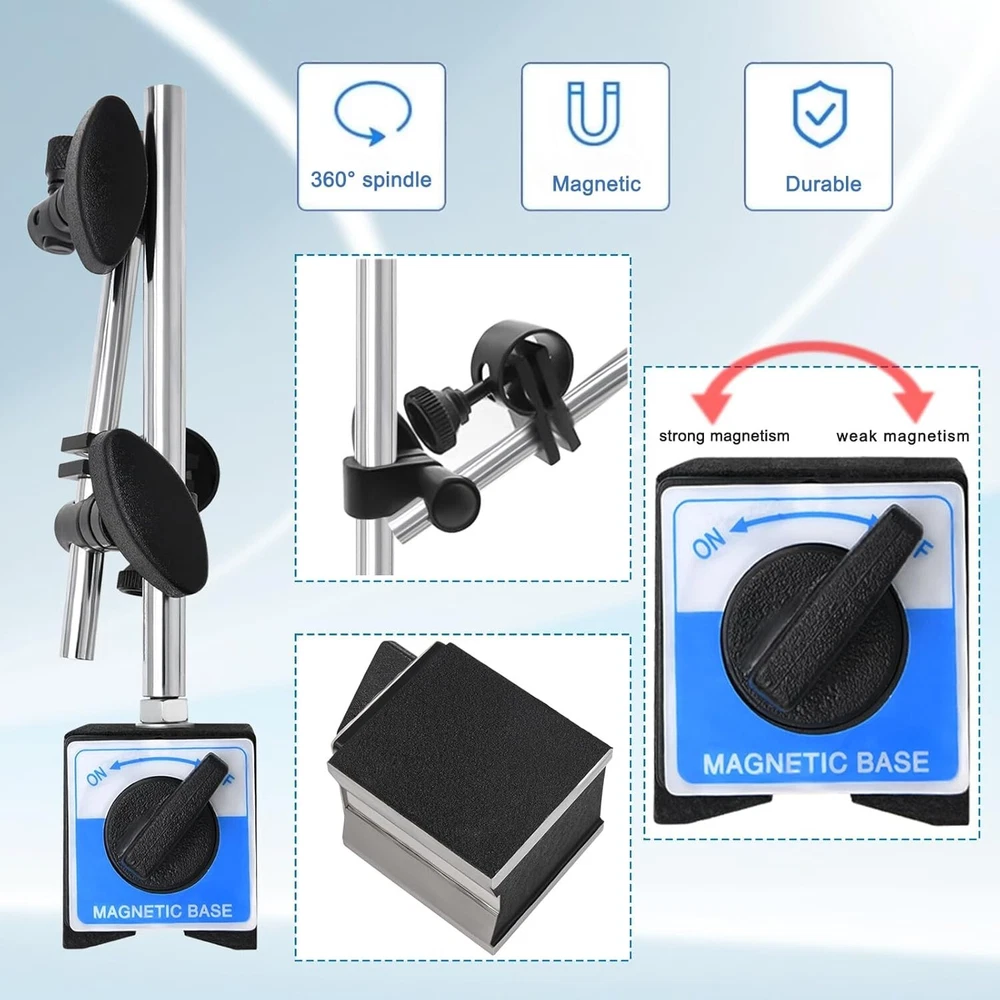◆3/8"Stem diameter, 1" dial indicator, graduation 0.001", 2" dial face and lug back. Also known as: dial indicator, magnetic base dial indicator, Dial Indicator, Magnetic Base & Point Precision Inspection Set, Dial Indicator with Magnetic Base Holder Fine ◆Magnetic base: overall height 9",with fine adjustment long arm, on and off switch, 130 lb. power pull, base measures 2" width X 2-1/2" depth ◆Indicator points set 22-piece: AGD specifications (4-48 threads) ◆【Package Include】:1 x 0-1" .001" dial indicator, 1 x magnetic base , 1 x 22-piece indicator point set, 1 x hard plastic case ◆Providing high quality and professional parts with great service.if you have any questions, please feel free to contact us by email for more information!We will solve it for you in the first time!
