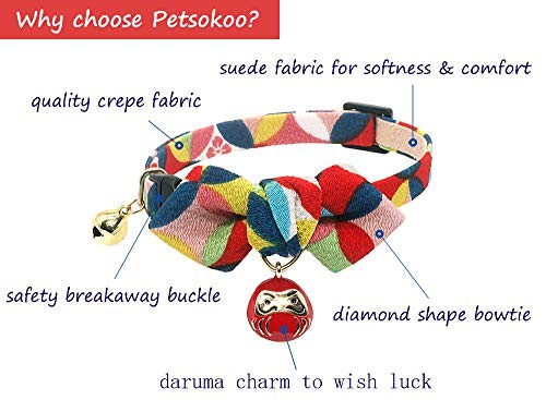Return Policy Fast Delivery Trusted seller Diamond Shaped Bowtie Cat Collar with Bell.Japan Lucky Daruma Charm and Cloisonne Print Crepe Fabric.Safety Breakaway.Soft,Lightweight,(Small,Red) Product Description BEAUTIFUL DESIGN - This cat collar comes with a stylish diamond shaped bowtie and a Japan traditional Daruma charm, unique oriental style, so different from ordinary collars, which will definitely make your cat looks so amazing. COMFORTABLE & QUALITY CREPE FABRIC - If you’re tired of cheap plastic materials(nylon, polyester…)that are not comfortable for your cat, will be the perfect choice. It's made of sturdy Japan crepe fabric, crepe fabric is usually used in Japan traditional high-class kimono dresses, it's soft, durable and hypo- allergenic. 100% HANDMADE - Ensure that every collar is of high quality. SAFETY BREAKAWAY BUCKLE - If your cat gets caught on something, the buckle will snap apart from the pressure and your cat will be safe. ADJUSTABLE SIZE - Easy to adjust length to fit your cat’s neck size, suitable for most baby kittens and adult cats. Shipping Returns Payment Shipping Shipping is FREE to all addresses other than APO/PO boxes in the lower 48 states. All our stock ships from US-based warehouses. Shipped via USPS or UPS (depending on location and package weight) Unless stated otherwise, all orders will ship within 24-72 hours of your payment being processed. Check our feedback to see the great reviews of FAST shipping we offer. Returns Seller does not accept returns Payment We currently accept payment via eBay managed payments only. Once payment is cleared, we will dispatch your shipment within 1-3 business days. Please refer to the "Shipping" tab for more information regarding shipping speed to your destination.