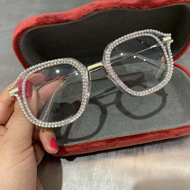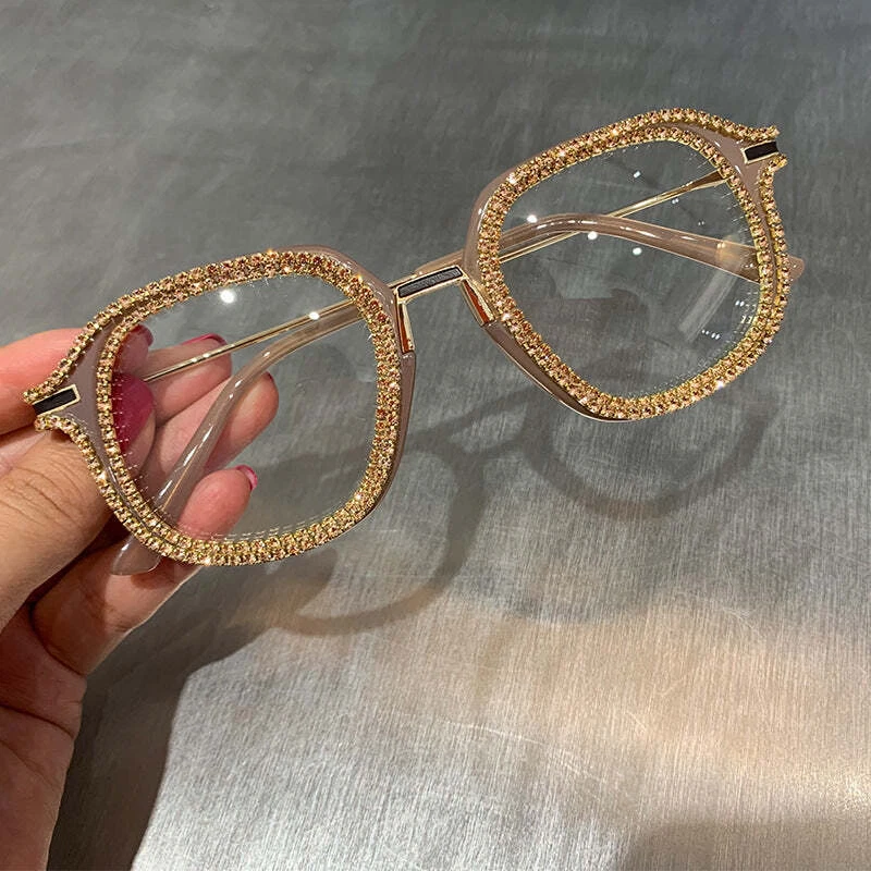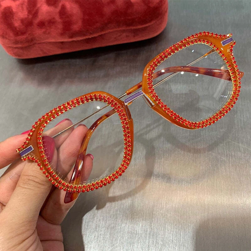 Specification: Adult Glasses structure: frame Whether polarized light: No Lens material: PC Style: Vintage Frame material: PC UV resistance level: UV400 Style: Universal Visible light see-through rate: 99.9 (%) Strength: Strong Logo printing: Yes Lens color: black frame with white diamonds, gold, beige frame color, transparent frame color