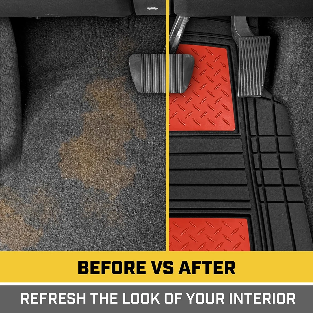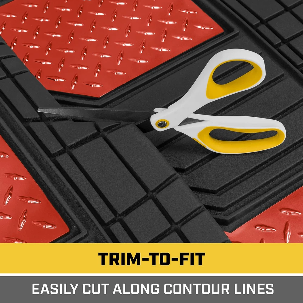 Store New Arrivals Add to Favorite View Feedback Contact ® Diamondshield™ Rubber Floor Mats for Cars Trucks Suvs, All Weather Protection Front & Rear Car Mats Set, Heel Pad & Anti-Slip Backing, Universal Fit Trim-To-Fit Rubber Floor Mats for Car, Red Description Item model number CAMT-2314-BK/RD Auto Part Position Front Inside, Rear Inside Fit Type Universal Fit Product Dimensions 28"L x 20"W x 1"Th Material Rubber Vehicle Service Type Passenger Car, Van, SUV, Truck Color Black/Red Country of Origin China Manufacturer Part Number CAMT-2314-BK/RD Item Weight 8 pounds OEM Part Number CAMT-2314-BK/RD Automotive Fit Type Universal Fit Special Features Custom Trimmable Gridlines, All Weather, Anti-Slip Nibs, Stain Protection, Universal Fitment Model CAMT-2314-BK/RD Built for Protection - Guard Against Spills, or Debris - Built to Last through Rain, Snow, Mud and More. Dimensions: Front: 28" x 20" in / Rear: 19" x 15.75" in No-Slip Grip - Rubberized Nibs on the Bottom so the Mat Does not Move - Ergonomic Grooves on Top to Give your Foot Traction & Comfort Simple Installation - Place the Mats on the Floor of your Vehicle - Easily Remove and Clean the Mats of any Dirt & Spills Designed for Compatibility - Made to be Trimmable to Fit your Vehicle’s Floor Contours with only a Pair of Scissors Our Advanced Performance Rubber Polymers are Tested for Extreme Conditions to Ensure they Don't Crack, Split or Deform BDK CAT® Heavy Duty All-Weather Tough Rubber Car Floor Mats with Metallic Design Protect and enhance your vehicle’s interior with the BDK CAT® Heavy Duty All-Weather Tough Rubber Car Floor Mats. Perfect for cars, trucks, SUVs, vans, and sedans, this 4-piece set includes front and rear floor mats along with a universal trim-to-fit trunk cargo mat liner for complete all-weather protection. Designed to handle mud, dirt, spills, and everyday wear, these durable rubber mats safeguard your vehicle’s floors while adding a sleek metallic design for a modern touch. Constructed from high-quality, heavy-duty rubber, these mats are engineered to provide lasting durability under the toughest conditions. Their deep grooves and textured surface trap dirt and debris, preventing messes from spreading and making cleanup a breeze. The anti-slip backing keeps the mats securely in place during sharp turns and sudden stops, offering both safety and convenience. With a customizable trim-to-fit design, these mats can be tailored to perfectly fit your vehicle, ensuring maximum coverage and protection. Designed for practicality and style, these mats are easy to clean—simply remove, rinse, and reinstall for a fresh, clean look. The addition of the universal cargo mat liner offers extra coverage for your trunk, protecting it from heavy loads, spills, and dirt. Whether you’re dealing with harsh weather conditions or everyday messes, the BDK CAT® Heavy Duty Rubber Floor Mats deliver reliable performance and an upgraded interior look. Ideal for those seeking all-weather, trim-to-fit car mats that combine durability, style, and protection, this set is a must-have for any vehicle. ABOUT US We offer the best prices around on high quality products. Our E-store includes media such as books, movies, music and games while offering electronics, toys, sporting apparel, clothing, tools, general home, garden items and more. SHIPPING We are always working hard to ensure your package arrives as soon as possible. Please understand that some factors like weather, high postal traffic, and the performance of shipping companies are outside of our control. We offer free shipping to the lower 48 states and ship within 2 business days of payment, usually sooner. We do not accept P.O. Boxes. Please provide a physical address. For shipping outside of the continental USA, we only use eBay's Global Shipping Program.The item is shipped to KY and then sent to the rest of the world. International customers are responsible for all duties and taxes. Continue to check out in order to calculate costs for shipping the item to your country. Messages regarding eBay's Global Shipping Program MUST be directed at eBay EXCLUSIVELY. RETURNS We offer a 30-Day Return Policy on items which you are not completely satisfied with. You have the option for a full-refund or an exchange of the item. No returns are available on items shipped outside of the USA. PAYMENT We accept PayPal. CONTACT US This page content is yet to come Please ad us to your favorite seller and visit again later Thank You CUSTOMER SATISFACTION We try our very best to make sure every customer is completely satisfied. If there's a problem, message us! We're happy to help. WE ACCEPT Copyright © 2021 AutoDS. | All Rights Reserved