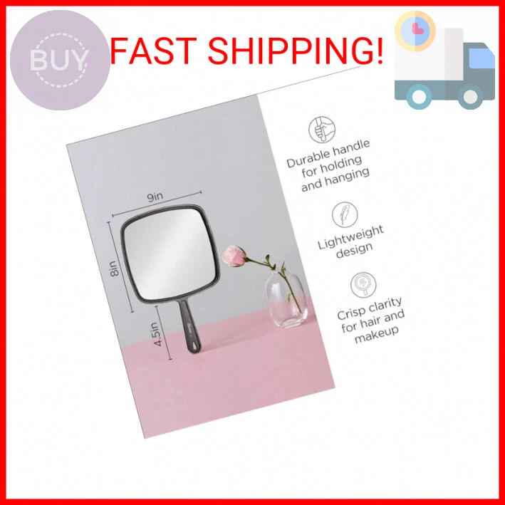 Diane Professional Quality Hand Held Mirror with Handle, Single Sided Vanity Makeup Mirror for Women, Men, Salon, Barber, Shaving, and Travel, Large 9" x 12.75" in Black - PROFESSIONAL QUALITY: This handheld mirror with handle is ideal for using in a salon or barber shop or for a makeup artist. It can also be used as a personal mirror for applying makeup, lashes, brow shaping, shaving and other personal grooming needs. - MULTI-PURPOSE: This handy mirror can be used in a variety of spaces including salons, spas, barber shops, bathrooms, school lockers, desks, workspaces and more. - HOLD OR HANG: The Diane Handheld Mirror can be held or mounted to hang from the wall by the hanging hole in the handle. - PORTABLE MIRROR: This personal mirror is lightweight, making it travel and gym friendly. - LARGE SIZE: This beauty mirror measures 9"x 12.75" with handle and the mirror itself without the handle is approximately 9" wide x 8" tall. Payments We accept the following payment methods PayPal Support Our dedicated customer support team is here to assist you from 9AM to 5PM Monday through Friday, excluding public holidays. Should you reach out to us and not recieve an immediate response, it's likely due to a higher-than-usual volume of inquires. We want to reassure you that your concerns are important to us, and we're working dilligently to get back to you. Expect a response by the next business day at the latest. Your understanding and patience are greatly valued as we strive to provide you with the best support possible! Shipping All orders are processed within 5 business days. Shipping estimates may be shown on this listing by eBay, and these are often not an accurate reflection of our shipping times. If we are experiencing a high volume of orders, shipments may be delayed by a few days. Please allow additional days in transit for delivery. If there will be a significant delay in shipment of your order, we will contact you via message. Shipping rates & delivery estimates Shipping is often free, but if charges for your order apply they will be calculated and displayed at checkout.