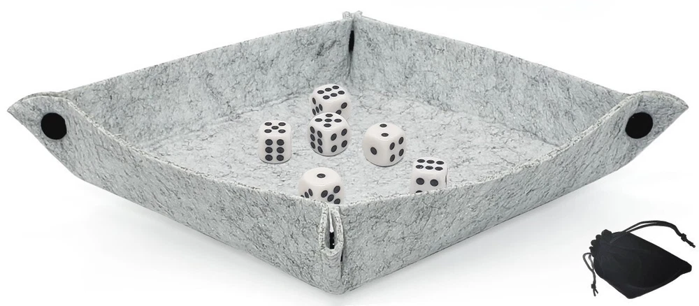 Current Discount Offers Serving the eBay Community Worldwide Since 1997! Dice Rolling Tray Portable Folding Felt Mat + 16mm Pip Dot Dice with Velvet Pouch Bundle Set Perfect for poker dice, liars dice, yahtzee, farkle, bunco and other games requiring 5 or 6 dice. Tray: Soft Felt – Helps to muffle rolls on hard surfaces Concave Shape – When snapped, flexible bowl shaped versus rigid squared or rectangular trays. Curvacure keeps dice contained … not scattering on (and off) hard surfaces as without a tray Snap Tabs – Easily assemble for play and quickly unassemble for storage as flat mat Dimensions – Unsnapped – 9.8″ (25cm) square with curved corners; Snapped – Approximately 8″ (20cm) width, 2.5″ (6.3cm) height Multi-Functional Design – Also works well as mouse pad, convenient holding tray for pocket / small items, pot mat, as well as other creative uses. Dice: (6) 16mm , 6-sided D6, rounded corners acrylic dice Base color as pictured Dimpled solid color pips (dots) as pictured Pouch: Black velvet cloth pouch bag Drawstring closure for safekeeping dice not in play Related Offers: Pip (Dot) Dice & Dice Sets Poker Dice & Cup Sets Product Condition / Packaging Shrink-Wrapped Bundle Product Notes If additional quantity desired, click Contact Seller link to request non-obligation eBay Listing update/revision. Shipping Ships in secure, protective packaging with delivery tracking. Orders ship first-in first out, usually early in posted handling time period. Please see "Shipping & Payments" section above for shipping services, with rates and estimated delivery dates. For any question, including special handling request, desired expedited shipping services (and rates) not shown or other, please eBay Message. Any current/subsequent contact or Paypal-payment note may not be seen prior to order shipment. Outside USA: Each bundled Item (pre-identified as a "Bundle" in listing) counts as only a single item to minimize shipping charge Payment We accept payment through eBay Managed Payments service. eBay system will automatically charge sales tax where applicable. Service / Support We are here to service all pre- and post-purchase questions. Returns always accepted within 30-days for any reason; buyer responsible for return delivery. Per eBay guidelines, please eBay Message us prior to posting any feedback other than positive, or taking other action, to provide us opportunity to resolve any issue. We do not claim to be product experts for each of 1000s software & DVD titles offered, but with 20+ years experience, may be able to help troubleshoot installation. (For post-installation usage help, please refer to on-screen documentation usually accessible within software, or in "help" file, else possibly available on Internet). Outside USA: Though compatibiilty tested within USA only, orders regularly fulfilled outside USA with rarely any reported issue. Our business hours: 9am - 6pm Pacific Time USA, Monday - Friday (except US Postal Holidays). eBay Message us (cyber-deals) by clicking on either: "Contact Seller" link in your order for this item in your Purchase History - (Best Method) "Ask A Question" link below in the Questions & Answers section on this listing page