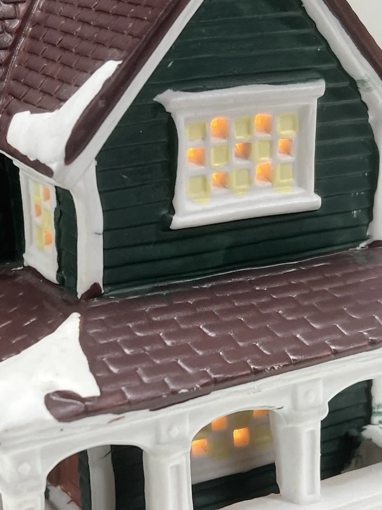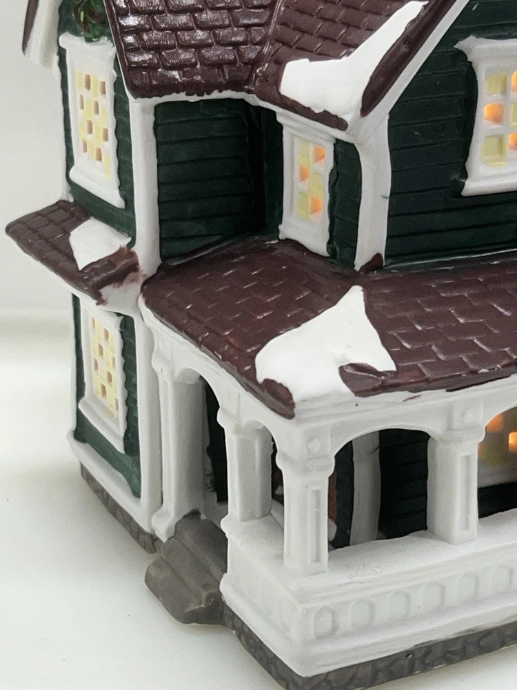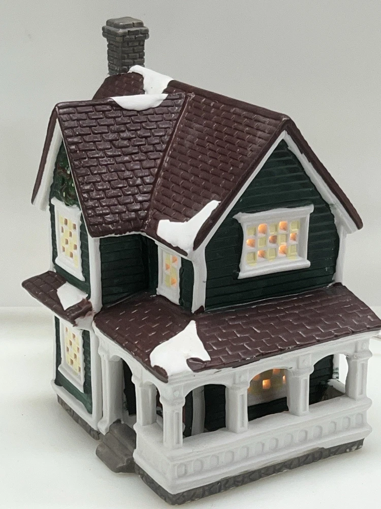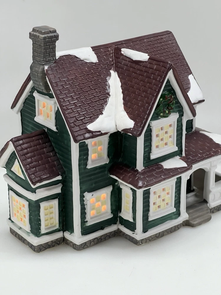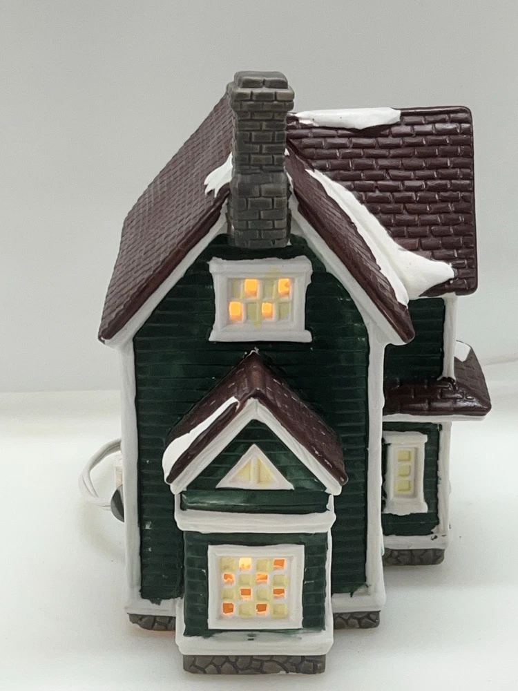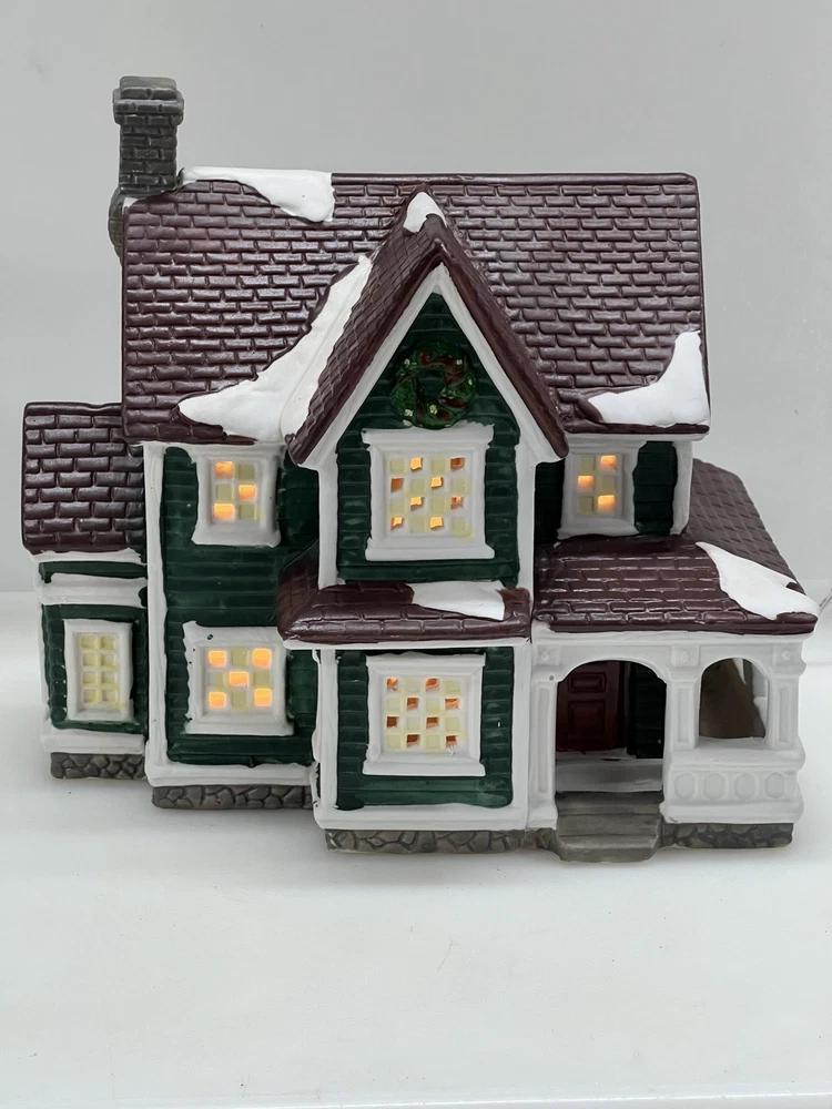 This Dickens Collectables Victorian Series 266-6220 Lighted House is a charming addition to any Christmas Village display. The porcelain house features a whimsical Victorian home with multicolor paint finish. The lighted house is suitable for any room and is perfect for creating a festive and seasonal atmosphere. The house measures 8 inches in length, 7-1/2 inches in height, and 5 inches in width, making it a medium-sized piece. The house was manufactured in 1994 and is in mint condition, both the house and the box. This collectibles item is a great gift for adults who love Dickens, Christmas, and seasonal villages. Absolutely incredible pristine condition. Includes all original packaging including cord & light .