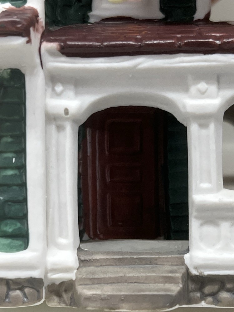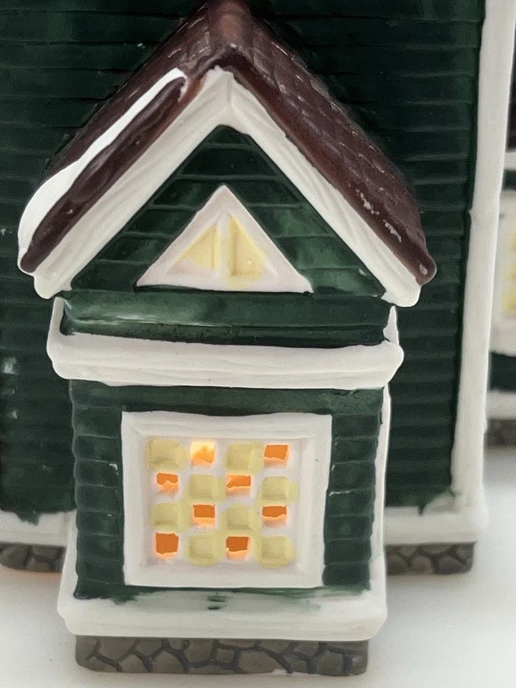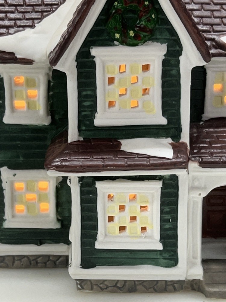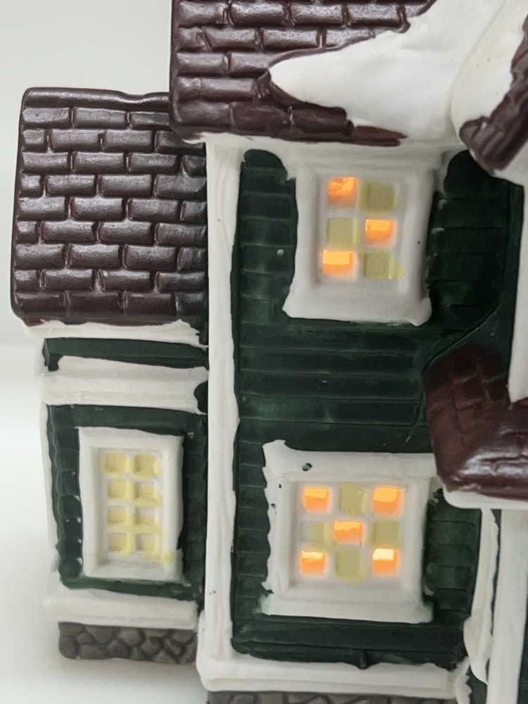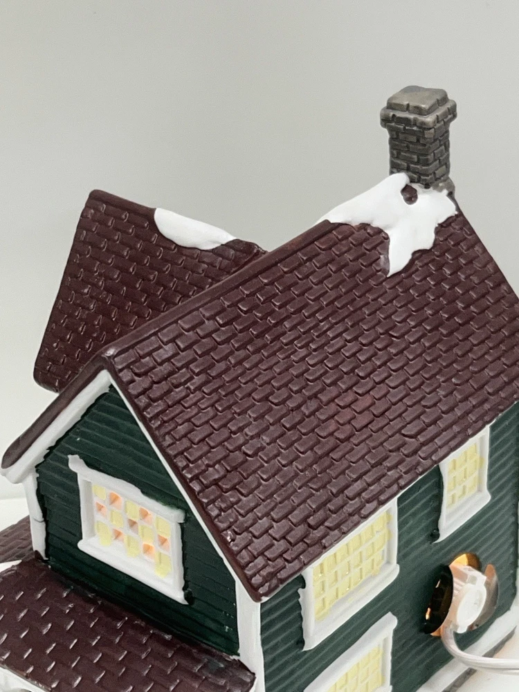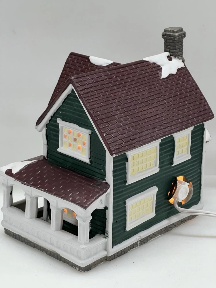 This Dickens Collectables Victorian Series 266-6220 Lighted House is a charming addition to any Christmas Village display. The porcelain house features a whimsical Victorian home with multicolor paint finish. The lighted house is suitable for any room and is perfect for creating a festive and seasonal atmosphere. The house measures 8 inches in length, 7-1/2 inches in height, and 5 inches in width, making it a medium-sized piece. The house was manufactured in 1994 and is in mint condition, both the house and the box. This collectibles item is a great gift for adults who love Dickens, Christmas, and seasonal villages. Absolutely incredible pristine condition. Includes all original packaging including cord & light .