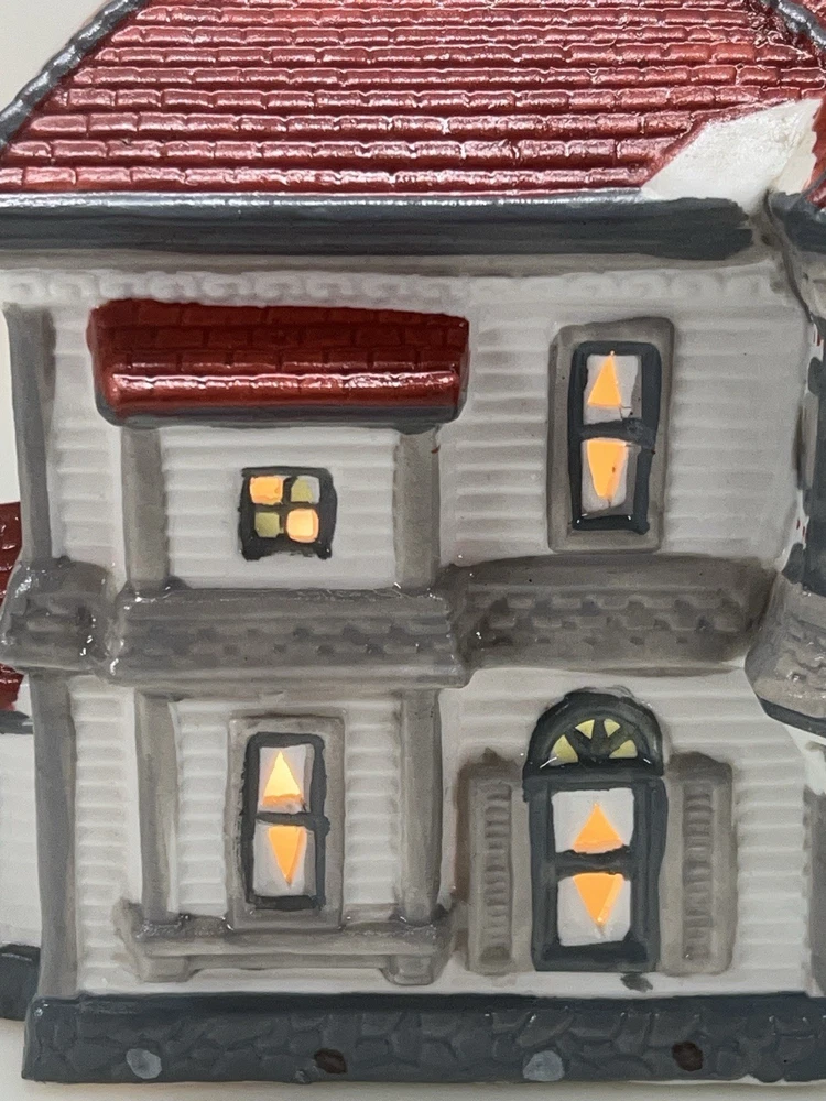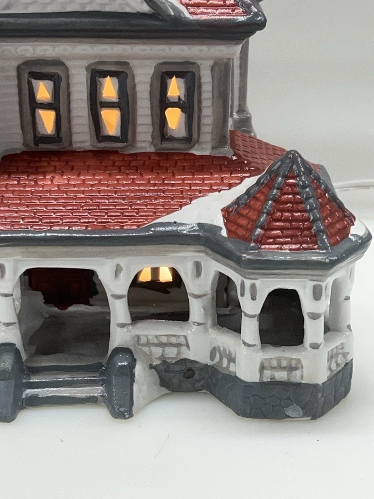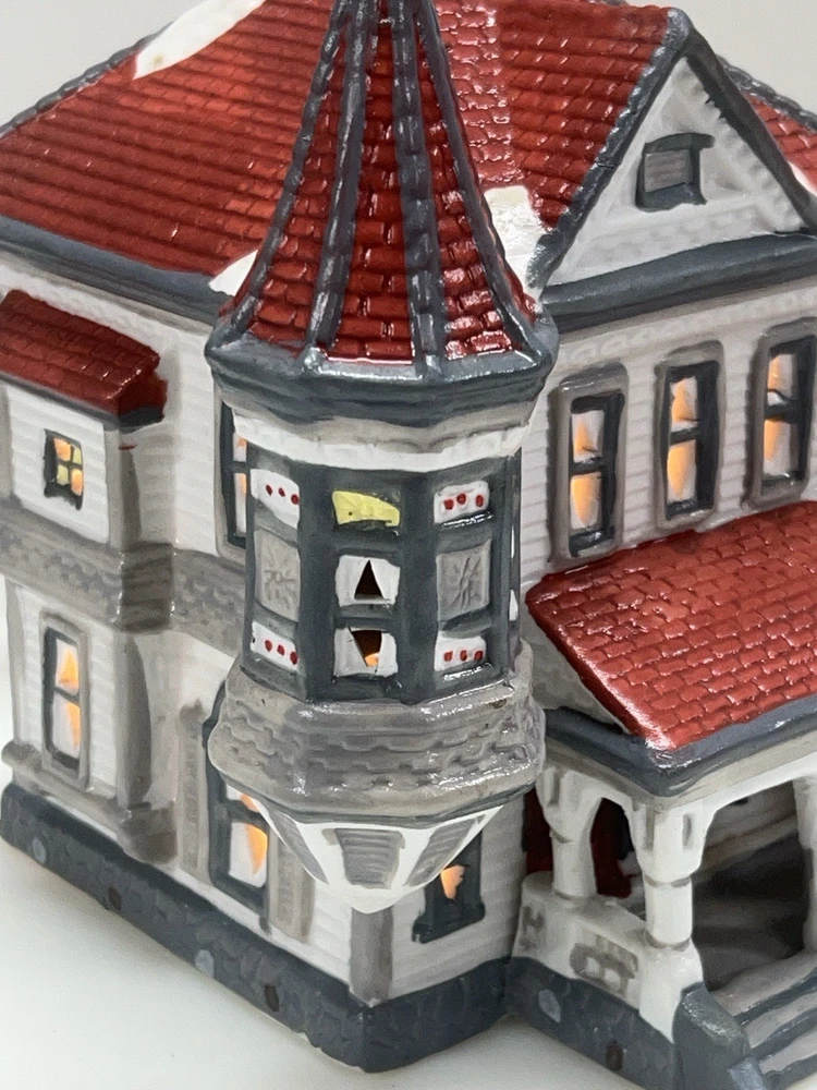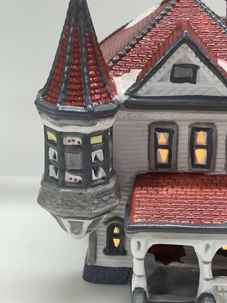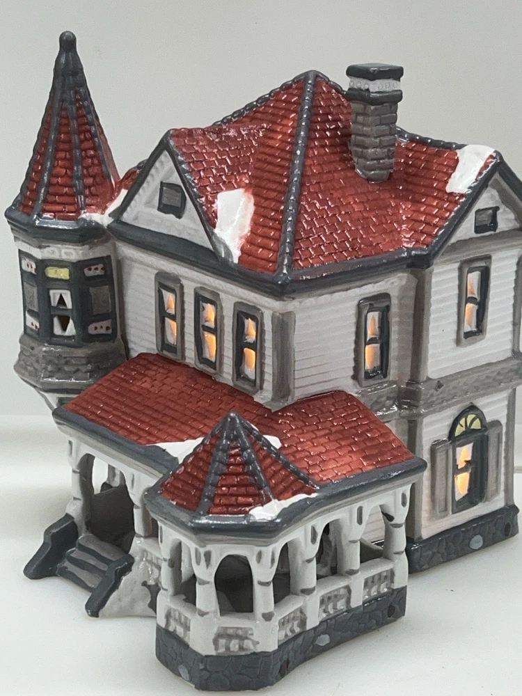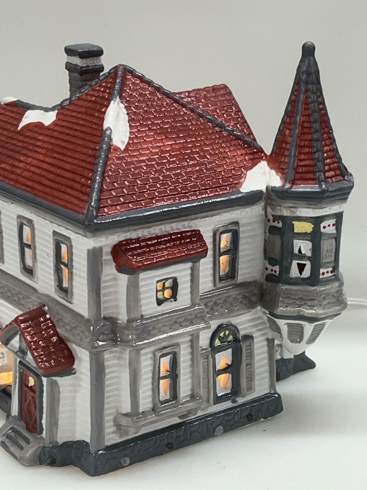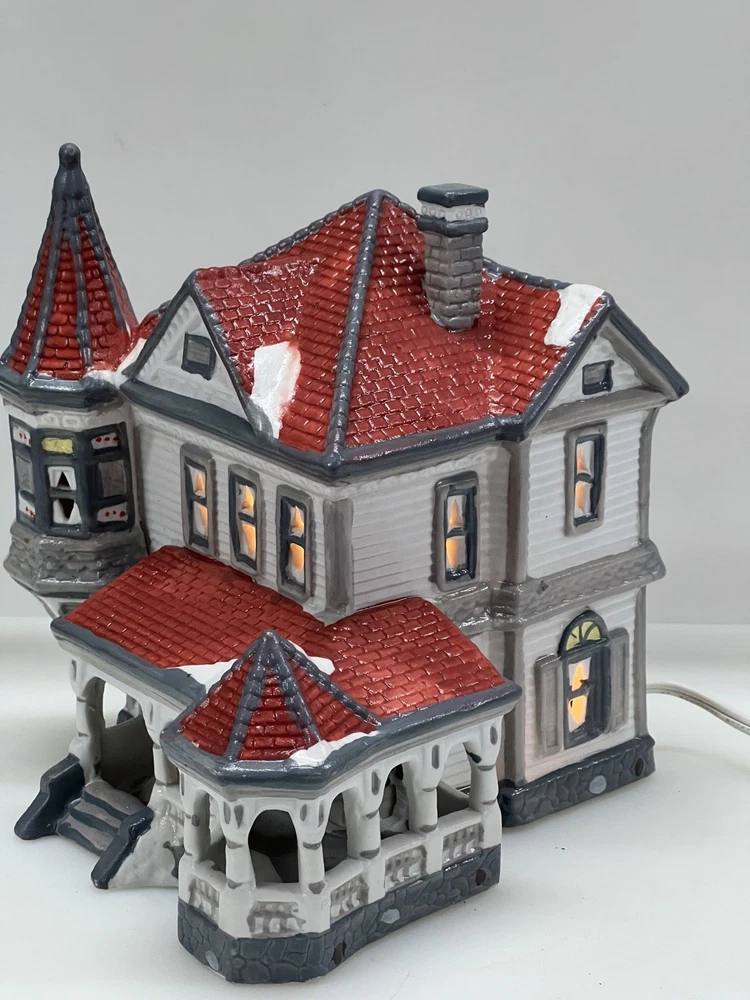 This beautiful Dickens Collectables Victorian Series 266-6253 White Victorian Lighted House is the perfect addition to your Christmas Village display. The whimsical Victorian home is made of porcelain and features multicolor paint finish. The house is medium in size, measuring 6" in length, 7" in height, and 7" in width, and comes in its original box. The collectible was manufactured in 1994, during the Late 20th Century. The item is an original and part of the Victorian Series collection. The Lighted Victorian House is perfect for any room and is a great gift for collectors of Holiday and Seasonal Villages & Houses. Absolutely incredible pristine condition! Includes all original packaging including cord & light ! 1994 !!!