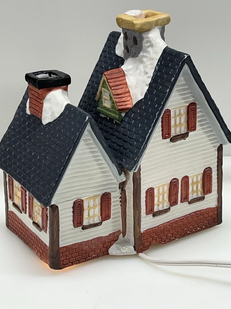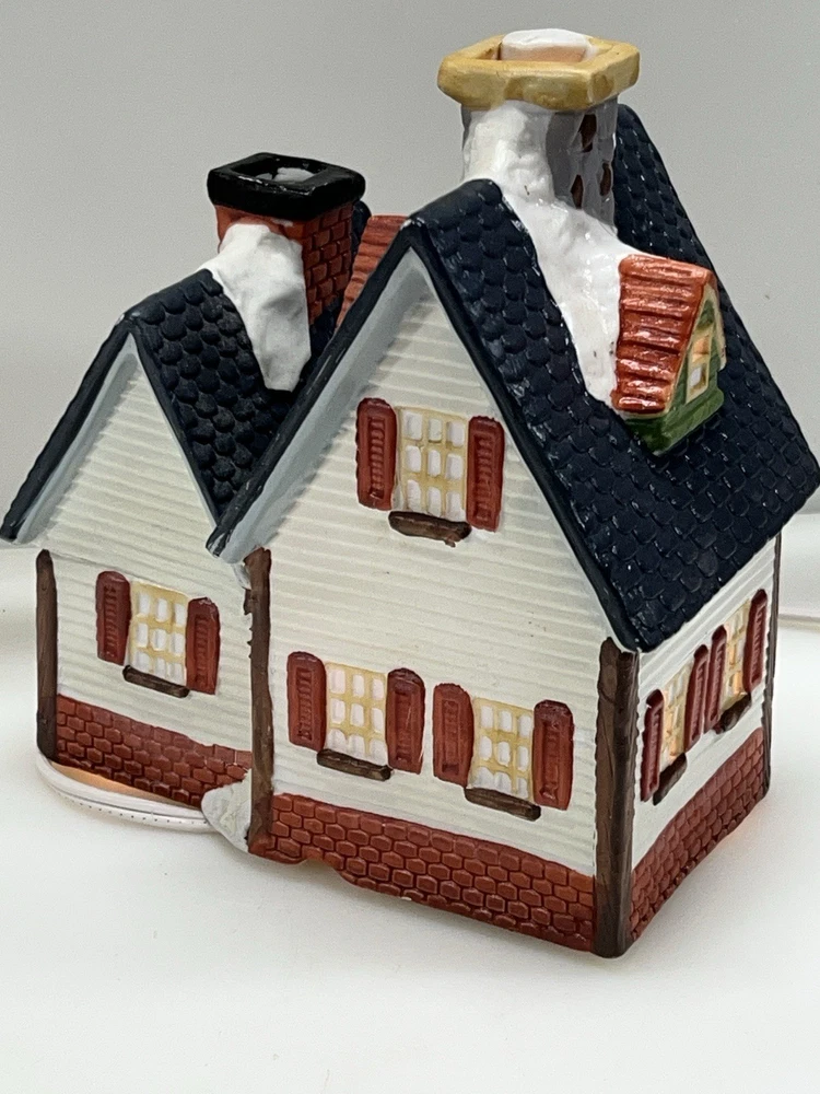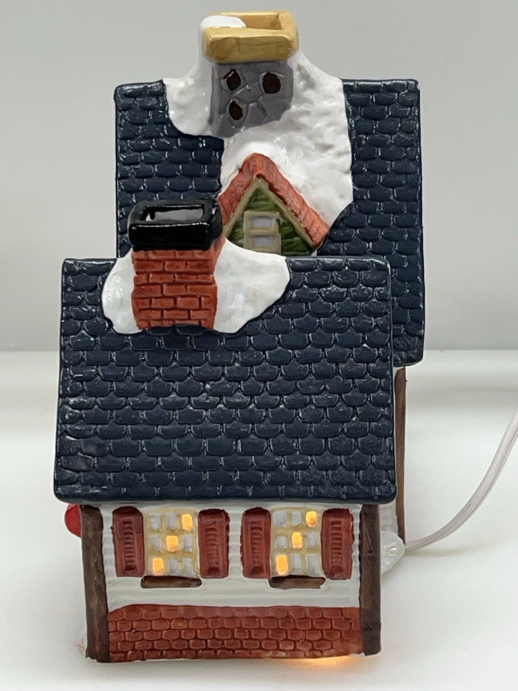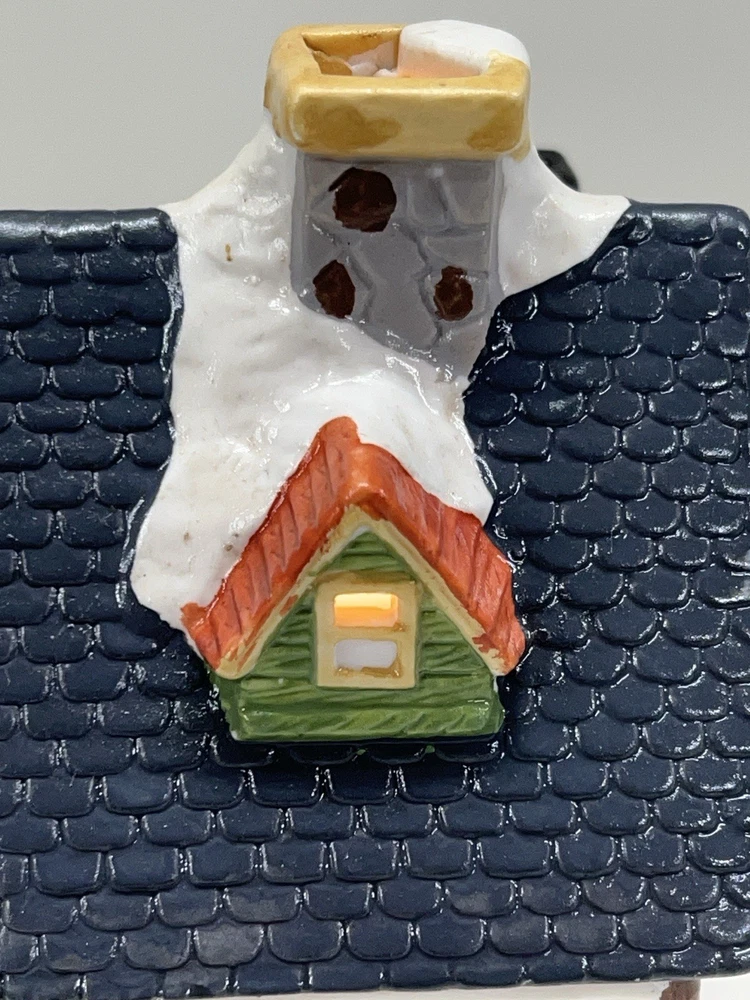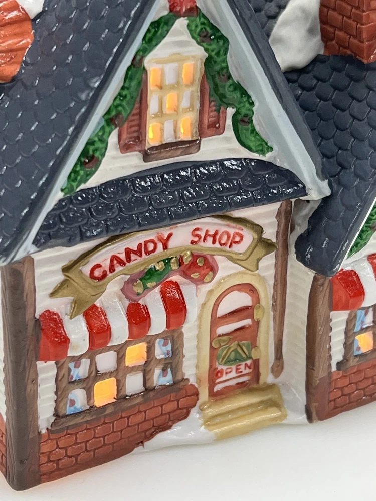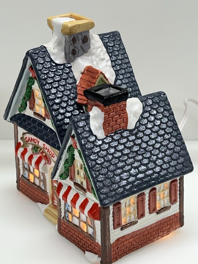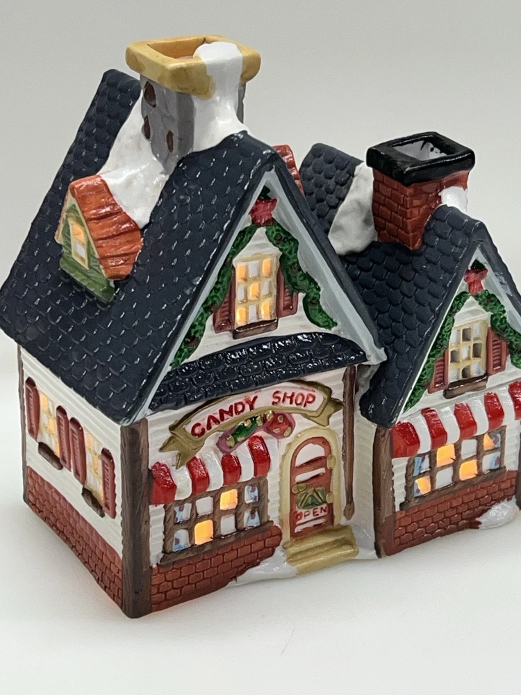 This charming Dickens Collectables Towne Series Candy Shop Village House O’Well from 1994 is a must-have for any collector of Christmas villages. The asymmetrical, hand-painted porcelain house features a whimsical candy shoppe design with multicolor accents and a illuminated interior. It comes boxed and retired, making it a rare find for those looking to add to their collection. Perfect for any room, this Victorian-style house is suitable for seasonal village display and would make a great addition to any holiday decor. The house measures 6-1/2" in height, 6" in length, and 4" in width, and was manufactured in China in the late 20th century. Don't miss out on the chance to own this delightful piece from the Dickens Collectables brand. Perfect condition! Comes with all original packaging including light & cord