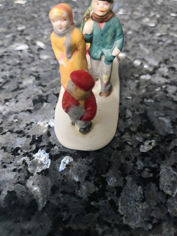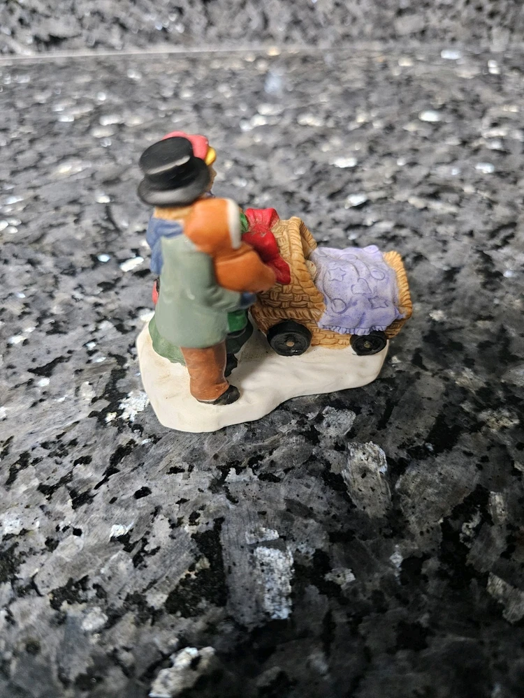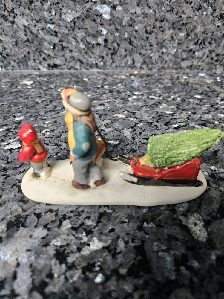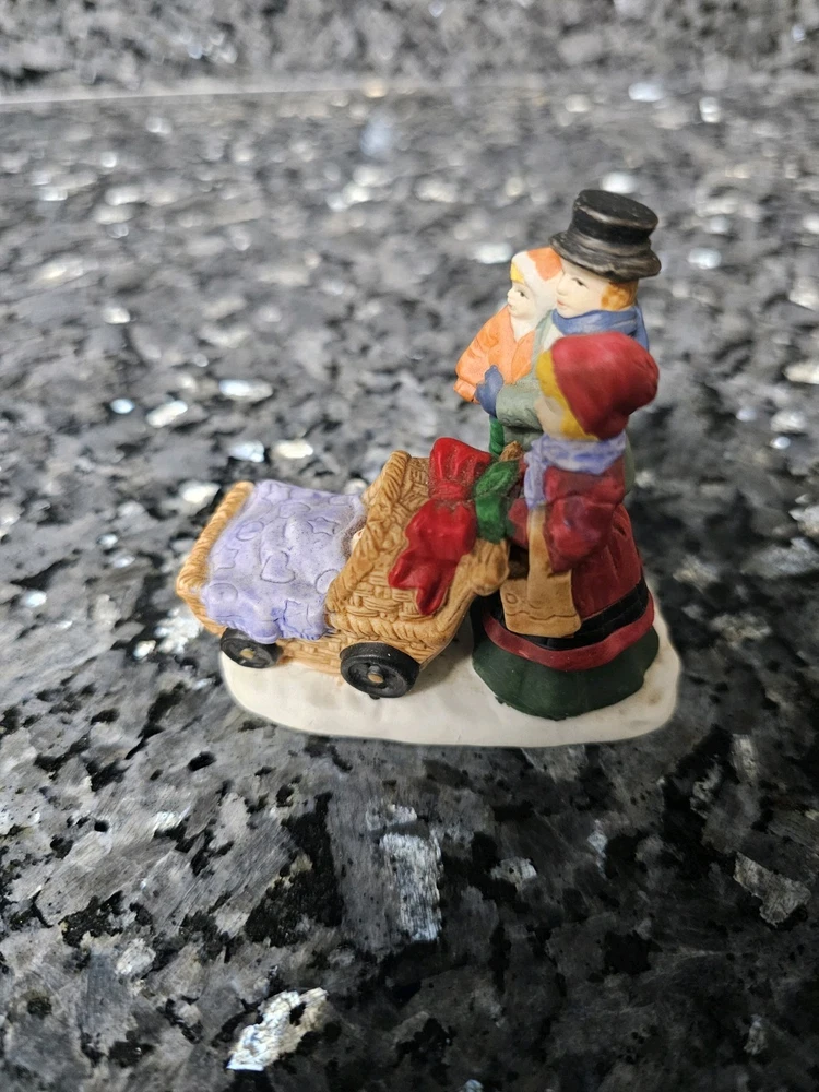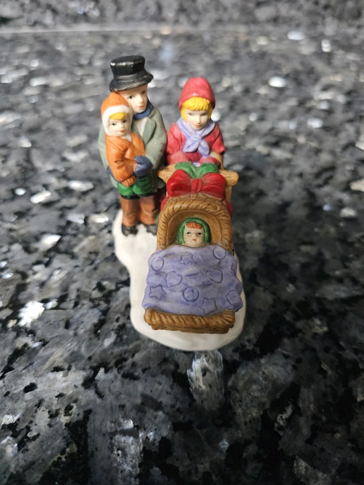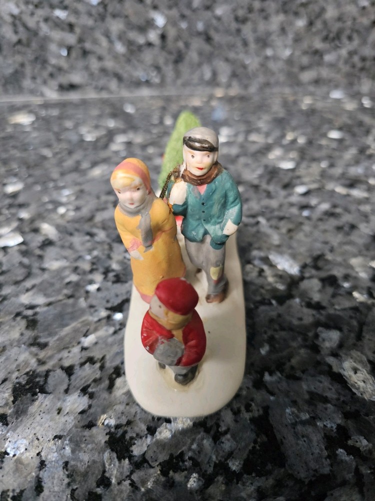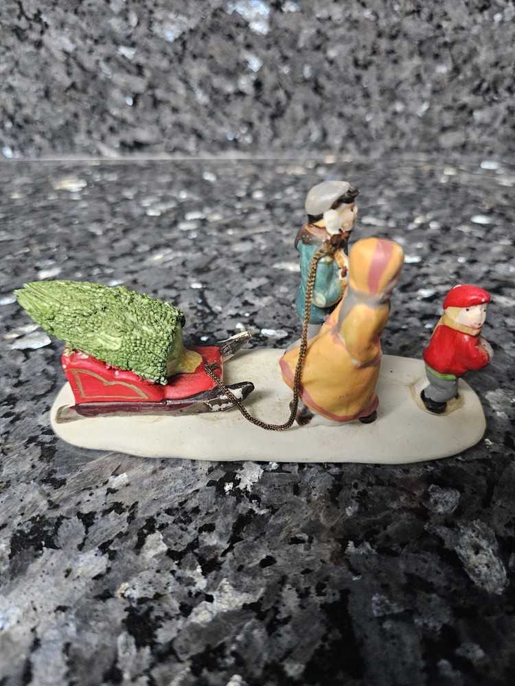 2 Figurines Dickensvale Family Pulling Tree Figurine Christmas Village Accessories Lemax '94 boy has been glued back on, sleigh has some glue other figurine Family with mother pushing stroller see all photos