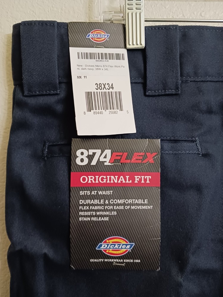 New with tags. 65% Polyester, 35% Cotton. 4 big pockets. Waist - 38" Inseam - 34" Rise - 14" Across pant leg hem - 9"