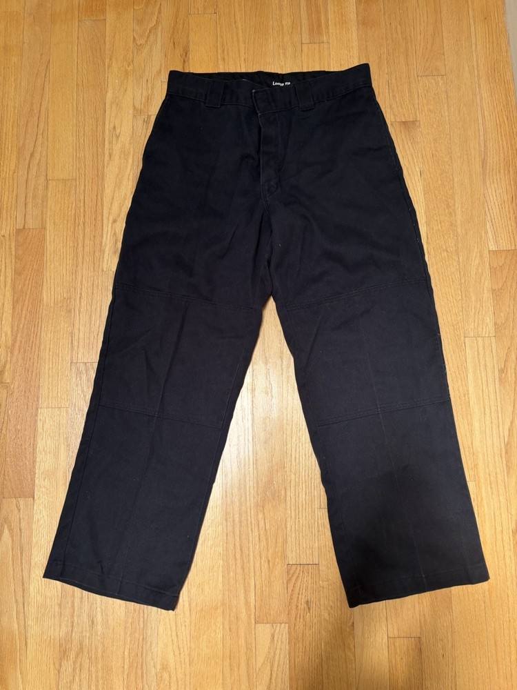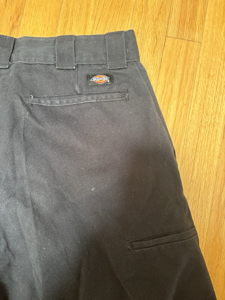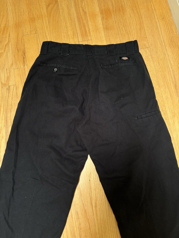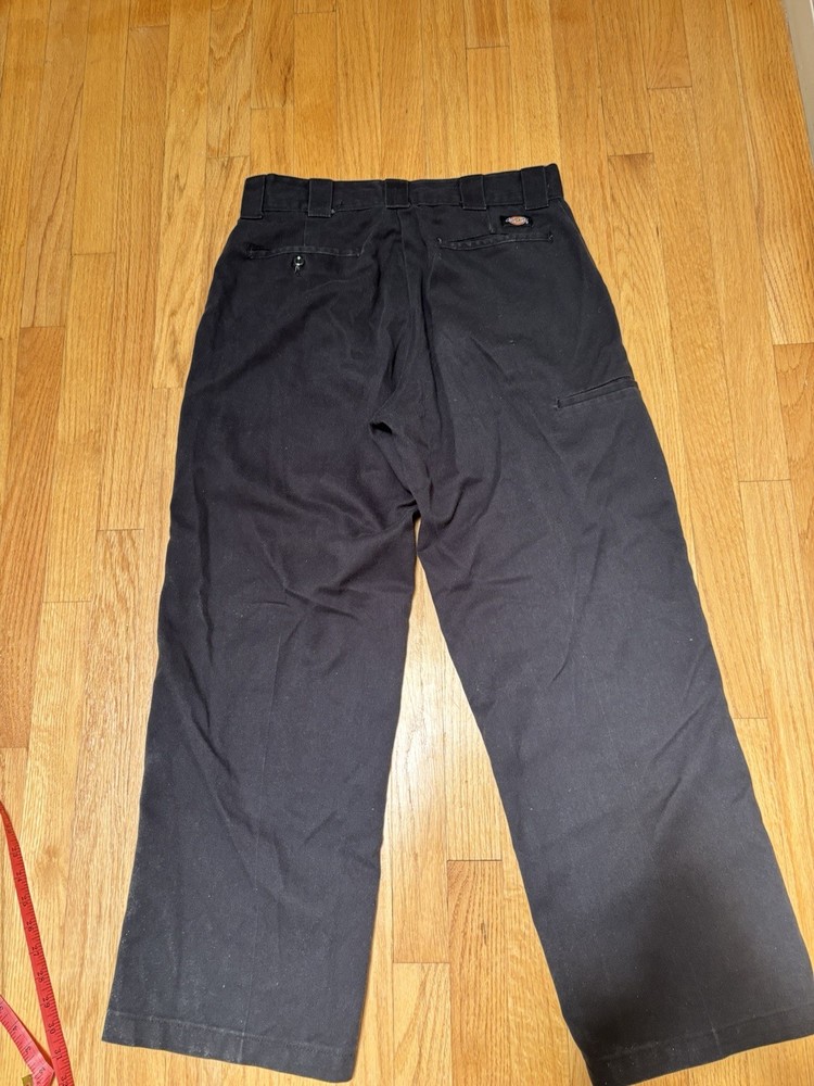 BLACK DICKIES WIDE LEG PANTS These are in good condition - no holes but some signs of wear Baggy fit, wide leg skater/ cargo style Smoke free home Waist is 34, inseam is 30 See photos for other measurements If you have any questions please message me ⭐️⭐️