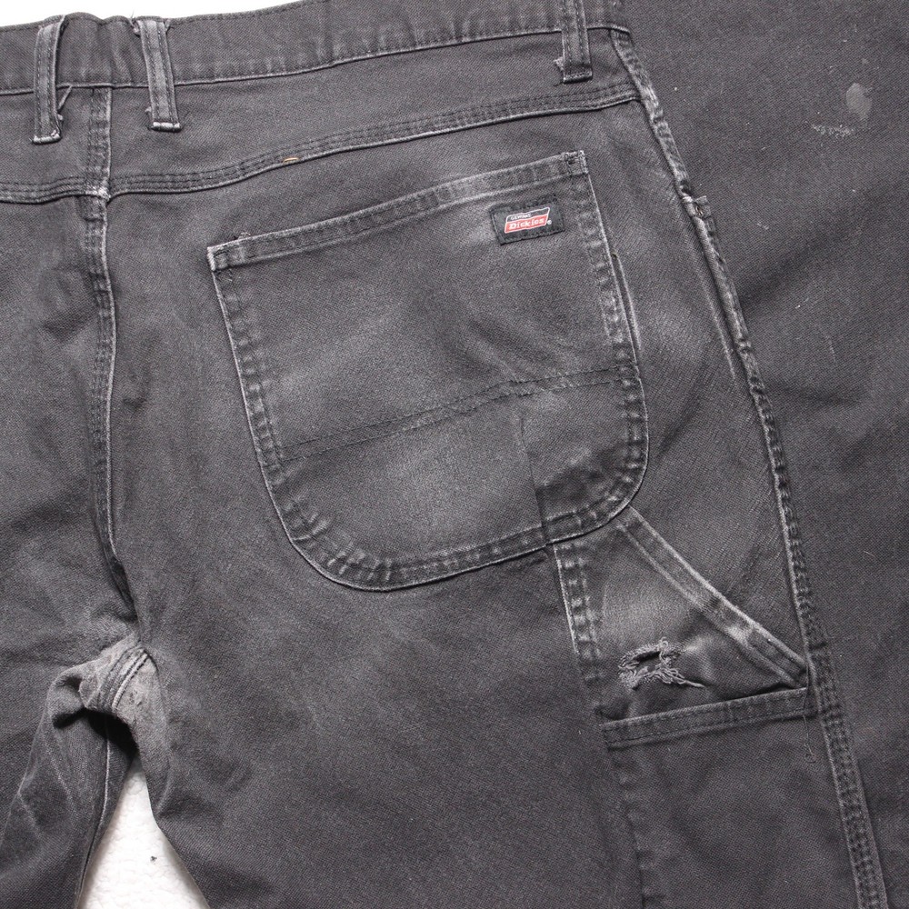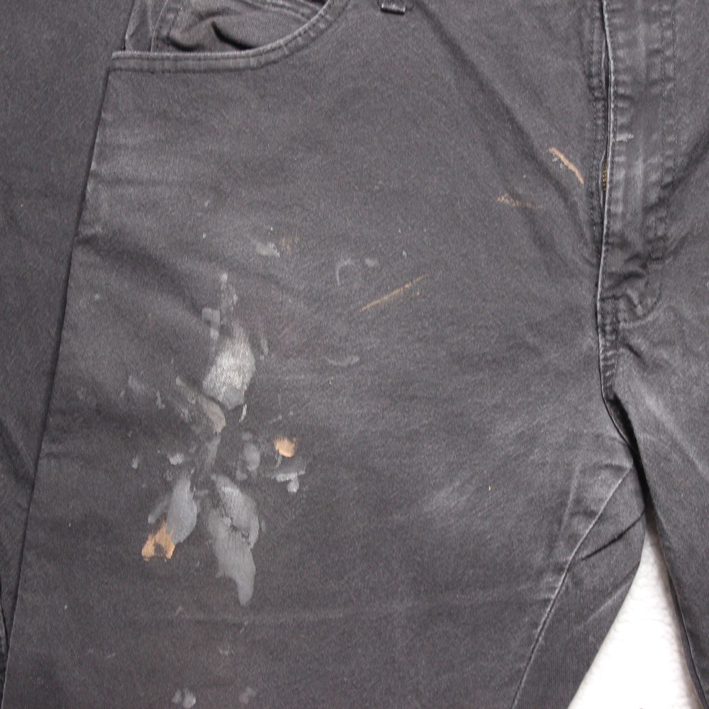 Dickies black carpenter-style work pants in size 36x32. Heavy-duty cotton with a touch of spandex for comfort and flexibility. Features tool loop, reinforced pockets, and durable construction. These pants show significant wear and paint stains—ideal for workwear, DIY projects, or grunge fashion. Brand: Dickies Size: 36x32 Color: Black (faded) Material: 98% Cotton / 2% Spandex Carpenter/utility style with tool loop Relaxed fit through seat and thigh Multiple pockets and reinforced seams Paint splatters and distressing throughout – sold as-is Heavily used – fair condition Visible paint stains, fading, and minor wear/tear (see photos)