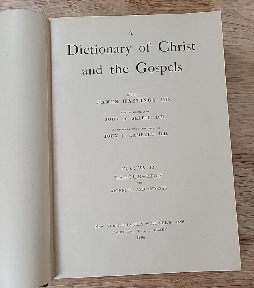 Year Printed:1906Special Attributes:1st EditionBinding:HardcoverCountry/Region of Manufacture:United StatesOriginal/Facsimile:OriginalISBN:Does not applyAuthor:James HastingsSubject:ReligionLanguage:EnglishRegion:North AmericaTopic:Bible Referencegtin13:Does not applyPublisher:Charles Scribner's Sons