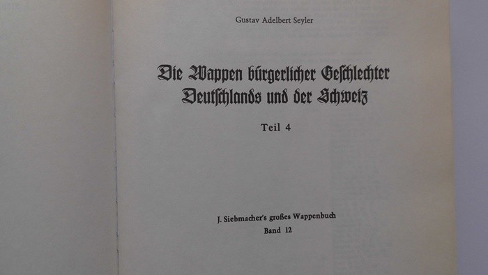 Die Wappen bürgerlicher Geschlechter Deutschlands und der Schweiz Band 12 Teil 4 - J. Siebmacher's grosses Wappenbuch [Wappen Heraldik] - von Siebmacher: Autor(en) Siebmacher: Verlag / Jahr Bauer Raspe, 1974. Format / Einband gebundene Ausgabe - Abteilung 10 Seiten 1-89, Tafeln 1-98 (Register zu dieser Abteilung Seiten V-XI Sprache Deutsch Gewicht ca. 1486 g Bestell-Nr 88200 Bemerkungen - Reprint - -- Zustand: goldgeprägter Ganzleinenband , Vorsatzblatt privat montiertes farbiges ExLibris, BuchschnittEcke leicht angestaubt, ansonsten innen und außen bis auf geringe Gebrauchsspuren gutes und sauberes Exemplar - --- Wir versenden nach Vorauszahlung, meistens am nächsten, spätestens am übernächsten Arbeitstag. Der Versand erfolgt über eine schnelle Versandart, Brief, Hermes oder DHL ---- Lagerfach: 751-588b-L23-Bü Schlagworte Wappen Wappenkunde Heraldik Genealogie Familienchronik Familiengeschichte Familienbiografie Adel Siebmacher Schweiz Unser Preis EUR 103,00 (inkl. MwSt.) Versandkostenfrei innerhalb Deutschlands Weitere Abbildungen Aufgenommen mit whBOOK Sicheres Bestellen - Order-Control geprüft! Artikel eingestellt mit dem w+h GmbH eBay-Service Daten und Bilder powered by Buchfreund (2025-12-08)
