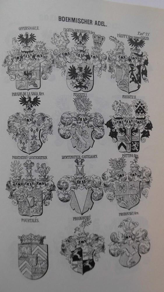 Die Wappen des böhmischen Adels Band 30 Böhmen J. Siebmacher's grosses Wappenbuch [Wappen Heraldik] - von Siebmacher: Autor(en) Siebmacher: Verlag / Jahr Bauer Raspe, 1979. Format / Einband gebundene Ausgabe - - Aus Band IV, 9. Abteilung: 296 Seiten + 144 Tafeln Sprache Deutsch Gewicht ca. 1264 g Bestell-Nr 88188 Bemerkungen - Reprint selten - Inhalt: Der .. bearbeitet von Dr. Rudolf Johann Graf Meraviglia-Crivelli, Nürnberg 1886 - - Zustand: goldgeprägter Ganzleinenband , Vorsatzblatt privat montiertes farbiges ExLibris, BuchschnittEcke leicht angestaubt, ansonsten innen und außen bis auf geringe Gebrauchsspuren gutes und sauberes Exemplar, Vorsatzblatt hinten mit handschriftlichen Bleistifteinträgen, eine kleine Textstelle mit zartgelber handschriflticher Markierung - --- Wir versenden nach Vorauszahlung, meistens am nächsten, spätestens am übernächsten Arbeitstag. Der Versand erfolgt über eine schnelle Versandart, Brief, Hermes oder DHL ---- Lagerfach: 751-569c-L23-Bü Schlagworte Wappen Wappenkunde Heraldik Genealogie Familienchronik Familiengeschichte Familienbiografie Adel Bistum Kloster Siebmacher Unser Preis EUR 199,00 (inkl. MwSt.) Versandkostenfrei innerhalb Deutschlands Weitere Abbildungen Aufgenommen mit whBOOK Sicheres Bestellen - Order-Control geprüft! Artikel eingestellt mit dem w+h GmbH eBay-Service Daten und Bilder powered by Buchfreund (2025-12-08)