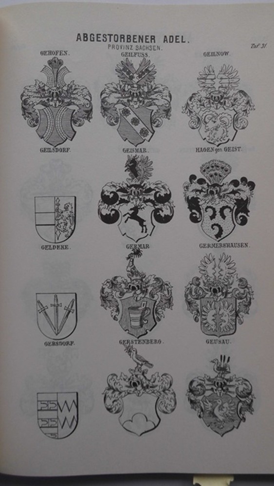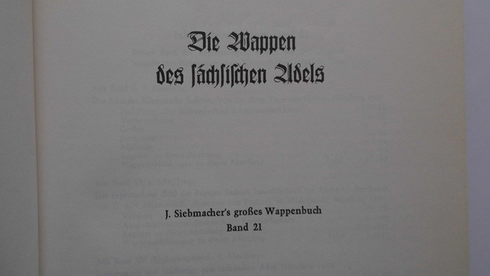 Die Wappen des sächsischen Adels Band 21 - J. Siebmacher's grosses Wappenbuch [Wappen Heraldik] - von Siebmacher: Autor(en) Siebmacher: Verlag / Jahr Bauer Raspe, 1972. Format / Einband gebundene Ausgabe - Bd. II,3+VI,6+VII.1+VII3.d:Seiten/Tafeln: 57/63+201/127+49/28-30+36/26 Sprache Deutsch Gewicht ca. 1372 g Bestell-Nr 88223 Bemerkungen - Reprint - Inhalt: Adel des Königreichs Sachsen - abgestorbene Adel der Provinz .. - Ergänzungen ... - Abgestorbener preußischer Adel: Provinz Sachsen - Zustand: goldgeprägter Ganzleinenband , Vorsatzblatt privat montiertes farbiges ExLibris, BuchschnittEcke leicht angestaubt, Vorsatzblätter braunfleckig von altem Tesa, auf Titelseite handschriftlich Name und Jahr, ansonsten innen und außen bis auf geringe Gebrauchsspuren gutes und sauberes Exemplar - --- Wir versenden nach Vorauszahlung, meistens am nächsten, spätestens am übernächsten Arbeitstag. Der Versand erfolgt über eine schnelle Versandart, Brief, Hermes oder DHL ---- Lagerfach: 751-278-L23-Bü Schlagworte Wappen Wappenkunde Heraldik Genealogie Familienchronik Familiengeschichte Familienbiografie Adel Siebmacher Schweiz Unser Preis EUR 129,00 (inkl. MwSt.) Versandkostenfrei innerhalb Deutschlands Weitere Abbildungen Aufgenommen mit whBOOK Sicheres Bestellen - Order-Control geprüft! Artikel eingestellt mit dem w+h GmbH eBay-Service Daten und Bilder powered by Buchfreund (2025-12-08)