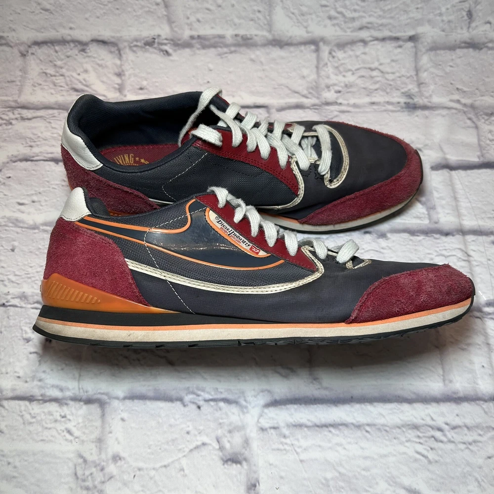 Diesel Aramis Sneakers Mens 11 RN 93243 Blue Burgundy Orange. Condition is Pre-owned. Shipped with USPS Ground Advantage.