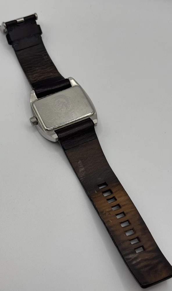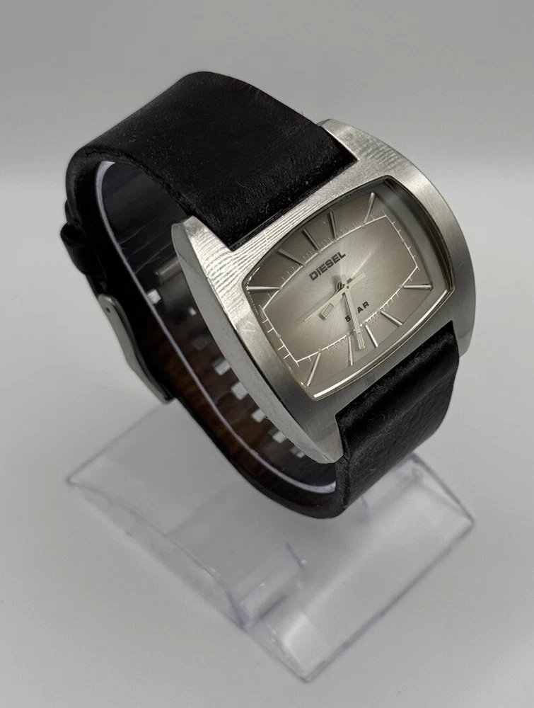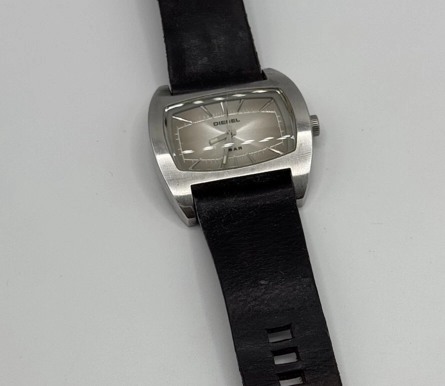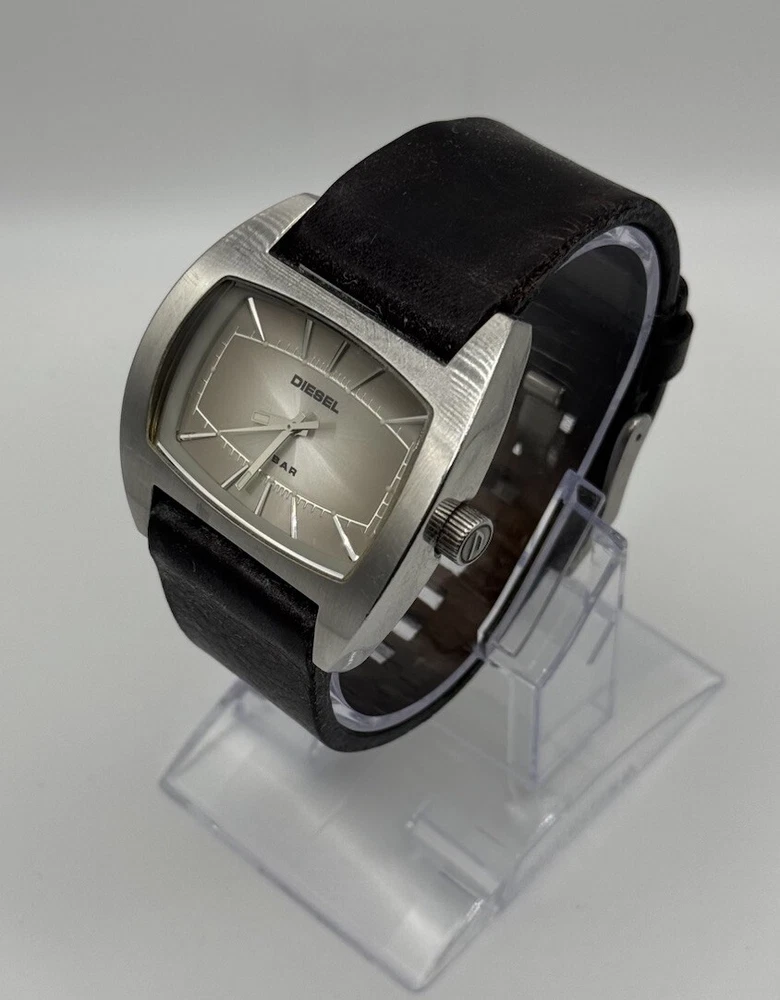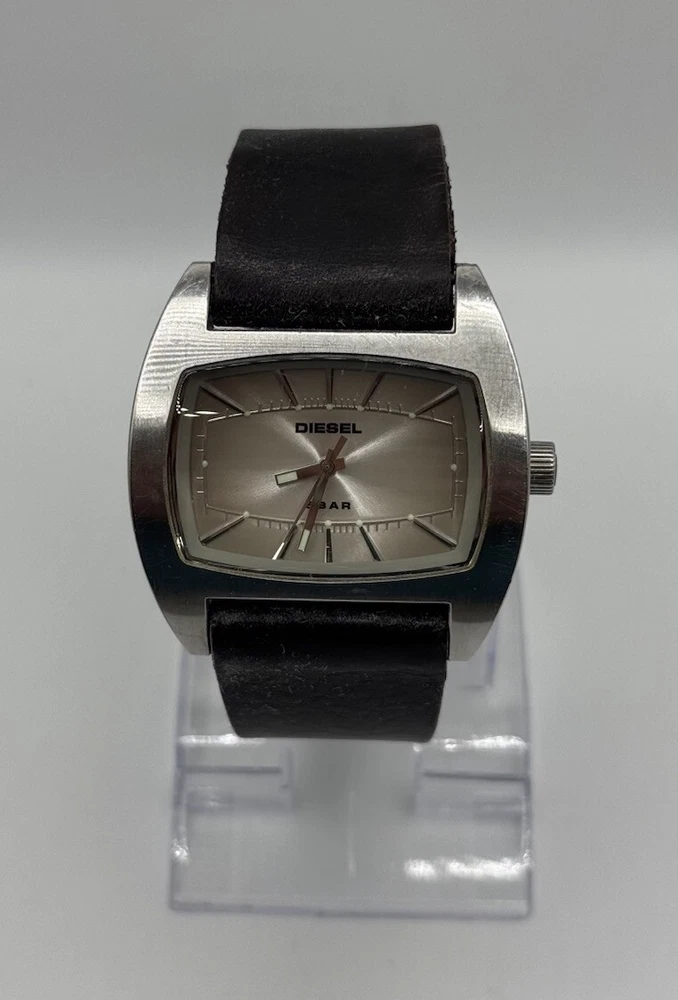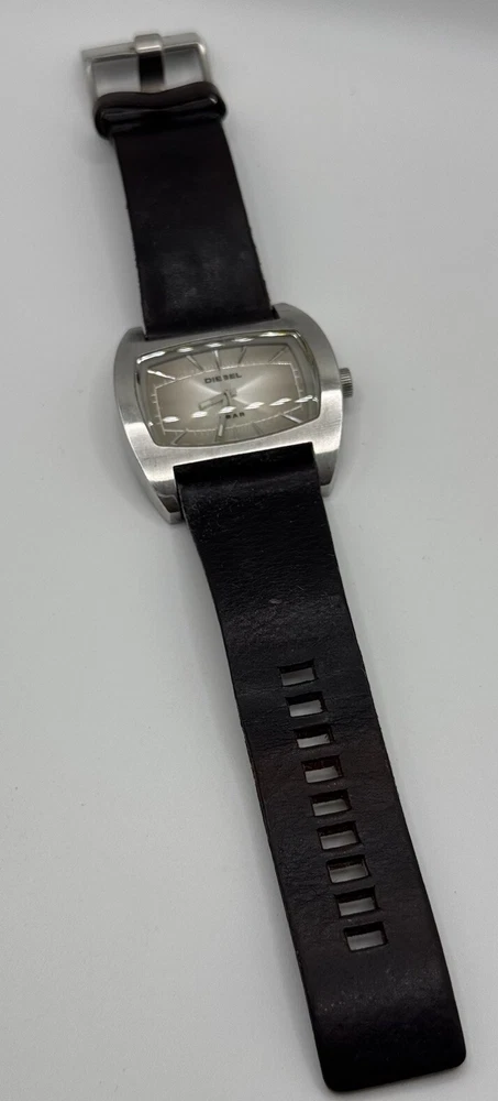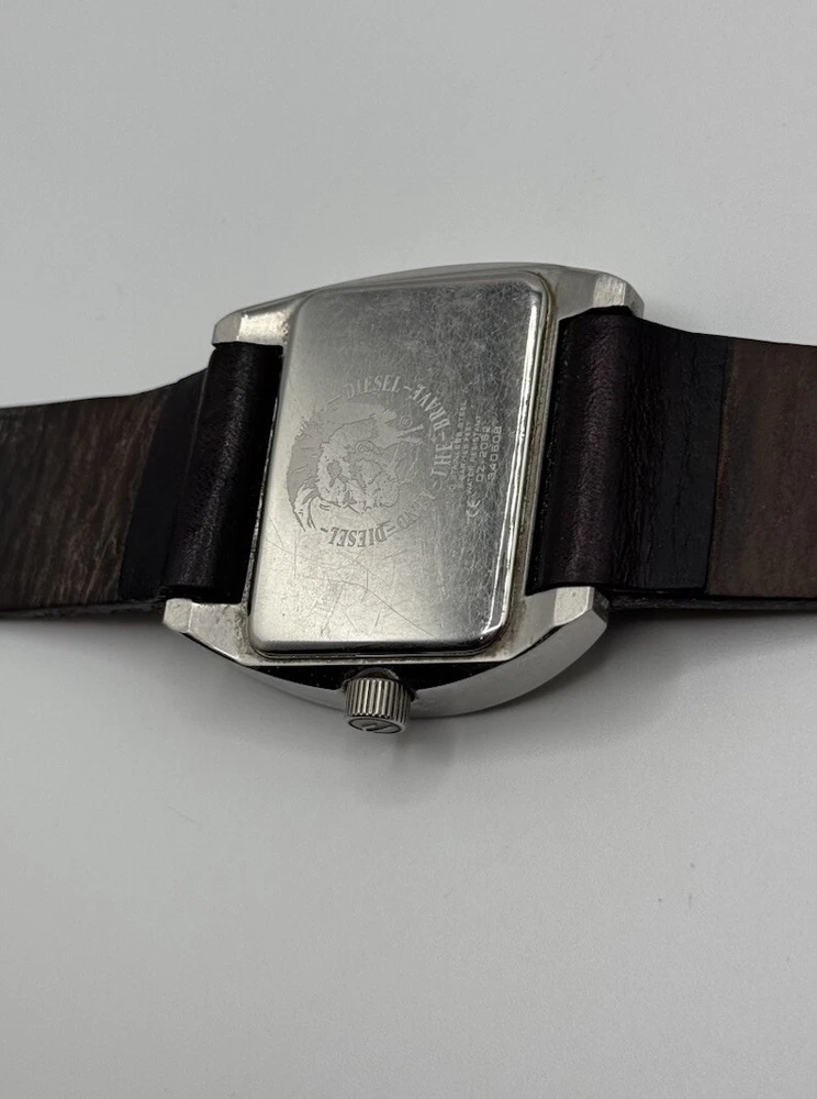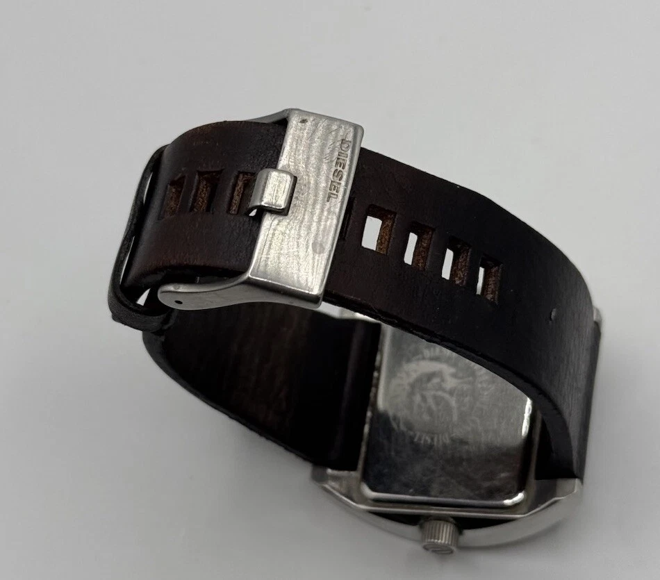 Band/Strap: Two-Piece Strap Department: Men Style: Casual, Dress/Formal, Classic Seller Warranty: No Caseback: Snap With Service Records: No Case Size: 44 mm Watch Shape: Rectangle Reference Number: DZ2062 Model: DZ-2062 Closure: Buckle Handmade: No Bezel Color: Silver Display: Analog With Manual/Booklet: No Brand: Diesel Case Material: Stainless Steel With Original Box/Packaging: No Case Color: Silver Band Color: Brown Band Material: Leather With Papers: No Type: Wristwatch Movement: Quartz