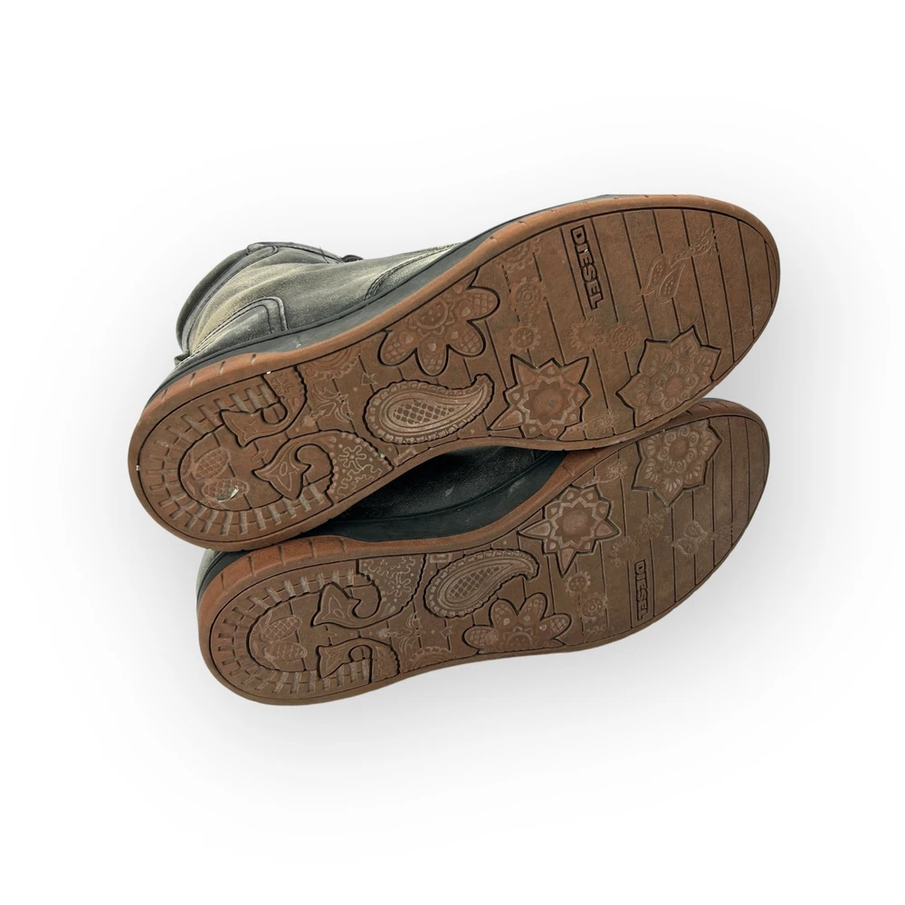 Diesel Gray Distressed Leather Basket Butch Zippy Mens Boots Size 9 42 Diesel Gray Distressed Leather Basket Butch Zippy Mens Boots Size 9 42 gently used condition 7-3/4" tall Listing and template services provided by inkFrog
