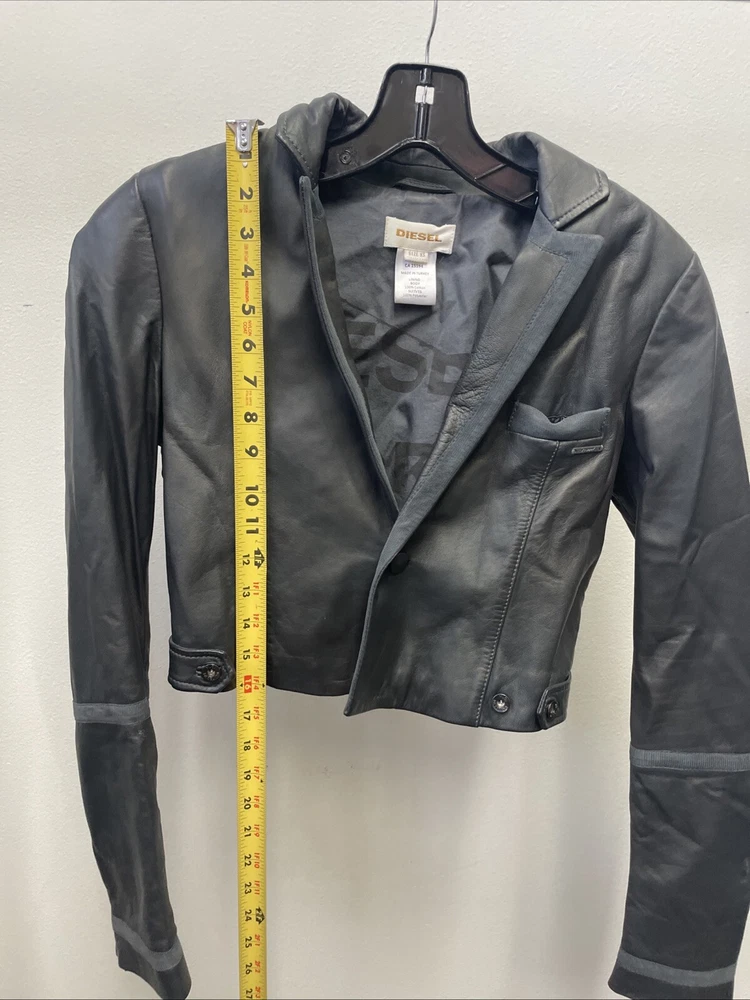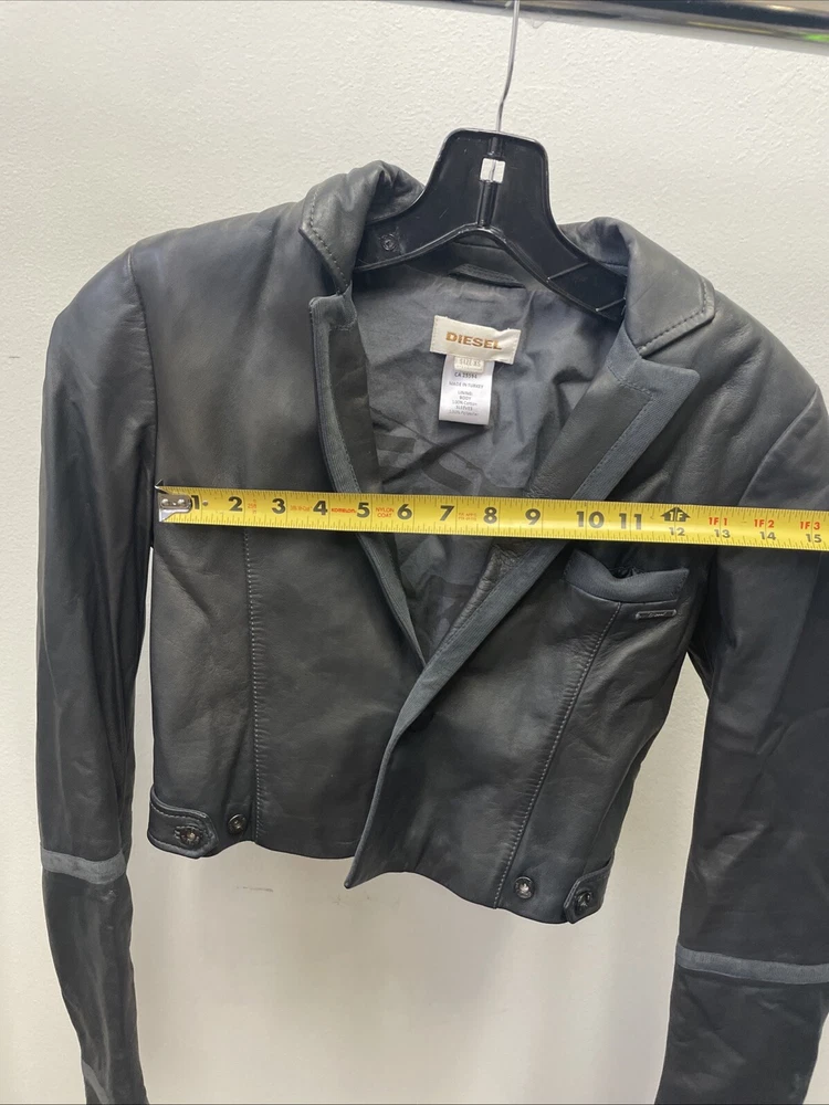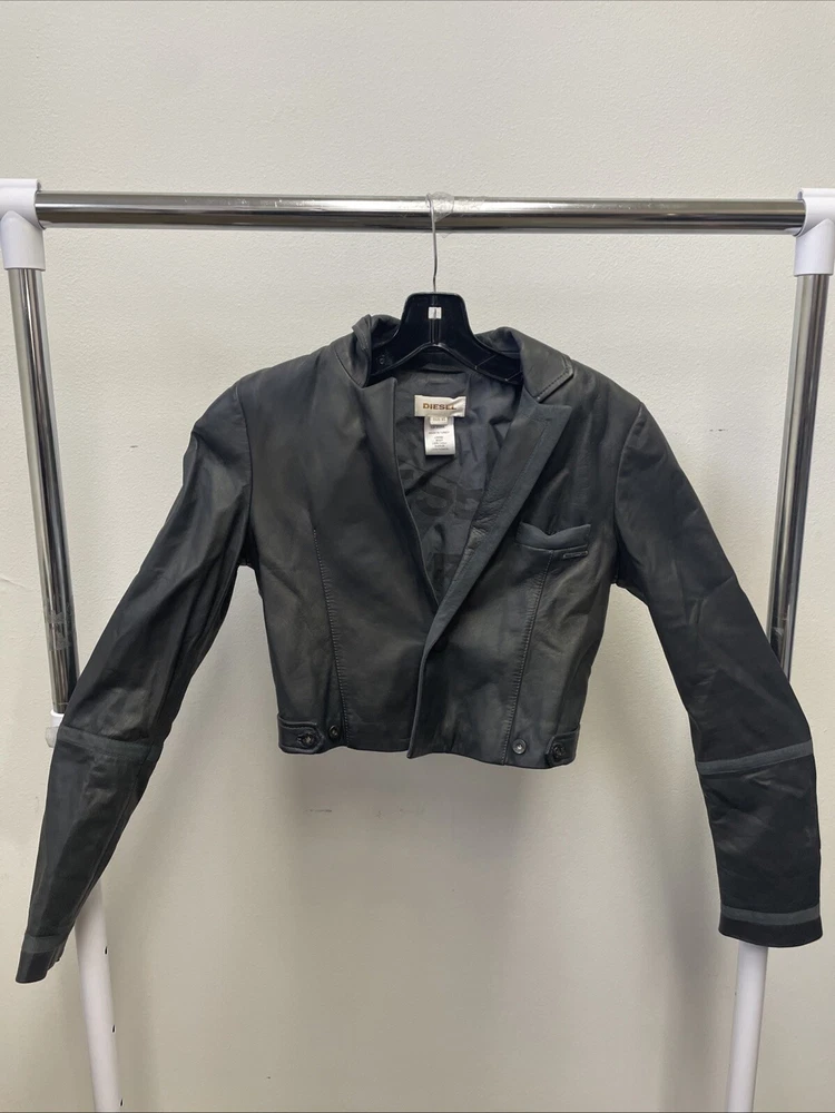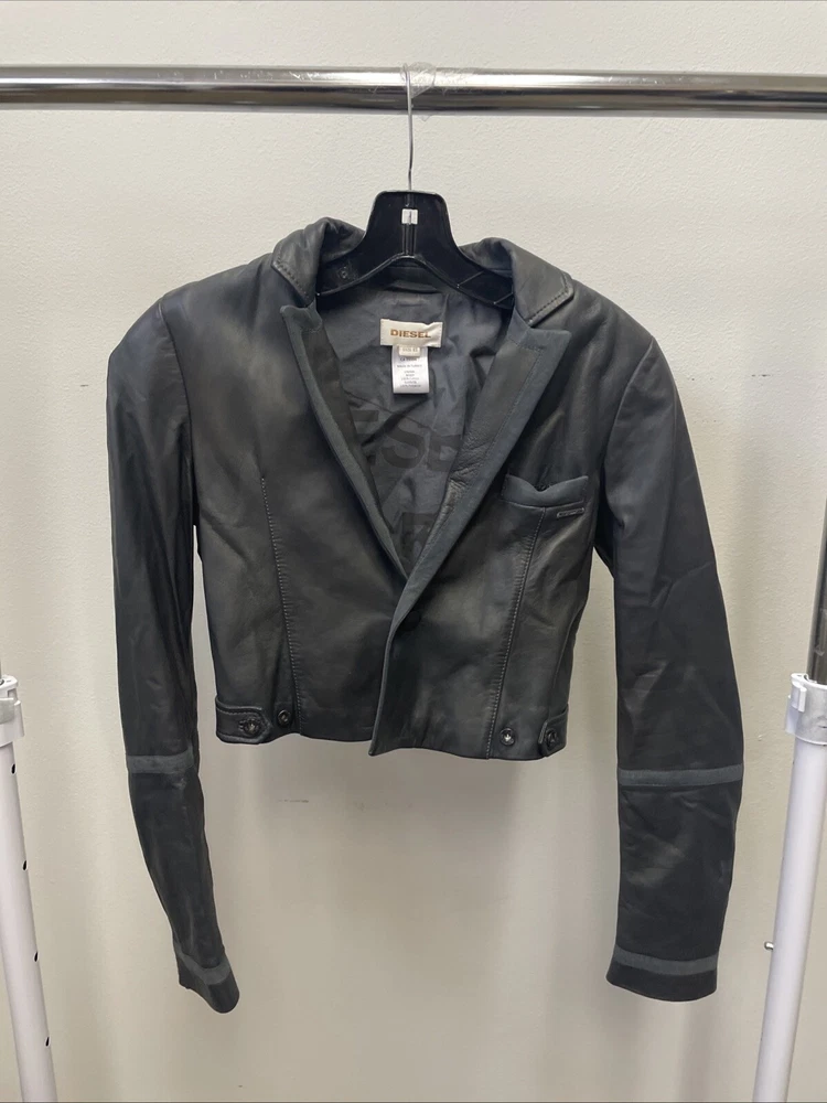 Diesel Leather Bolero Jacket Charcoal/Gray - Size XS Use pictures for reference for quality, style, and measurements. **Disclaimer:** All items listed here are guaranteed to be 100% authentic. Each piece is sourced directly from the brands themselves or from authorized distributors. We pride ourselves on offering genuine, high-quality merchandise and stand by the authenticity of every product we offer. If you have any questions regarding our items, do not hesitate to reach out.