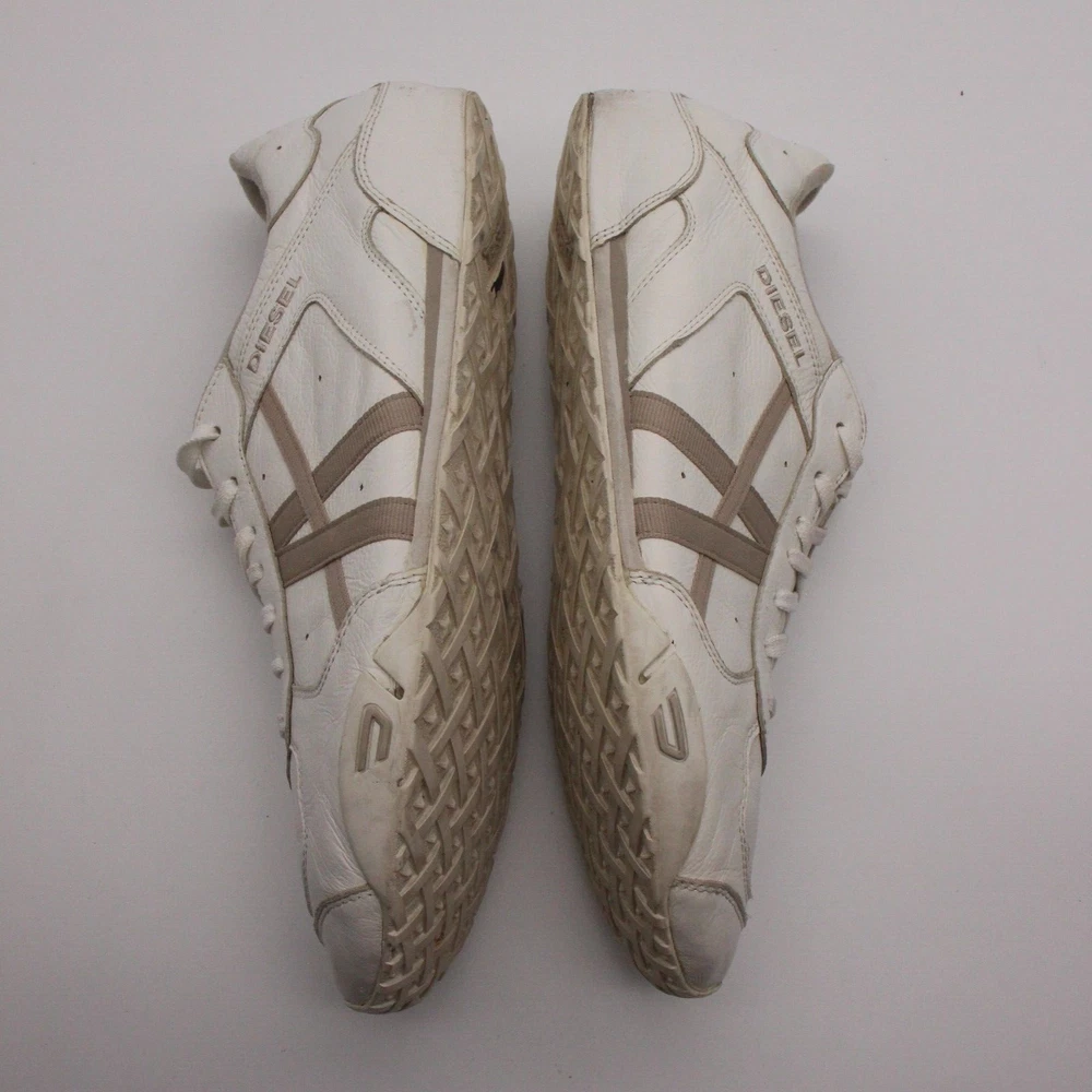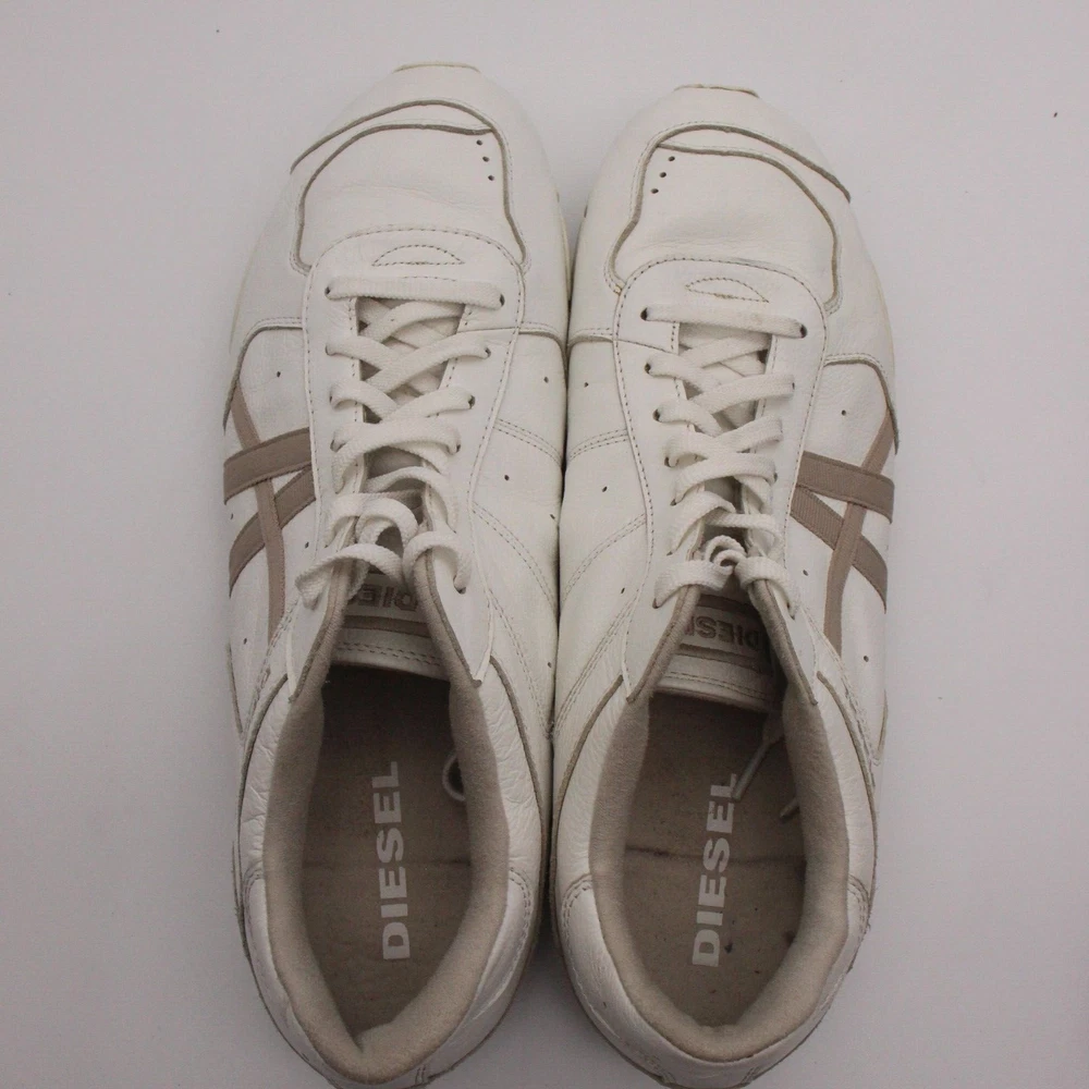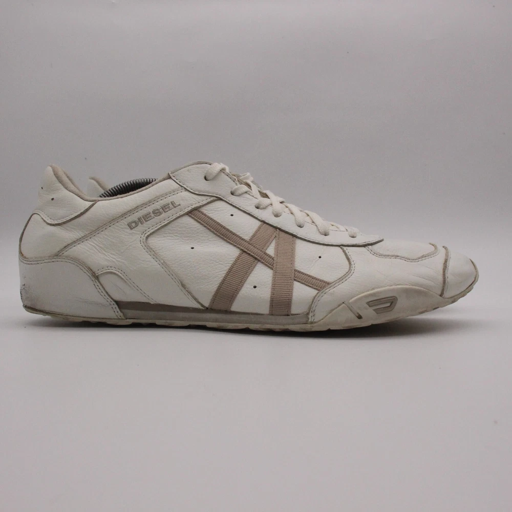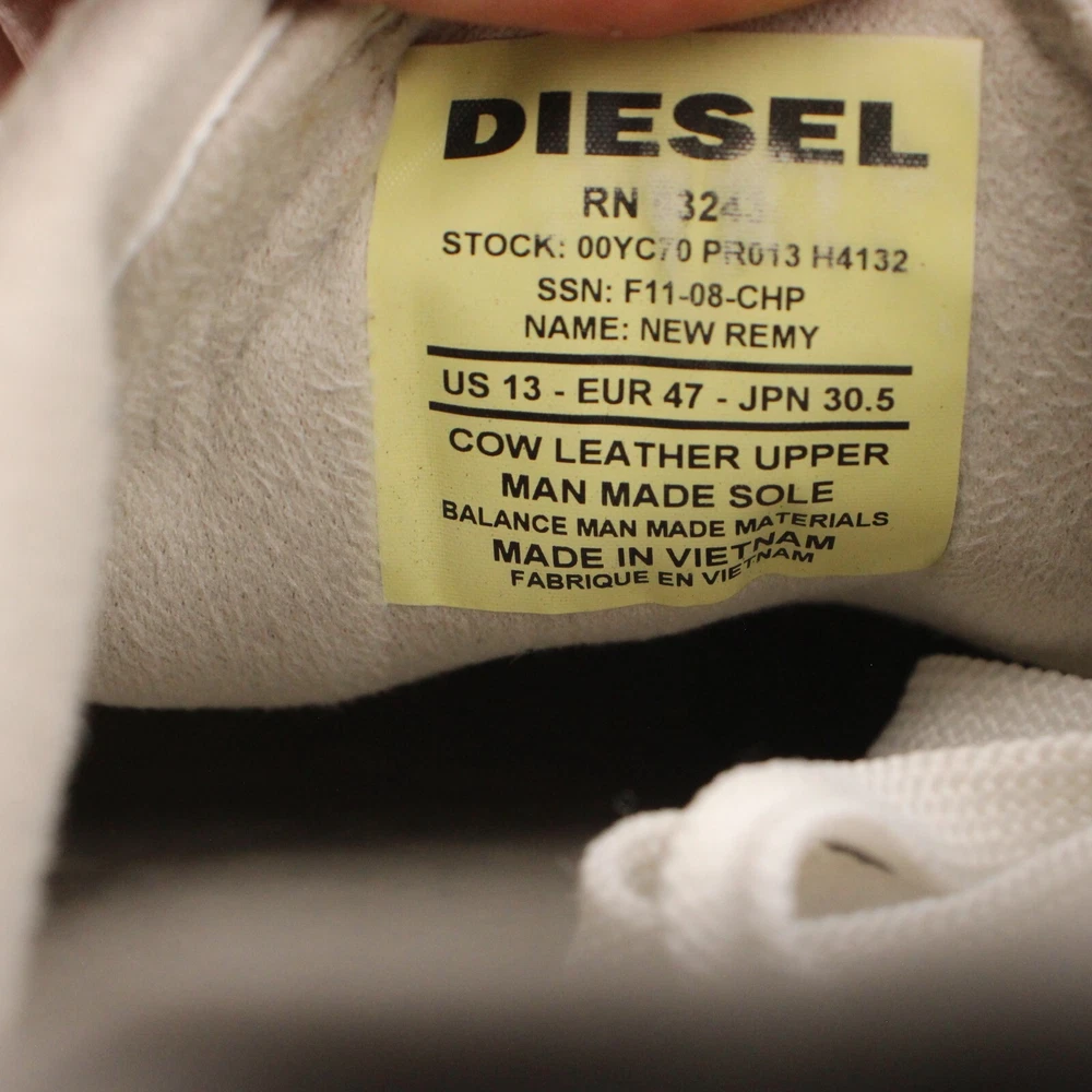 Diesel New Remy Men's Shoes 13 White Cow Leather Casual Low Top Fashion Sneakers +++ Pre-Owned Condition +++ Shows some wear Has Scuffs on it wear on the back (please see last 3 photos) Please make sure to look through all photos