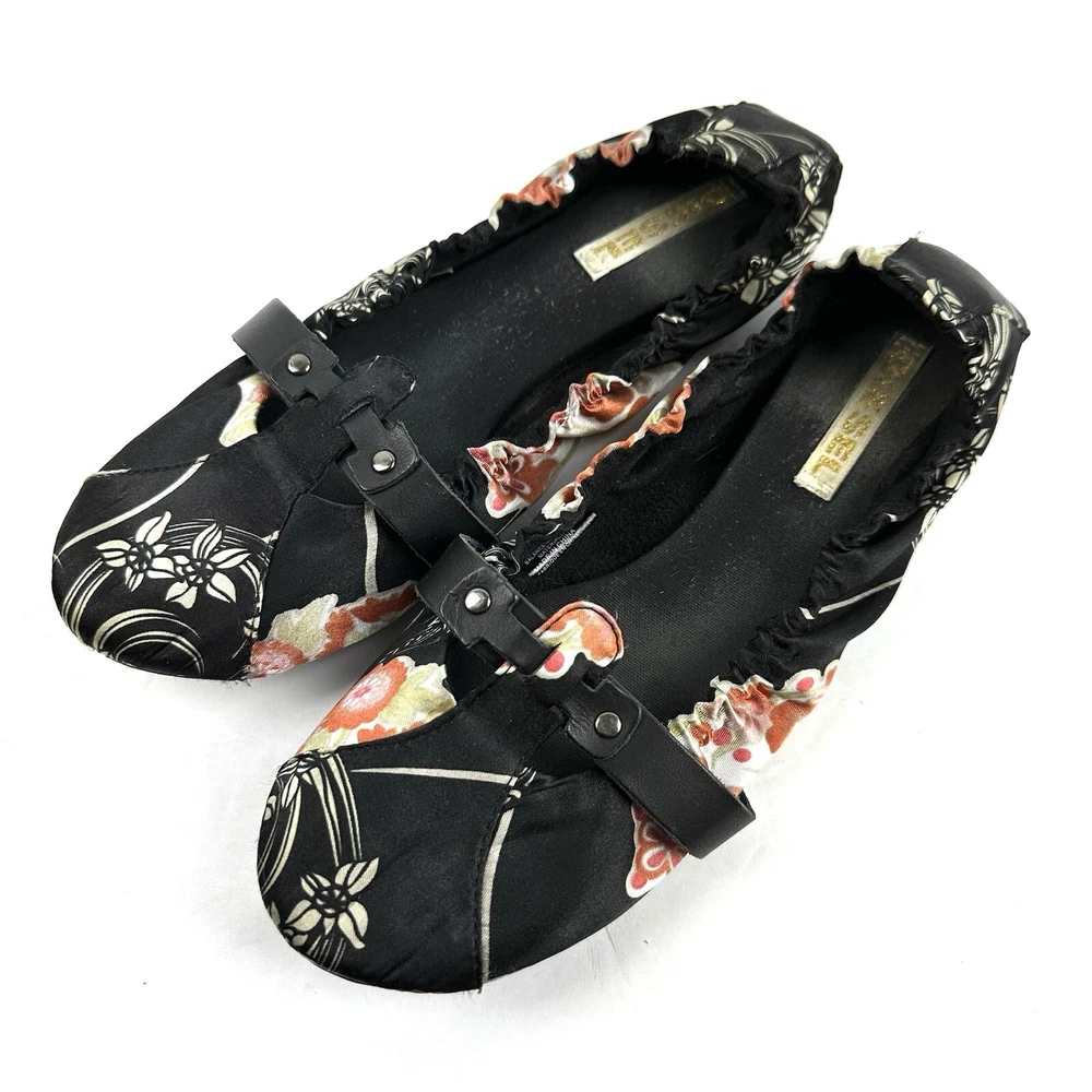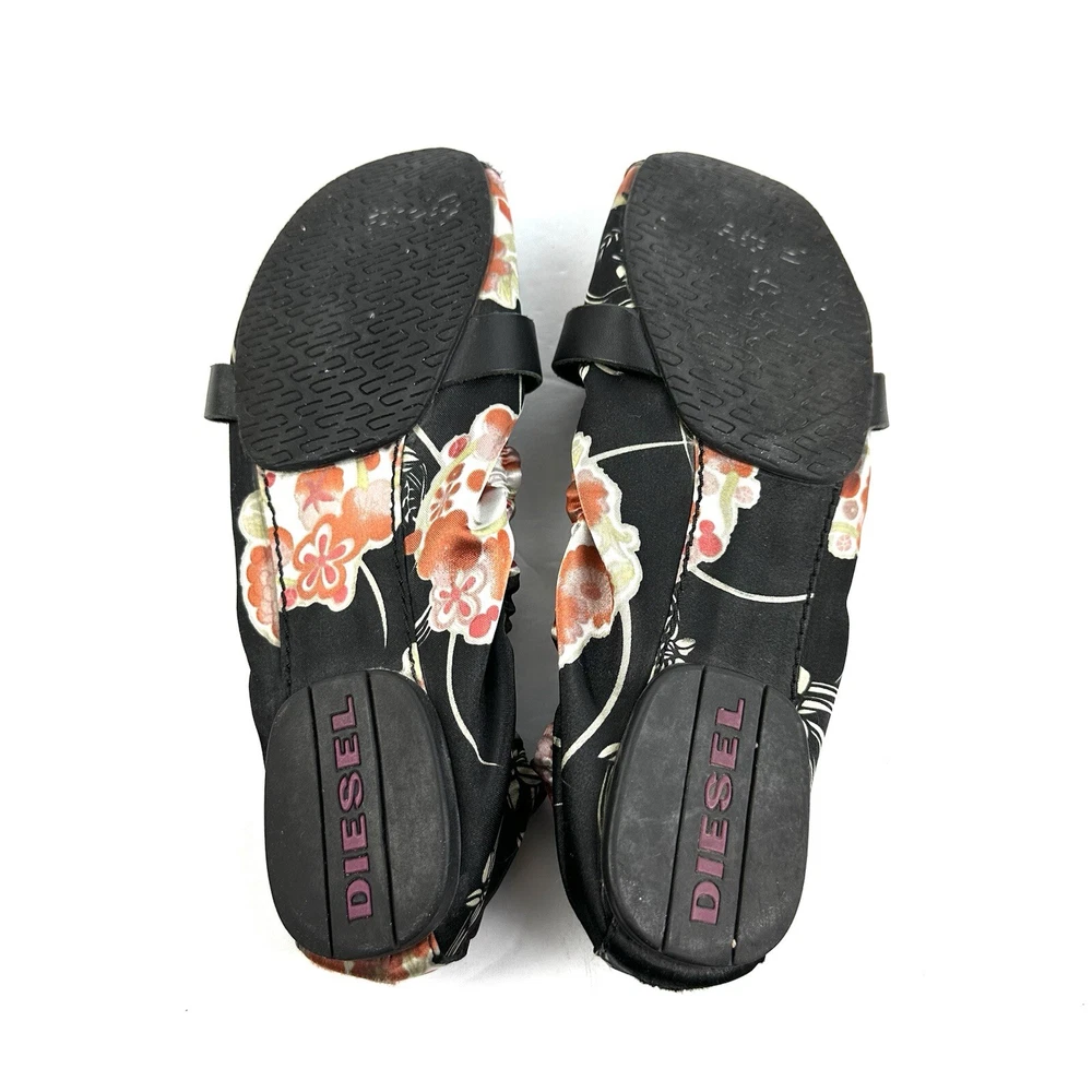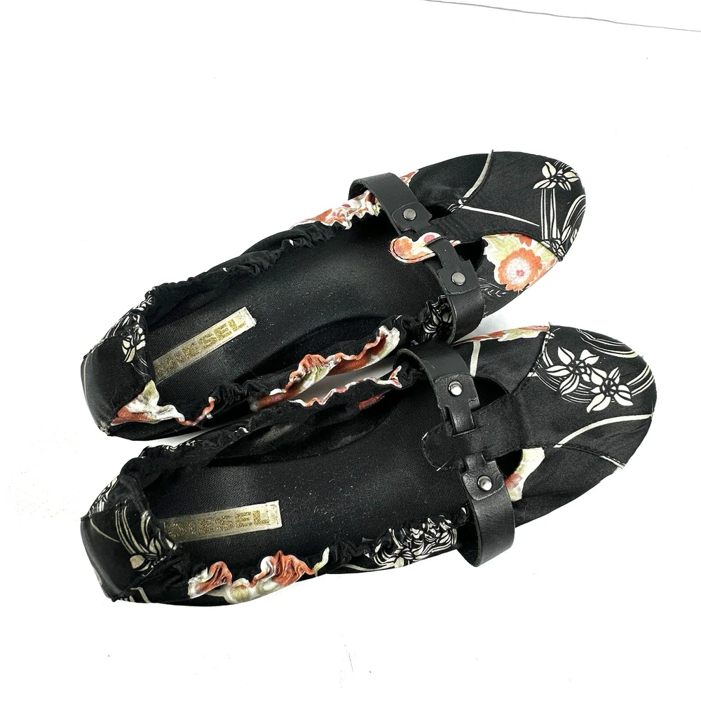 Diesel Obi Ballet Flats 8.5 Black Floral Silky Fabric Slip On Shoes Womens Minimal to normal signs of wear. No rips or tears. Peace.