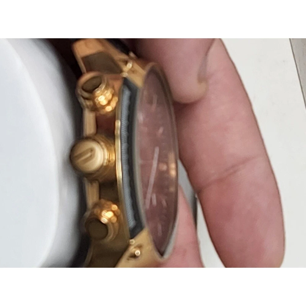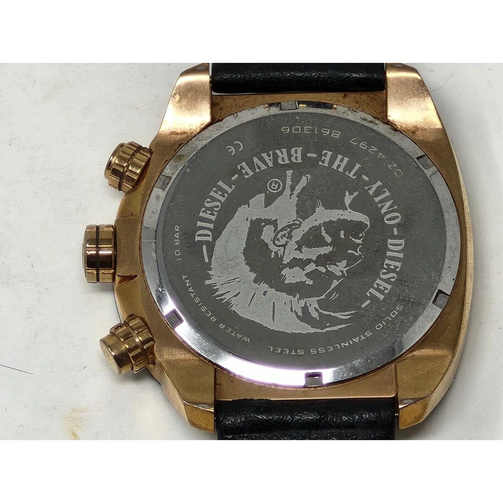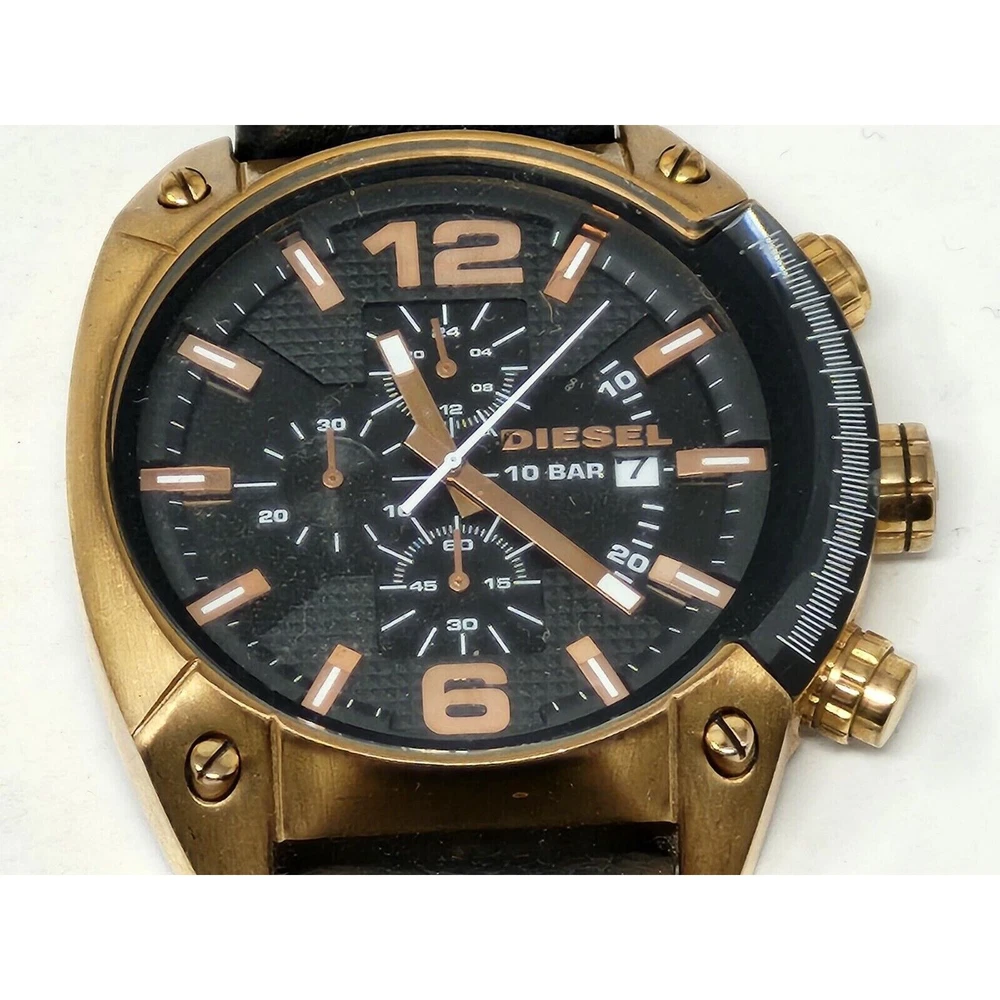 This is a Diesel Overflow watch in rose gold/black color with a leather wristband. Watch has minor wear as pictured but is in great condition otherwise. Will need a battery. This will be crosslisted. Thanks for viewing!