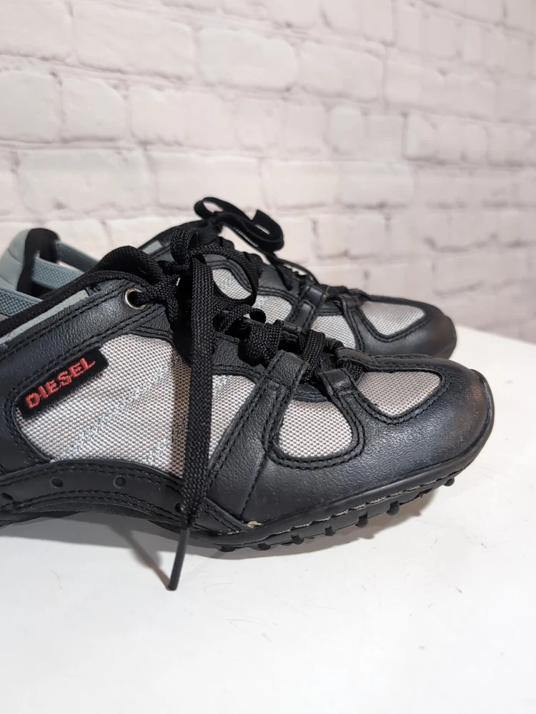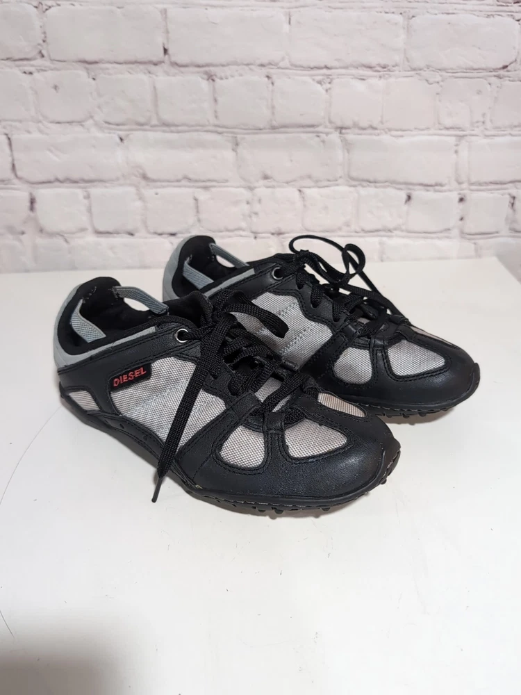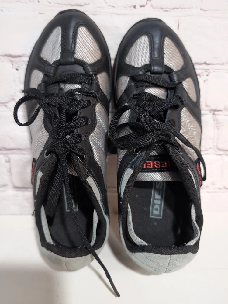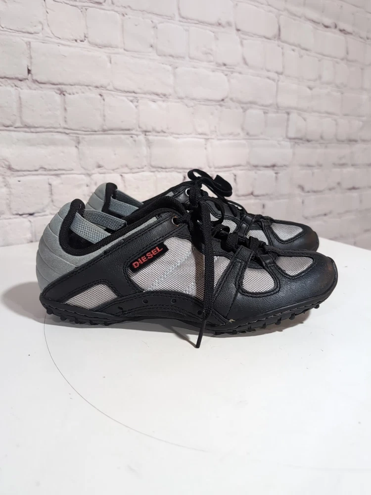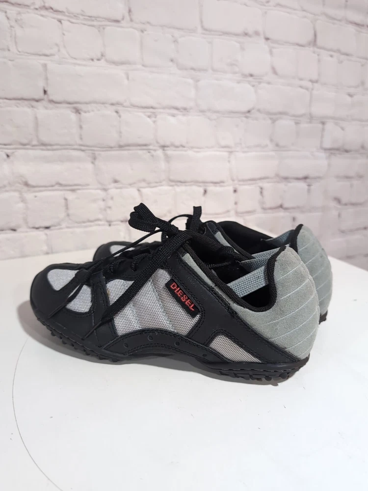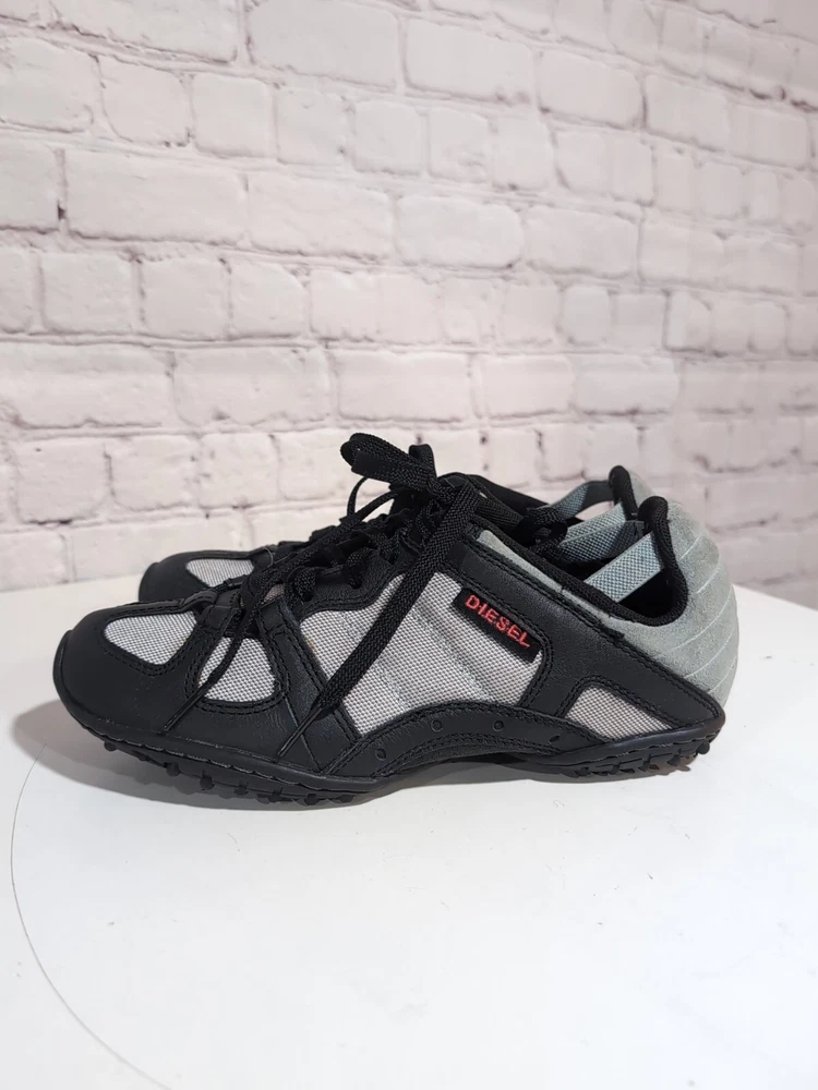 Excellent pre-owned condition Elevate your casual look with these Diesel Whitney Low Top Lace Up Comfort Sneakers Shoes in Silver and Black. Designed for women, these sneakers feature a multicolor mesh upper material, a standard shoe width, and a low top shoe shaft style. The lace-up closure provides a secure fit, making them perfect for walking, school, driving, and hiking. These designer sneakers from Diesel are perfect for those who love the 90s sports theme and the city life. The Whitney model is a classic and a must-have for any sneaker collection. With a US shoe size of 5.5 and an EU shoe size of 35.5, these sneakers are sure to fit comfortably and look great on any outfit.