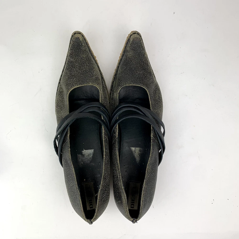 Diesel Y2K Vintage Marquesa Pointed Toe Flat Strappy Dress Shoes Womens Size 10 Vintage pre owned condition Some wear from normal use, but well hidden by the already distressed look **Pre owned shoes may show signs of wear such as dust, creases or dirt. See all photos for condition and exact item you will receive See pics of exact item and condition you will receive