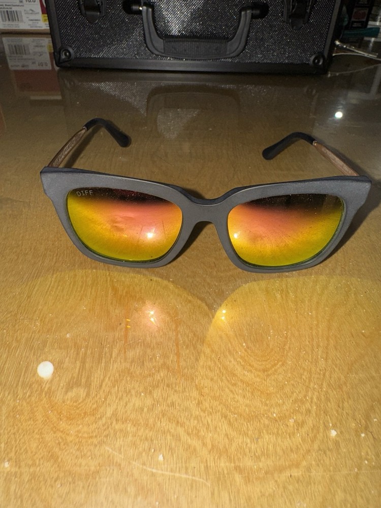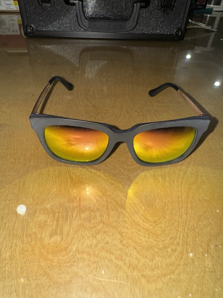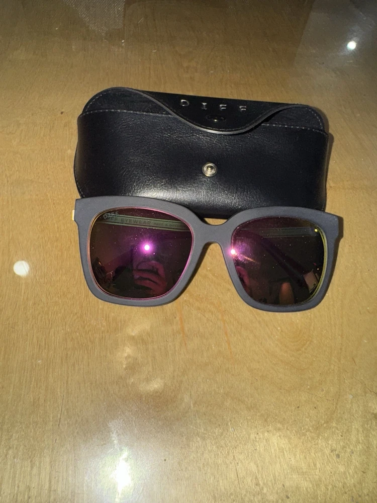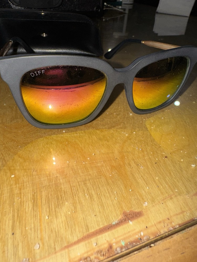 Elevate your style with these stunning Diff Eyewear Bella MB-PK10P sunglasses. The black and gold frame, combined with pink mirrored lenses, creates a bold and sophisticated look that is perfect for any occasion. The lightweight and square design makes these sunglasses comfortable to wear and easy to style with any outfit. These sunglasses are a must-have for any fashion-forward woman. The mirrored lenses not only add a touch of glamour, but also offer UV protection. The metal frame ensures durability and longevity. Don't miss out on the chance to add these statement sunglasses to your collection.