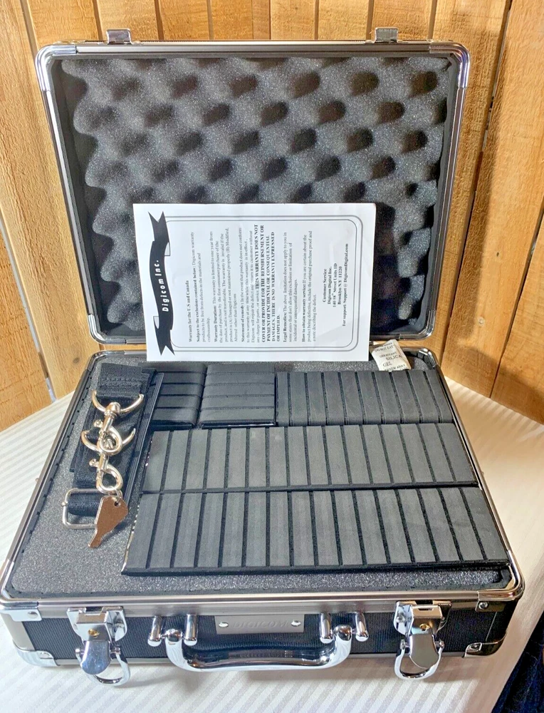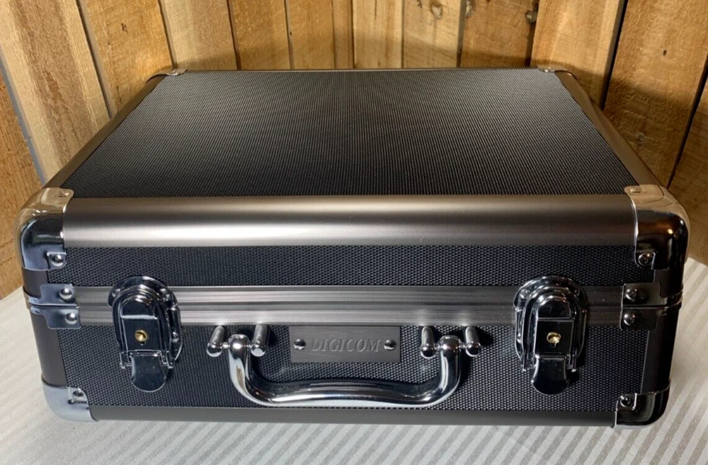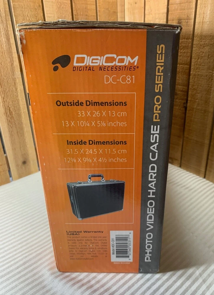 DigiCom DC-C81 Lockable Photo Video Hard Case. Constructed from reinforced aluminum. The case has pre-cut adjustable foam, removable dividers, shoulder strap and a built in lock with key. This is a new item that has an open box. The box has some wear from storage as seen in the photos. Please see all photos as they are part of the description. Please see all photos as they are part of the description. We try to list as many details as possible, however some items are vintage and pre-owned so flaws are to be expected. We try to find out as much information as possible on each item we have available. On occasion we may make a mistake and appreciate your feedback.