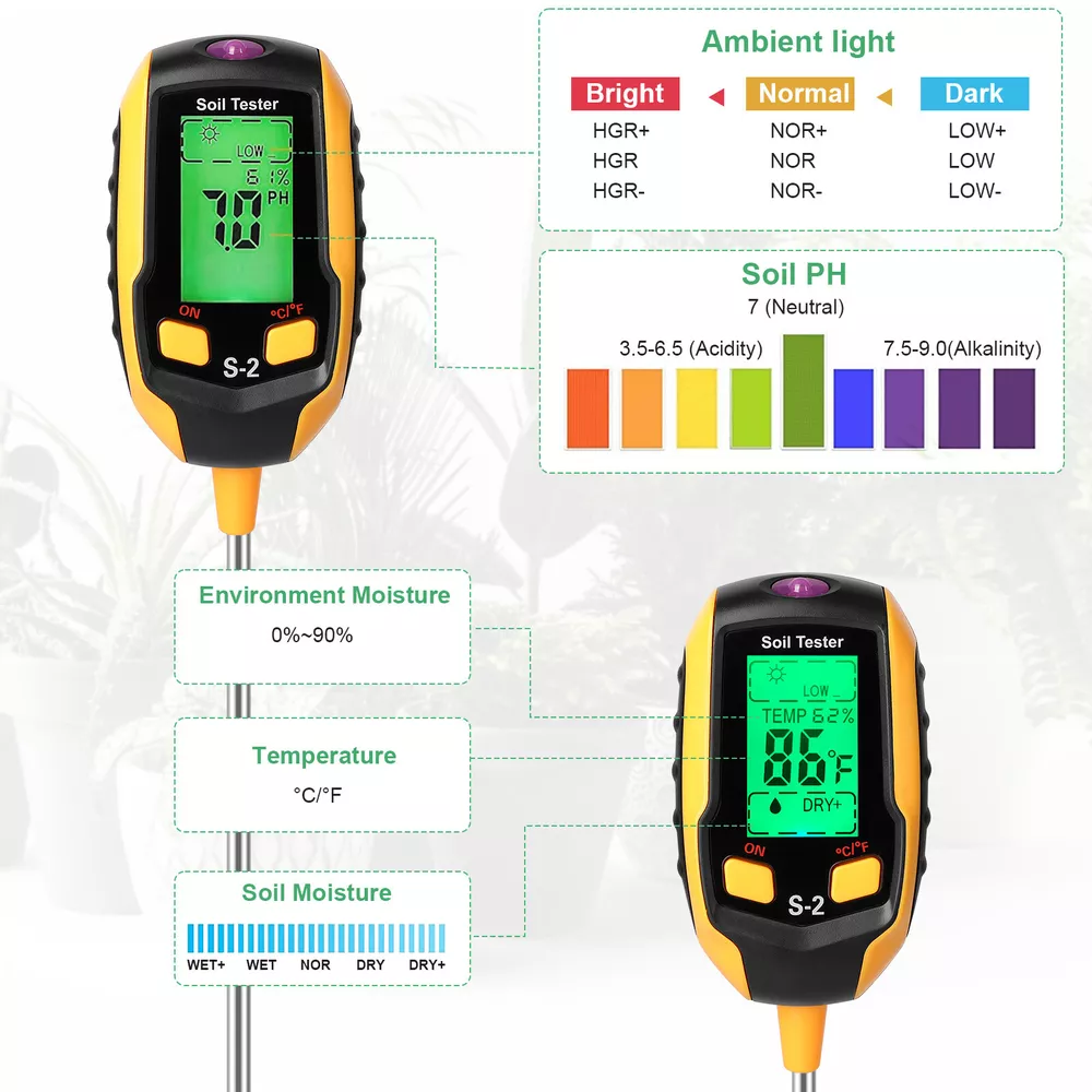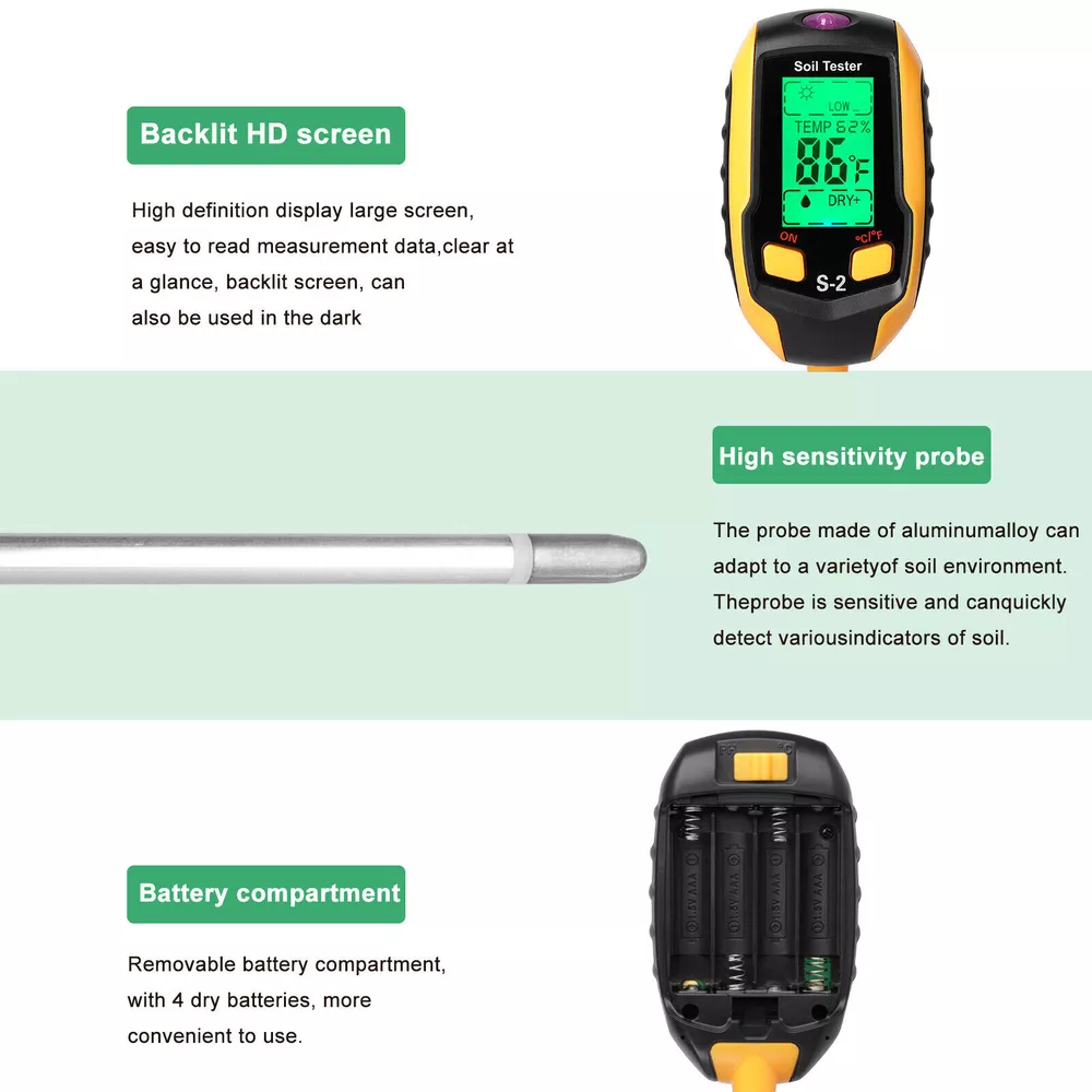 DESCRIPTION PAYMENT SHIPPING RETURN POLICY CONTACT US Digital 5 in 1 LCD Soil PH Meter Tester Moisture Humidity LED Light Garden Plant 5 in 1 Soil Tester Features: Make Gardening Easy And Fun: With the help of our 5-in-1 soil tester, discover what your garden or lawn needs, and easily test the pH, humidity, light and temperature of the soil! You can now know when you need to water the soil by measuring the soil moisture, pH and temperature values, and the sunlight level of the plants. The design is light and portable, easy to carry, suitable for indoor and outdoor use. Accurate Data: The needle detection technology of this soil tester is upgraded to ensure the speed and accuracy of detecting and analyzing soil moisture, pH and temperature acidity. LED Light Liquid Crystal Display: PH soil tester is equipped with a large liquid crystal display, even in the dark night you can easily read the data. Wide Application Range: The upgraded 8.07 inch probe can be used for your large potted plants. A very practical plant tester tool suitable for your garden, courtyard, lawn, farm, potted plants, etc. Easy To Carry And Use: The soil moisture tester adopts lightweight design, small in size, and easy to carry. You can put it in your pocket or backpack. When in use, you only need to insert the probe into the soil about 4 inches and wait for 10 seconds to read the data, without too many complicated steps. Specification: Type: 5 in 1 Soil Tester Size: 12.2 x 2.1 x 1 inch Battery: AAA*4 (included) 5 in 1 Function: Light intensity, soil temperature, soil moisture, soil PH, ambient humidity Ambient Light Intensity: 9Level(LOW-, LOW, LOW+, NOR-, NOR, NOR+, HGH-, HGH, HGH+) Temperature Range: 9-50°C (16-122°F) Moisture: 5Level(DRY+, DRY, NOR, WET, WET+) Soil PH Range: 3.5-9 Soil Environmental Humidity: Percentage content of TEMP Features: Digital Display, Portable, Waterproof, Backlit Display, Battery Included, Dust-proof, 5 in 1, Accurate data, LCD Display, Easy to carry and use Application: for your garden, courtyard, lawn, farm, potted plants, etc Package list: 1 pcs 5 in 1 Soil Tester Item Specifics Brand : Unbranded Type : Digital,Moisture Meter,pH Meter,pH Tester,Soil Meter Features : Digital Display Portable Waterproof Backlit Display Battery Included Dust-proof Material : Plastic Model : Soil Tester Moisture System of Measurement : metric/standard Power Source : battery MPN : Does Not Apply Application : for your garden, courtyard, lawn, farm, potted plants, etc Custom Bundle : no Displayed Measurements : Light intensity; soil temperature, moisture, PH; ambient humidity Fit For : You can put it in your pocket or backpack Function : Light intensity; soil temperature, moisture, PH;ambient humidity Lighting modes : Ambient light: 9 LEVEL Manufacturer Color : Green Measuring Technology : electric Modification Description : Soil Tester Modified Item : no Style : Modern Suitable for : for your large potted plants Working Temperature : 9-50°C (16-122°F) Payment Shipping Returns Contact Us 1.We only accept PayPal. 2.Please double check your shiping address before payment,thank you. 1.We ship to your eBay or Paypal address. Please make sure your eBay and Paypal address is correct before you pay. 2.Item will be dispatched within 1-2 business days after receipt of full payment. 3.Items located in AU,Delivery time depends on destination and other factors 1.If the item you received is faulty, damaged or incorrect, or any further problems, you can return it for replacement or refund, please contact our customer service on eBay within 30 days from item received. 2.For damaged items on arrival, please contact us immediately, sending us an email with a photo is preferred. We will offer solutions to such cases. Full refund or replacement will be guaranteed. If you have any questions,please feel free to contact us,thank you. All rights reserved. Shop Category Store Home Fairy Lights Kitchen Supply ◈ Cake Decorations ◈ Food Storage Door Knobs Beauty Other Hot Item 200 Quart Size Vacuum Seal Bags 8x12 Embossed Food Saver Sealer Storage Bag 4Mil USD 32.80 10x T Bar Knob Stainless Steel Kitchen Cabinet Pulls Cupboard Door Handle Drawer USD 6.99 7/42Pcs Russian Icing Piping Nozzles Pastry Tips Cake Decor DIY Baking Tools Set USD 10.24 4 Pack Vacuum Seal Bags Roll 8”x50’ Embossed Food Saver Sealer Storage Bag 4 Mil USD 33.86 42Pcs Icing Piping Nozzles Pastry Tips Cake Sugarcraft Decorating Tools Set DIY USD 8.96 Delivery New List Item 50 Card Stand Trading Card Stands Baseball Display Stand Holder US SHIP 3" USD 12.69 Christmas Decor 96 LED Curtain Window Snowflake String Fairy Lights Waterproof USD 12.41 1000/Stack 4" x 6" Fanfold Direct Thermal Shipping Label for Zebra & Rollo US USD 23.99 4 Rolls 4"x6" Direct Thermal Shipping Labels 500/Roll For Zebra LP2844 ZP450 USD 39.95 100x Clear Packing List Pouches 7.5 x 5.5 Shipping Label Envelopes Self Adhesive USD 8.99 Help & Info Payment Policy Shipping Policy Return Policy FAQ About Us